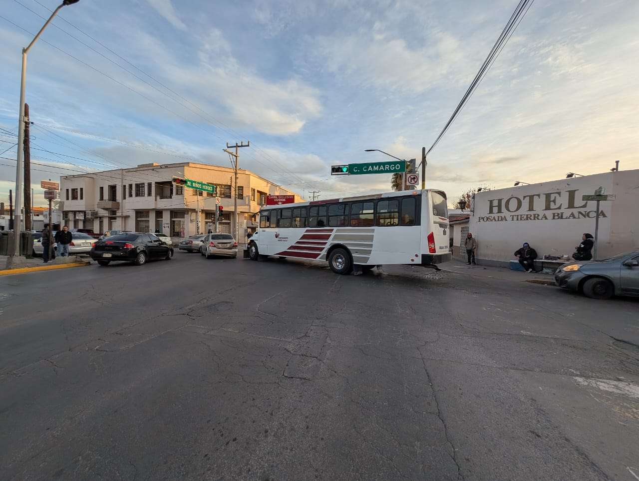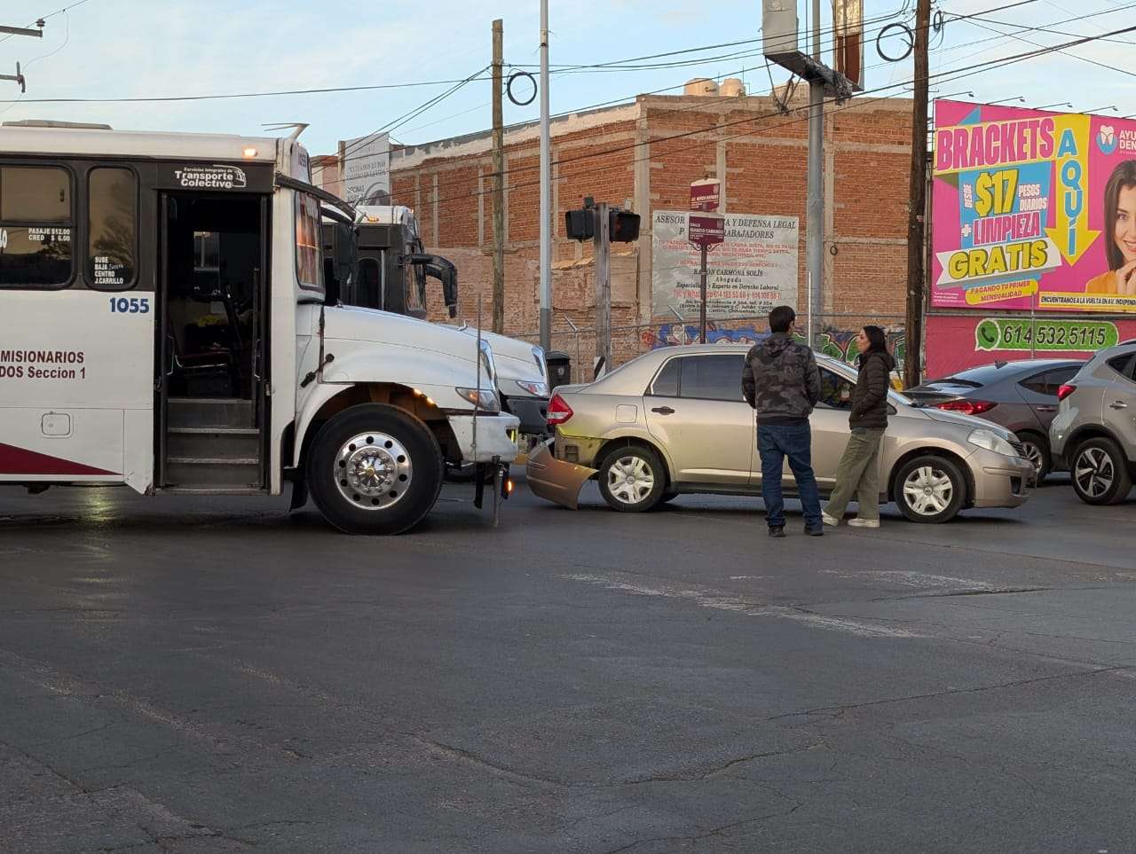 Chihuahua.- Un accidente vial entre un camión urbano de la ruta Chihuahua–Portillo y un vehículo Nissan Tiida se registró en la Zona Centro, lo que provocó congestionamiento vehicular en el área, sin que se reportaran personas lesionadas.
