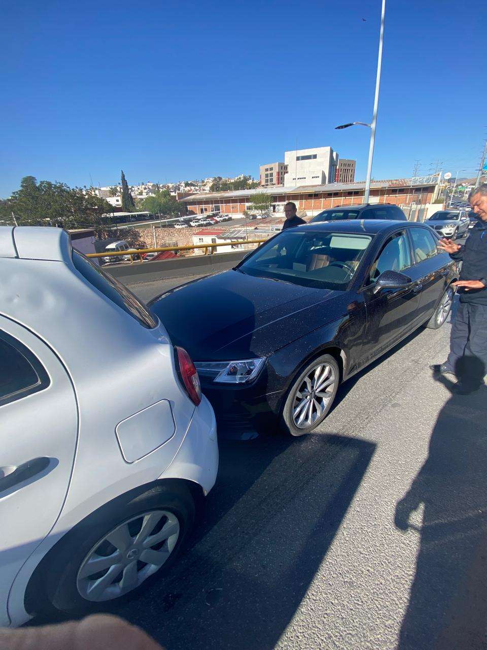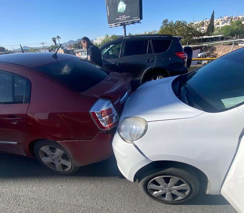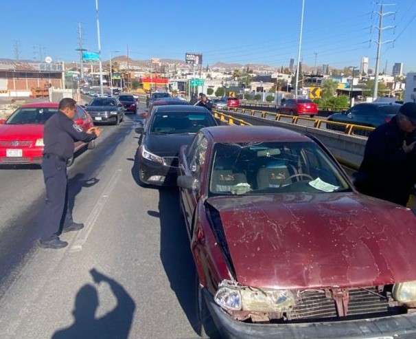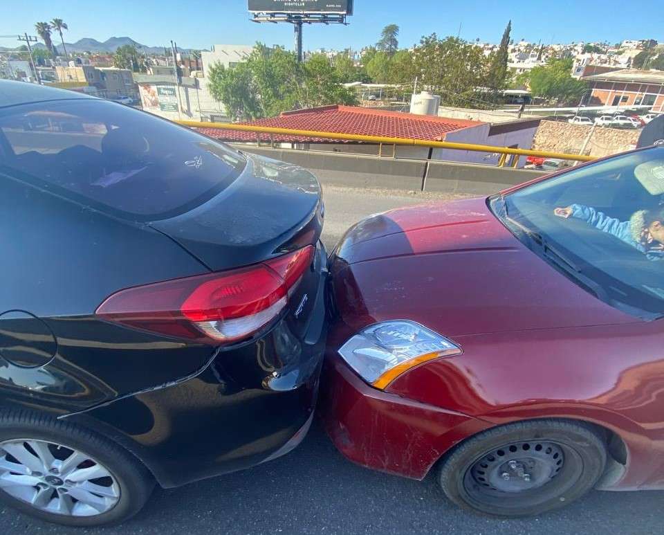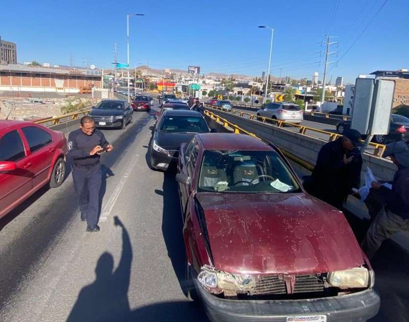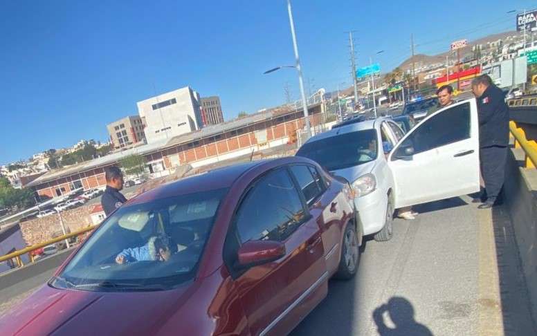 Chihuahua.- Un accidente vial se registró esta mañana en el puente de Cantera, cuando una señora que conducía un vehículo Audi impactó a otro automóvil, provocando una carambola que involucró a un total de cinco vehículos.