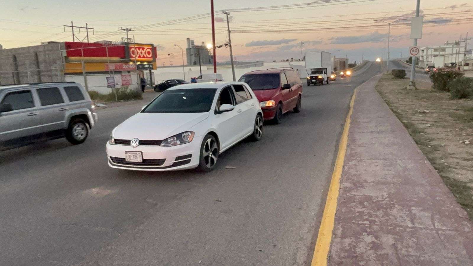 El accidente se registró cuando los vehículos esperaban el cambio de luz del semáforo que se ubica en la calle 56 y boulevard Juan Pablo II, cuando una camioneta Veture, impacta a dos vehículos un Jetta y un Aveo, este último se retira, ya que consideró que su vehículo no presentaba daños.