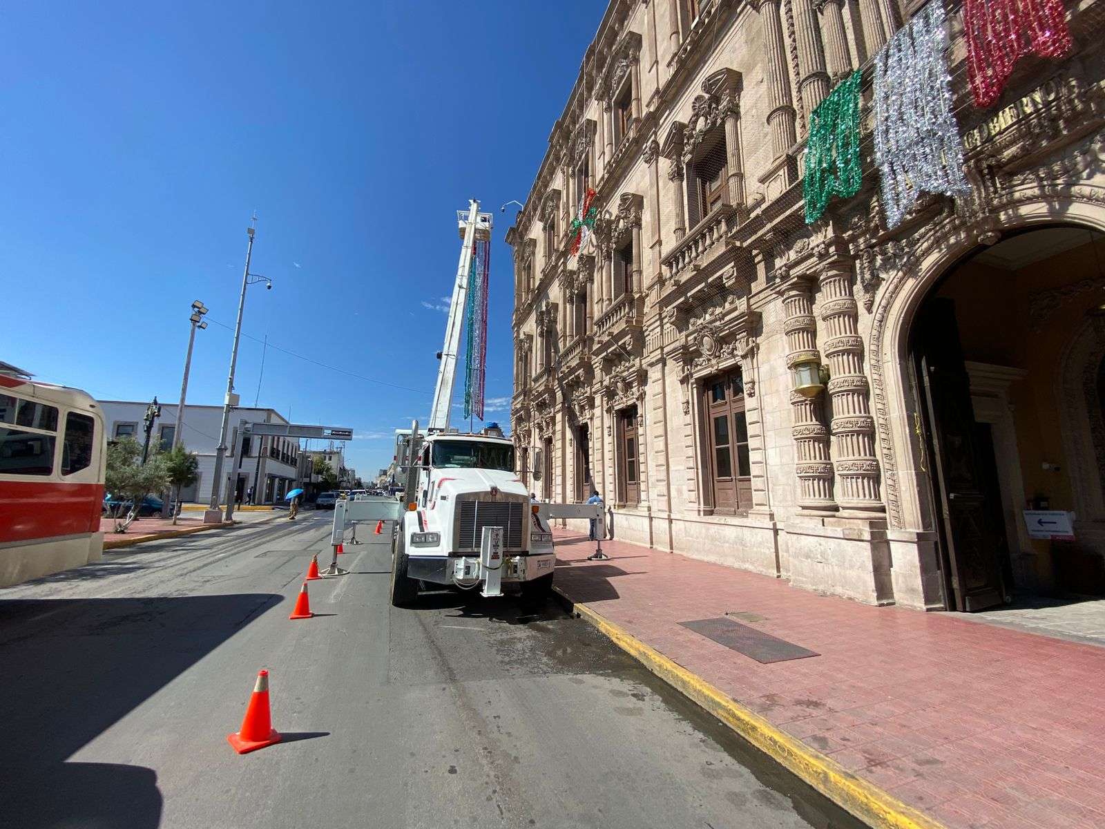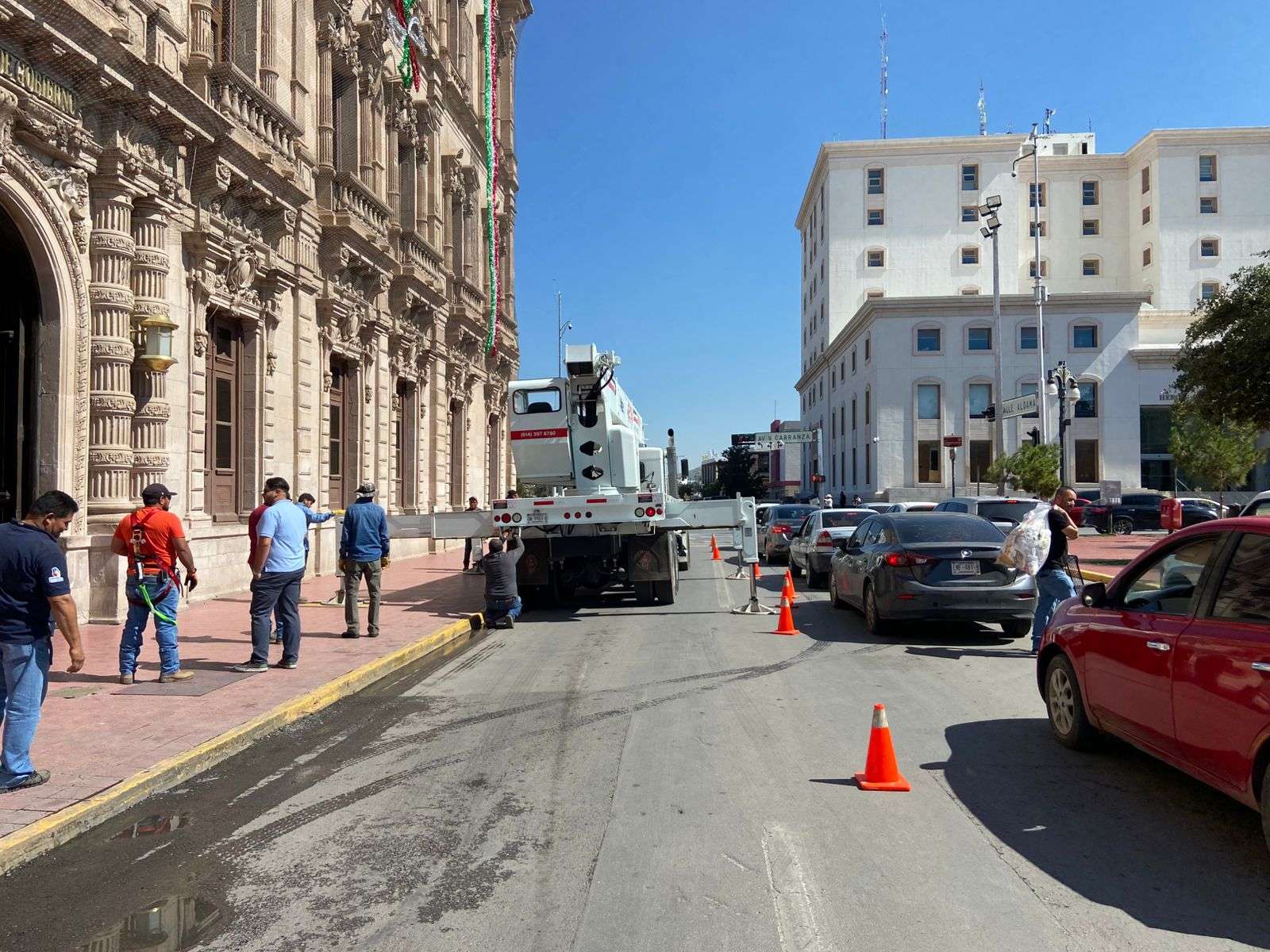 Lo anterior, para instalar una grúa y desmontar los arreglos patrios, lo que generó congestionamiento vehicular en el centro de la ciudad.