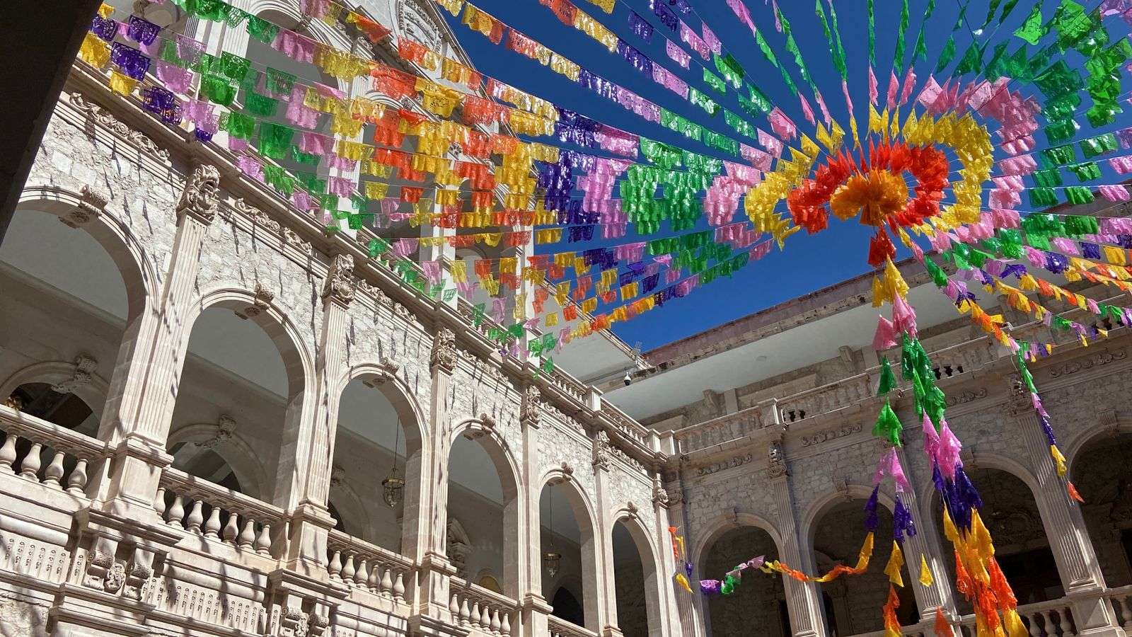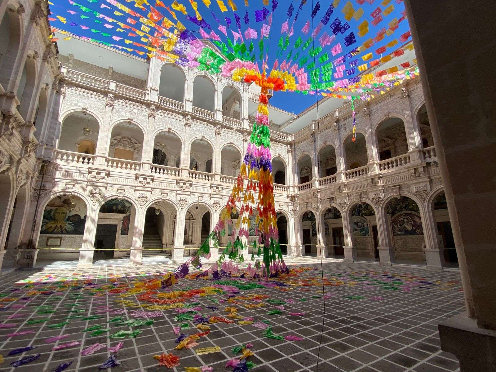 Además de los adornos exteriores, también se retiraron las decoraciones del patio central del Palacio, donde se habían colocado banderas multicolores con las leyendas “¡Viva México!” y “¡Viva Chihuahua!”.