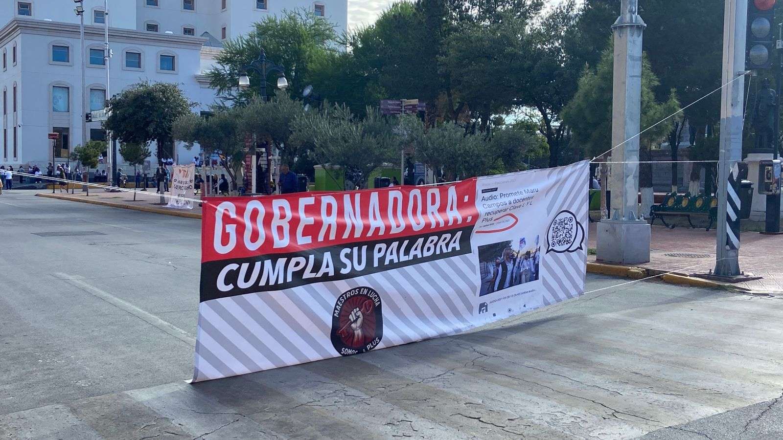 Las calles del primer cuadro de la ciudad permanecen cerradas, desde la avenida Juárez hasta la Escorza, y desde la calle Quinta hasta la Carranza. Los maestros exigen a la Gobernadora Maru Campos que cumpla con su compromiso de recuperar las claves L y L-plus.