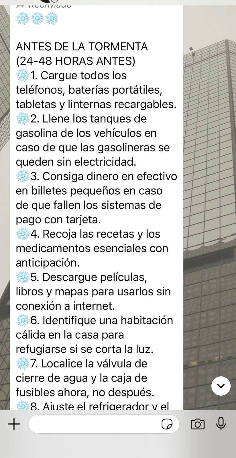Estas recomendaciones circulan en la red y ofrecen alternativas para aligerar la presión que se pueda presentar en caso de severos descensos de temperatura, con la presencia de la tercera tormenta invernal que se dejará sentir este sábado y domingo, sobre todo por las afectaciones que puedan causar en el país vecino, Eu, previniendo un caso similar al ocurrido en 2021, donde una tormenta invernal afectó a Texas y causó el congelamiento de gasoductos y pozos productores, interrumpiendo el suministro de gas natural hacia México, lo que ocasionó cortes eléctricos en el norte del país y cortes programados en 12 estados.