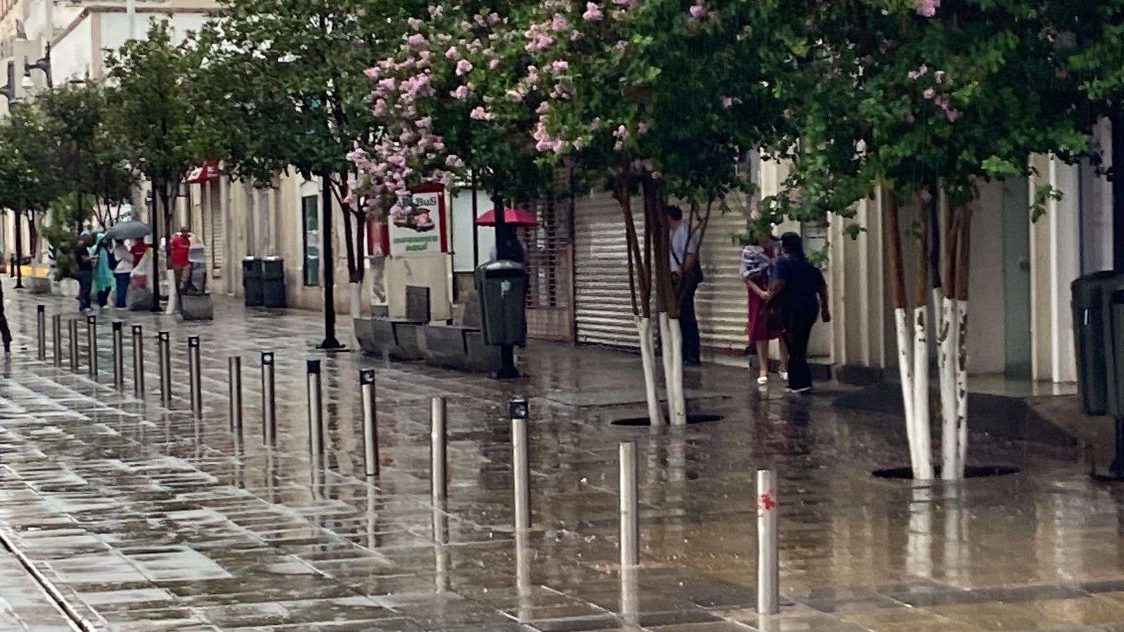 La gente no esperaba que esta lluvia se presentara por lo que muy pocos hacían uso del paraguas y otros más sólo caminaban bajo la lluvia y se refugiaba bajo las cornisas de los negocios.