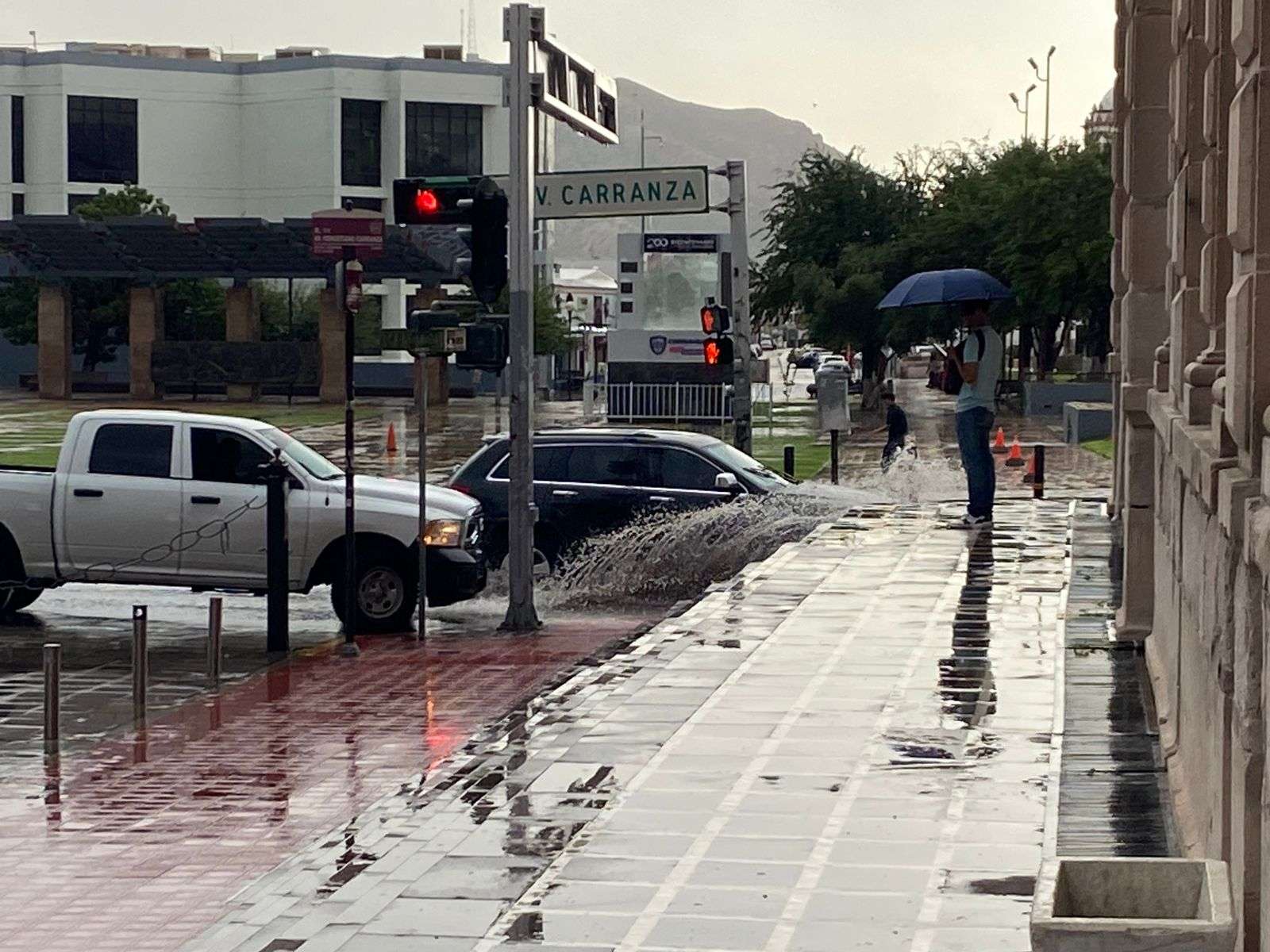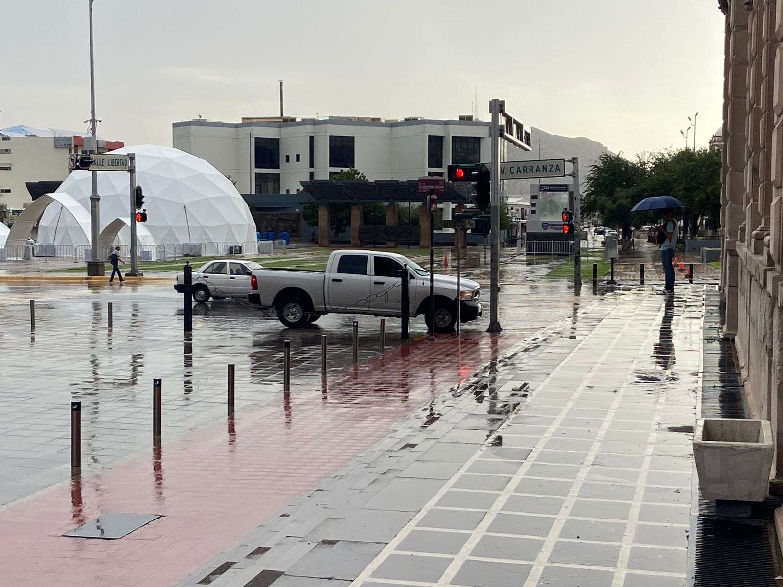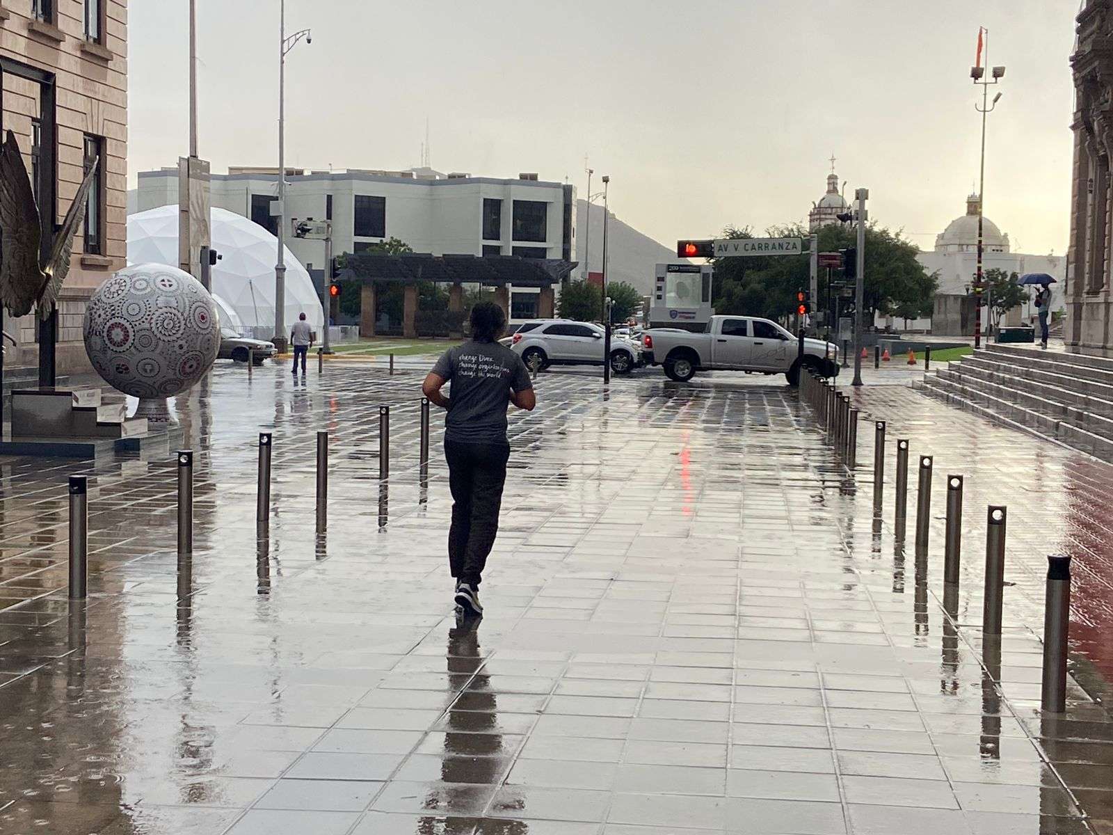 Chihuahua.- Comenzó a caer una ligera pero copiosa lluvia en el centro de la ciudad, lo que agarró desprevenidas a todas las personas que iban llegando al centro de la ciudad.