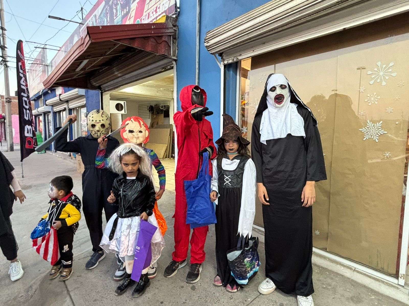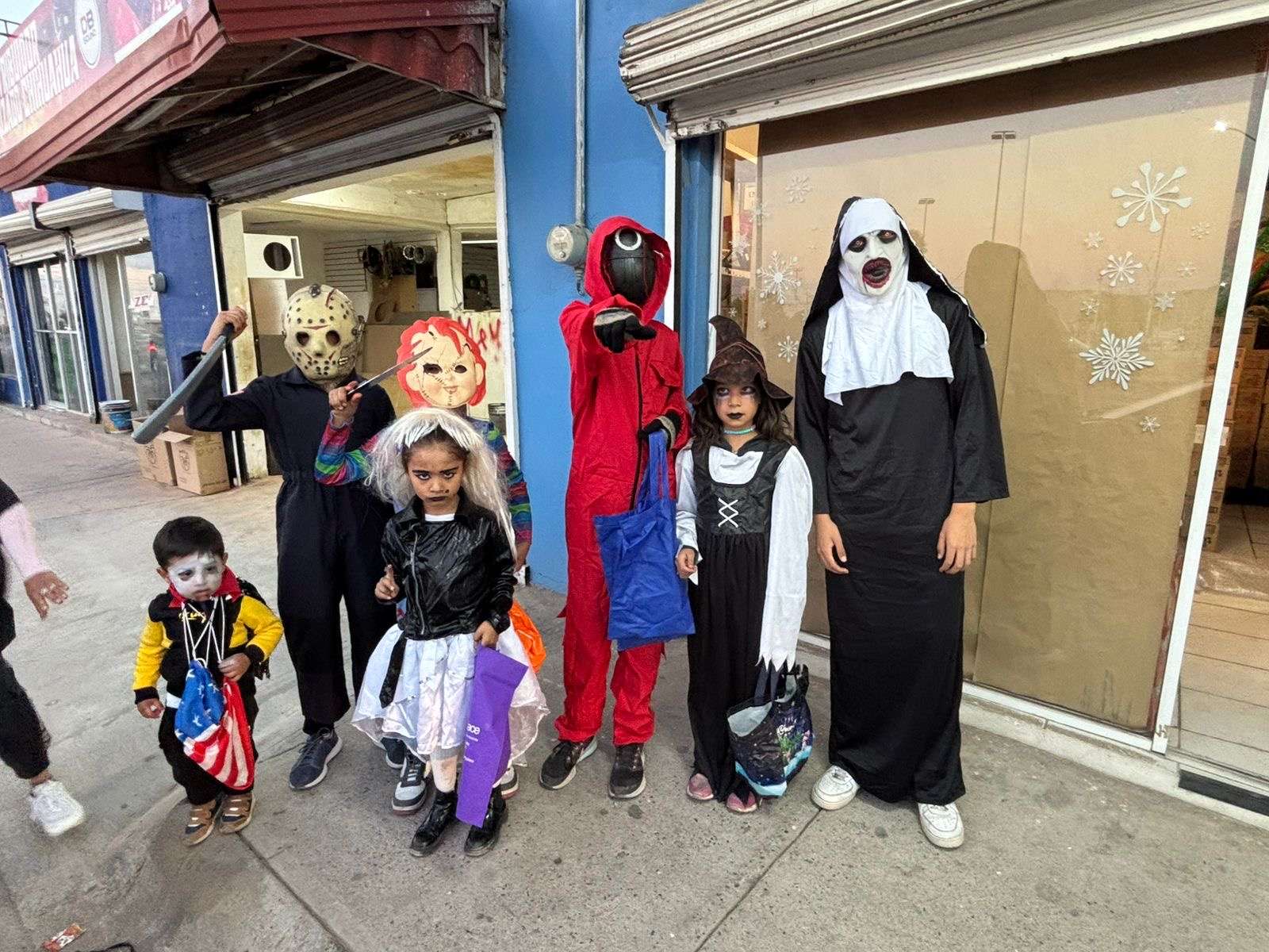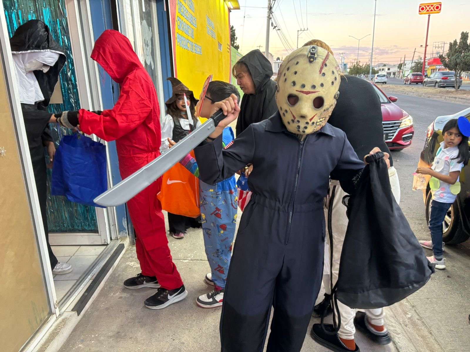Chihuahua.- En varias colonias de la ciudad, niños y niñas disfrazados o maquillados de personajes de horror, salieron a las a pedir dulces con la famosa frase Dulce o Truco.