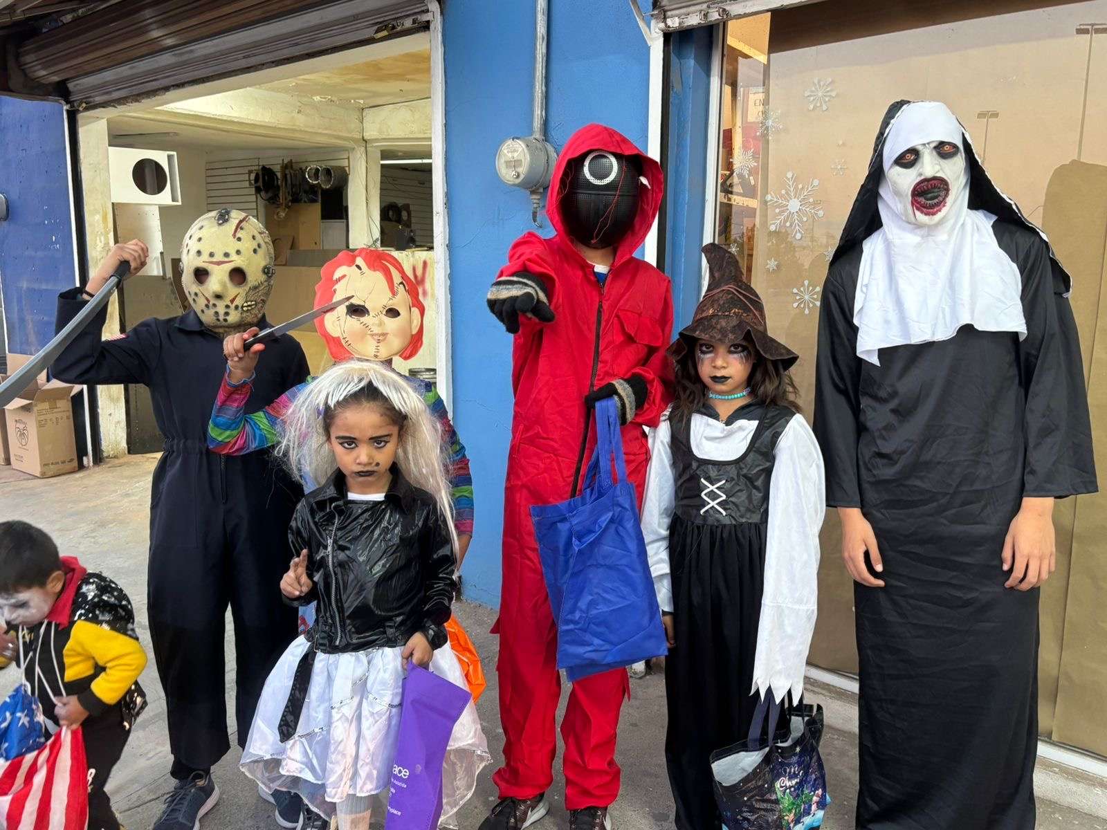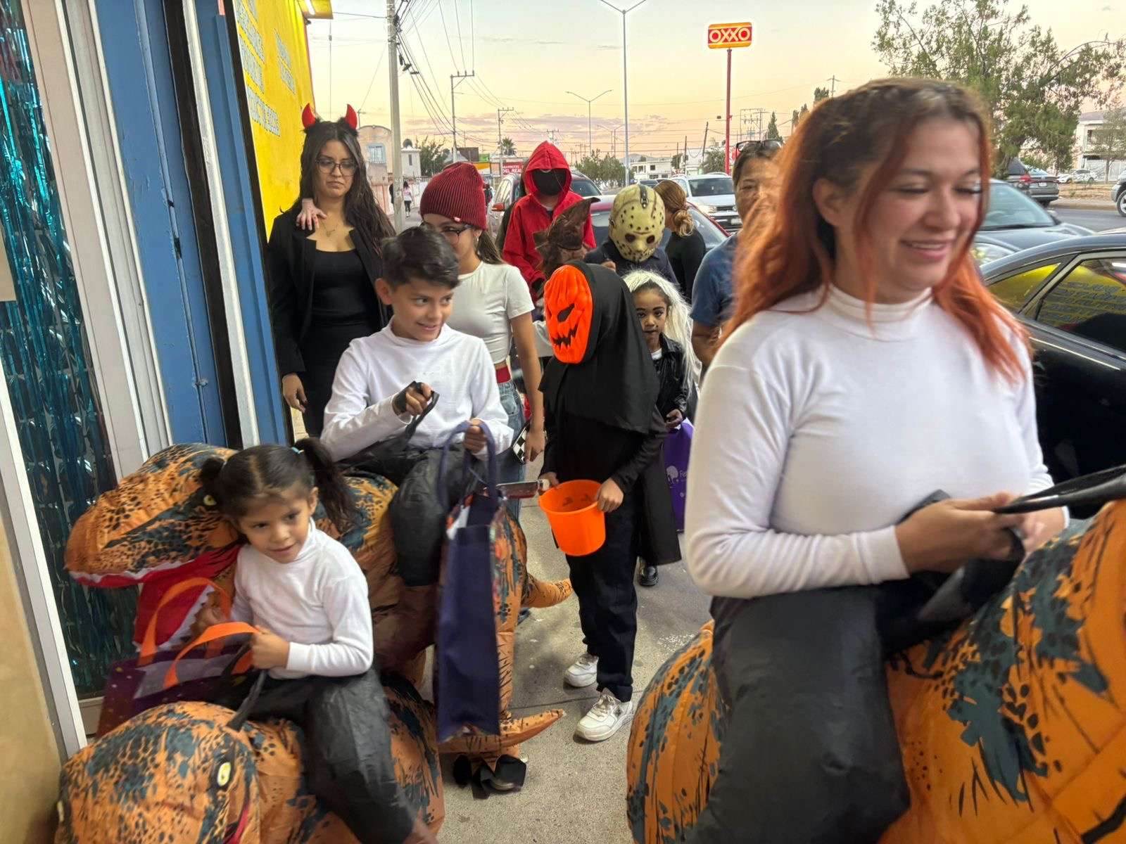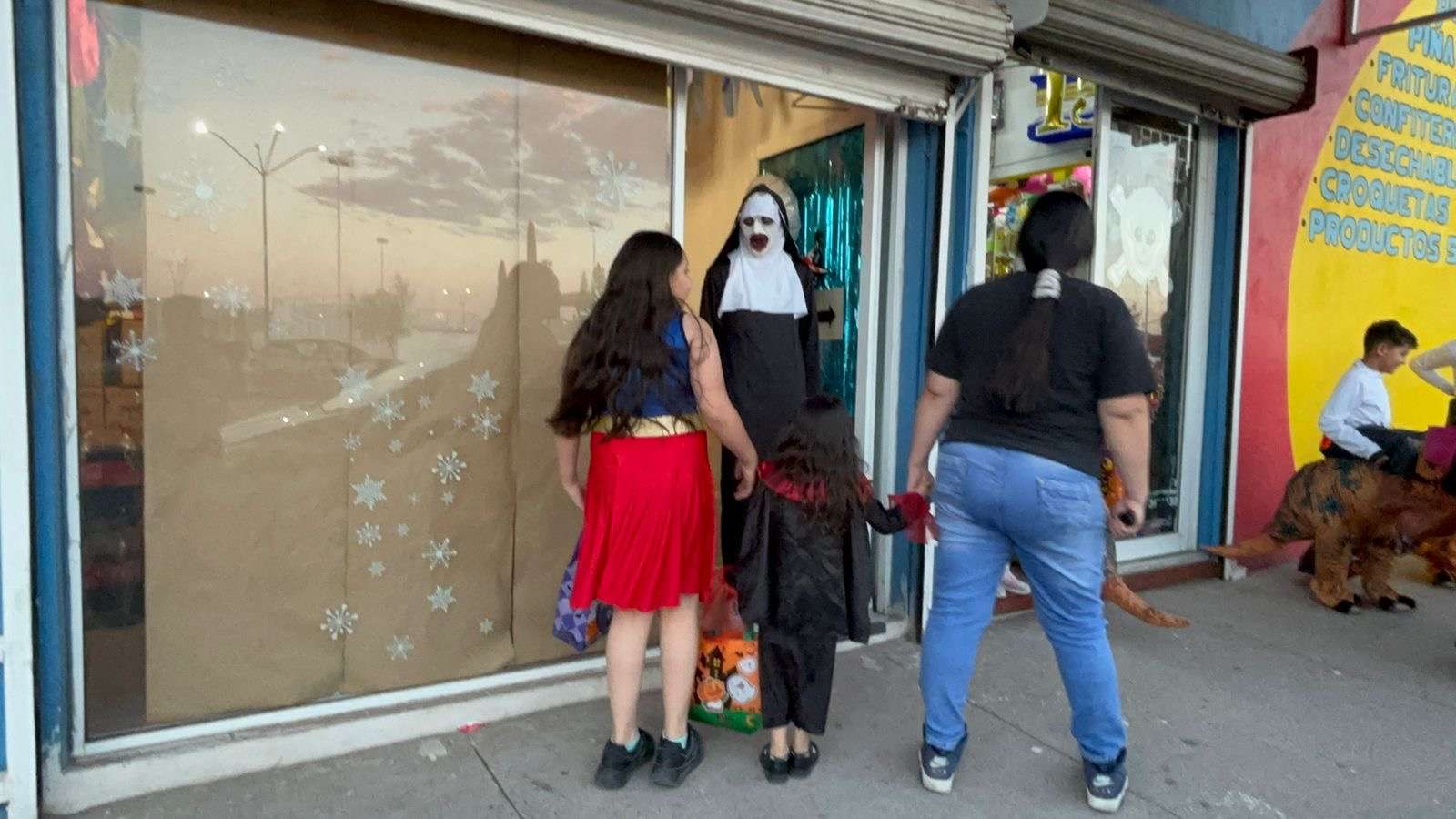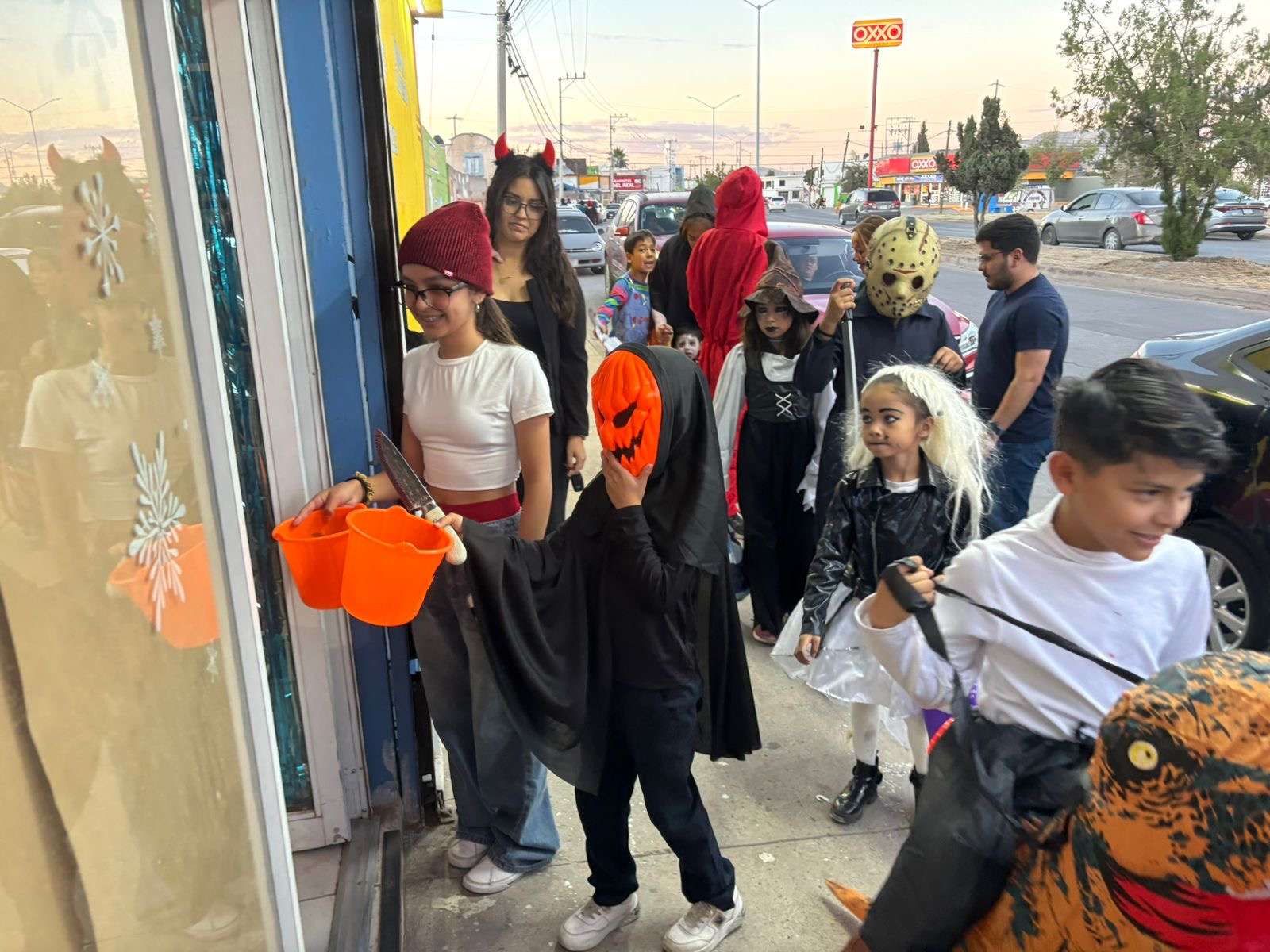 Chihuahua.- En varias colonias de la ciudad, niños y niñas disfrazados o maquillados de personajes de horror, salieron a las a pedir dulces con la famosa frase Dulce o Truco.