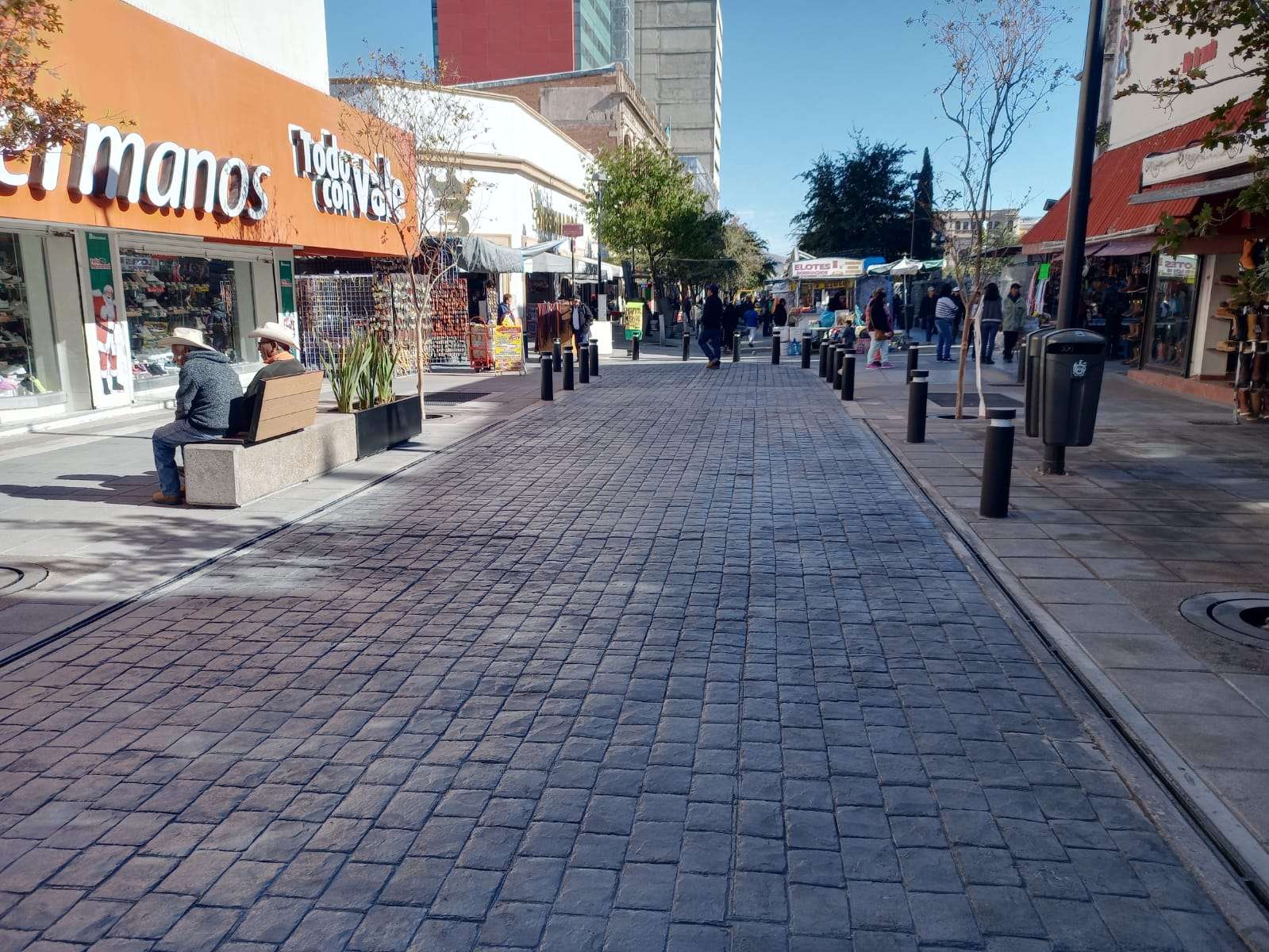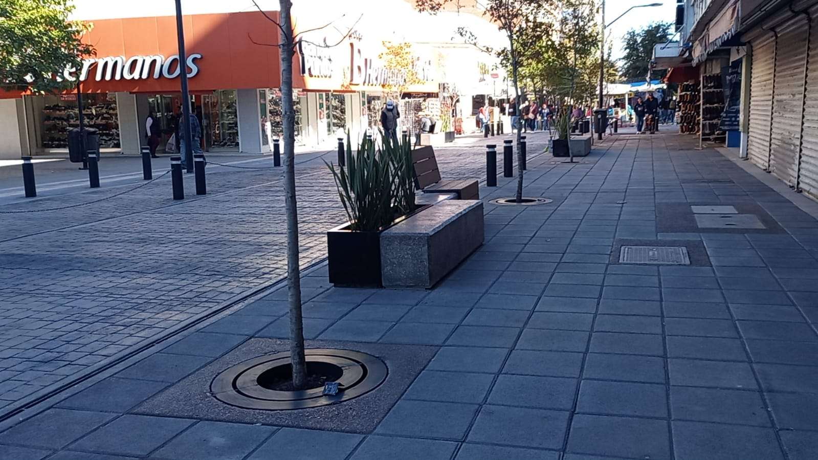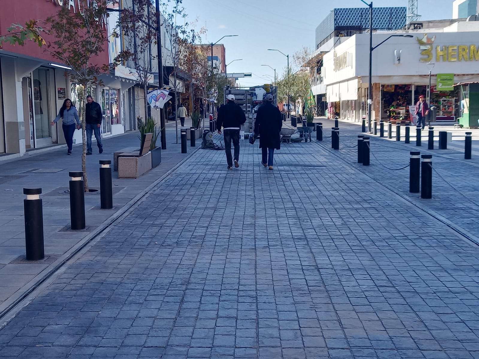 También se colocaron adoquines, concreto estampado, bolardos, mesas con bancos de concreto y árboles de encino rojo que adornan la calle libertad y le dan una vista muy agradable.