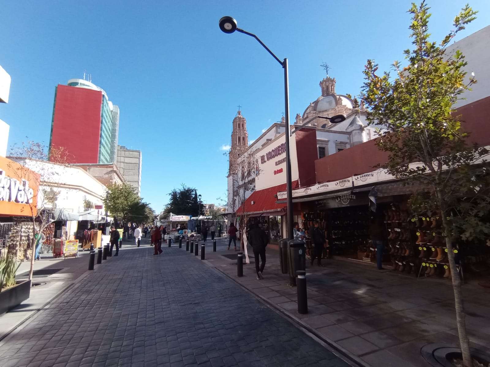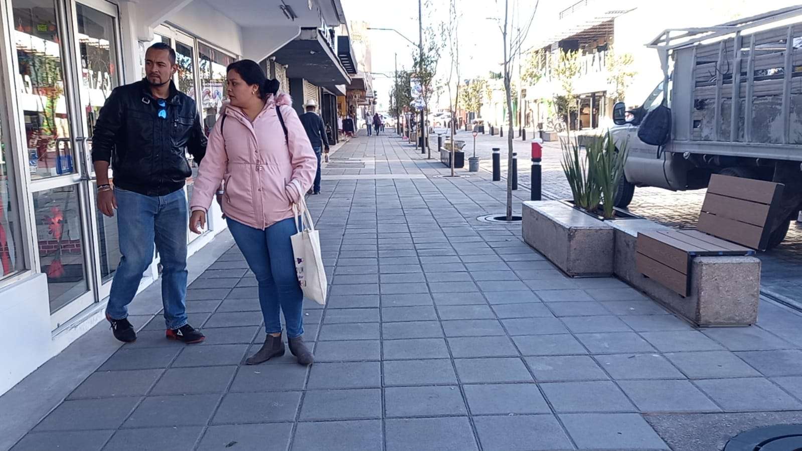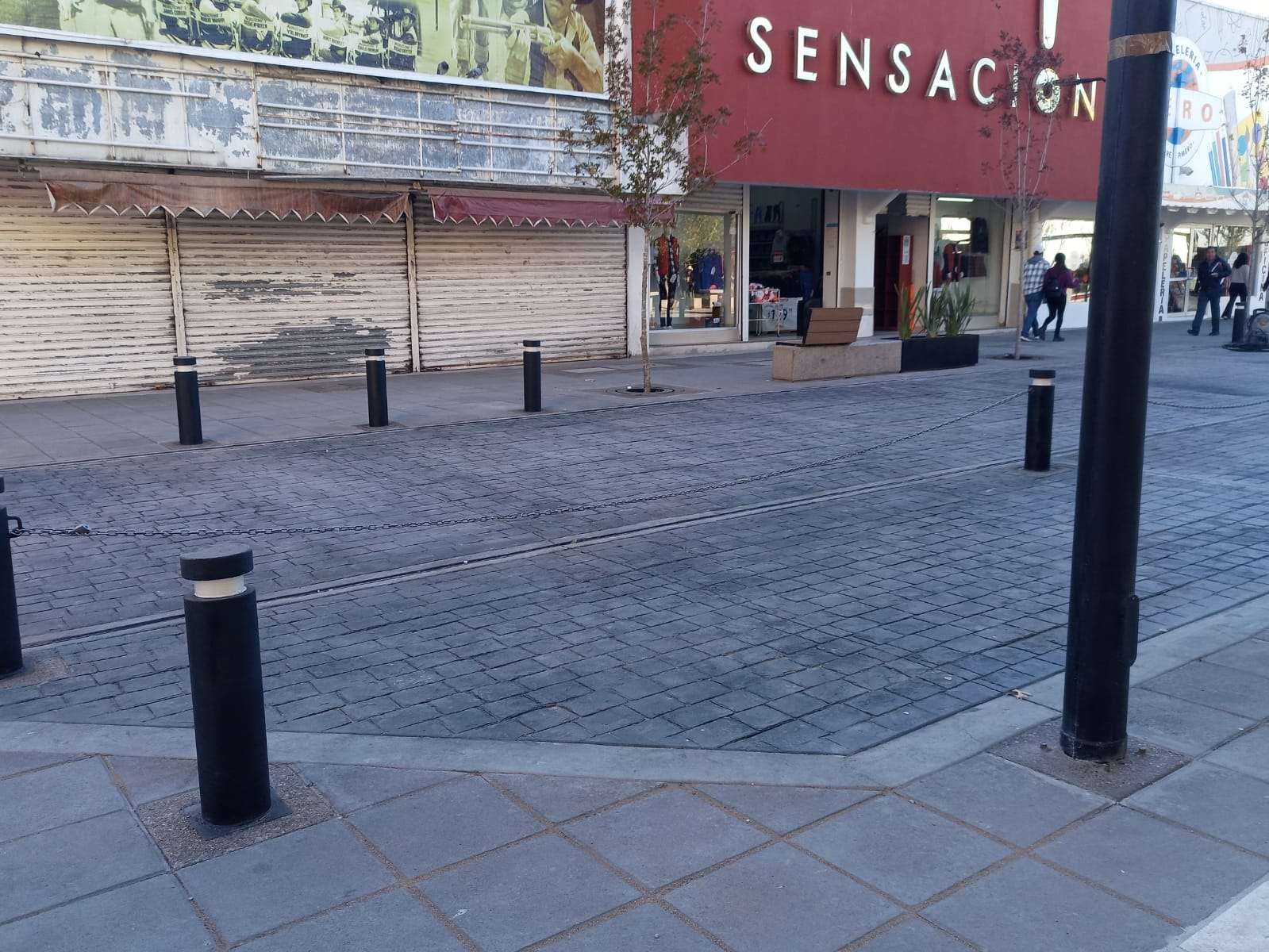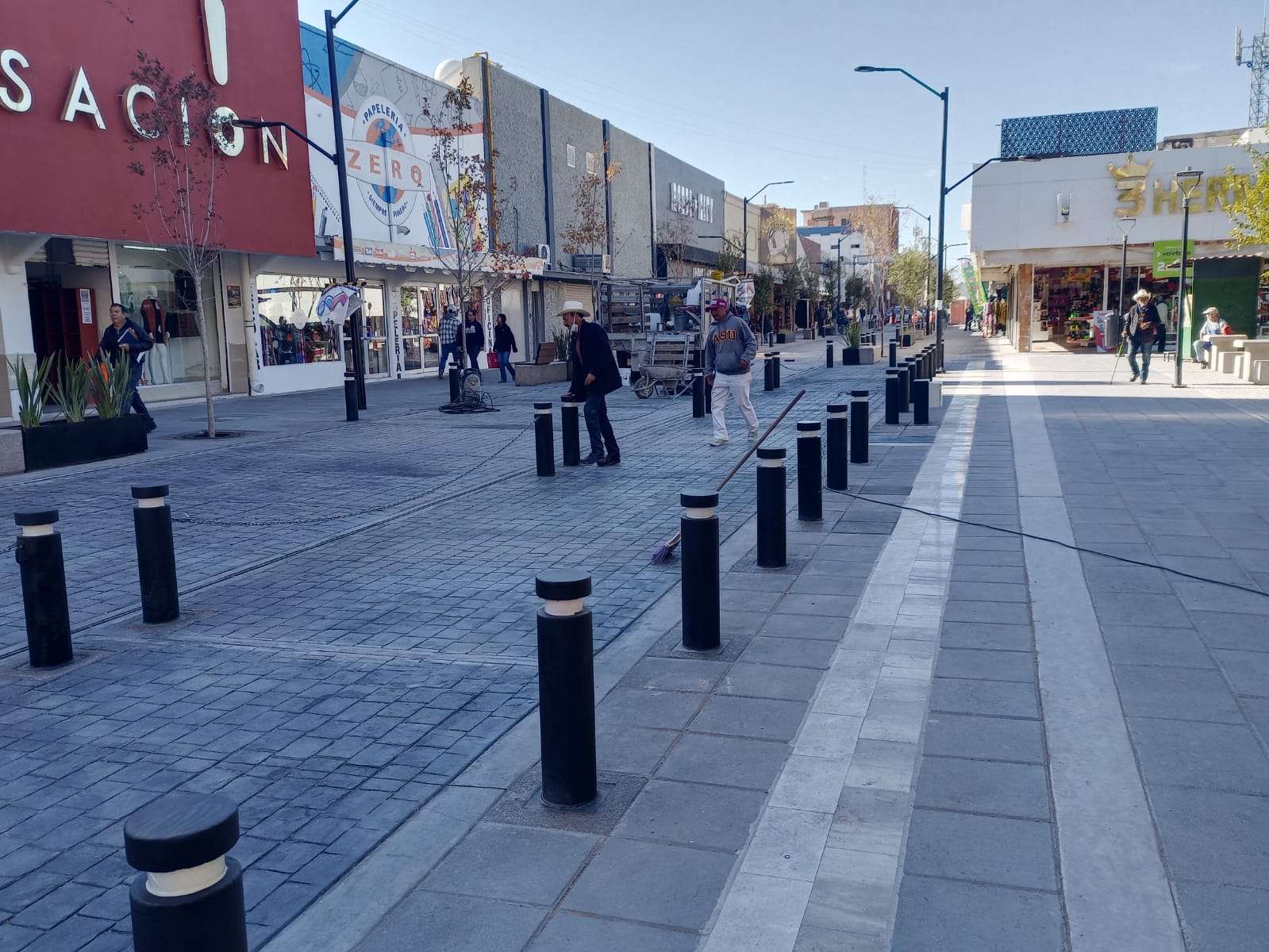 También se colocaron adoquines, concreto estampado, bolardos, mesas con bancos de concreto y árboles de encino rojo que adornan la calle libertad y le dan una vista muy agradable.