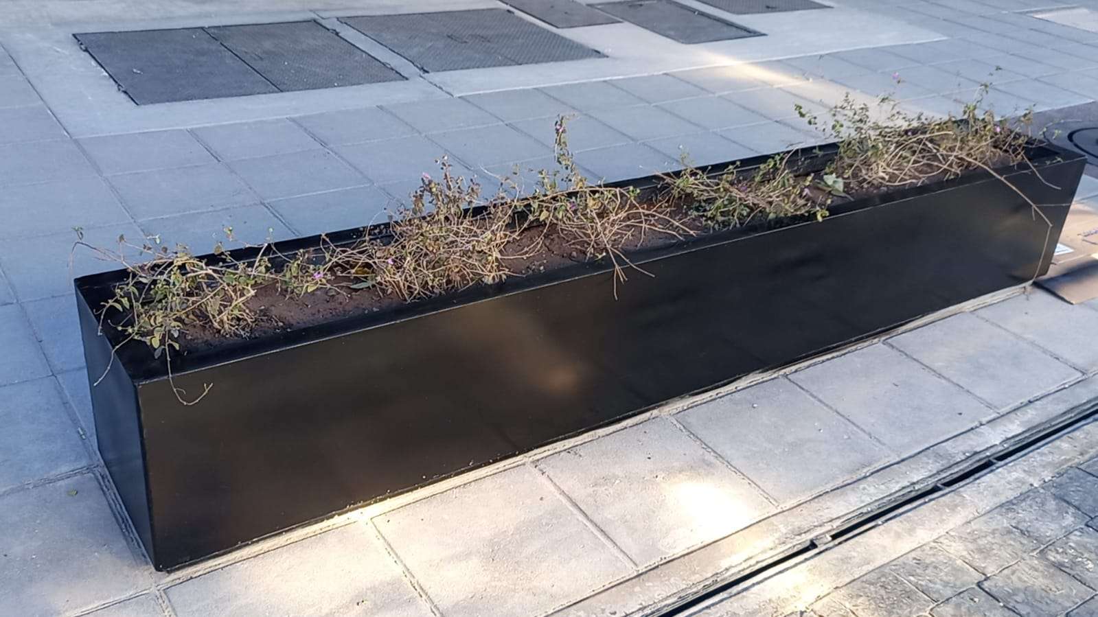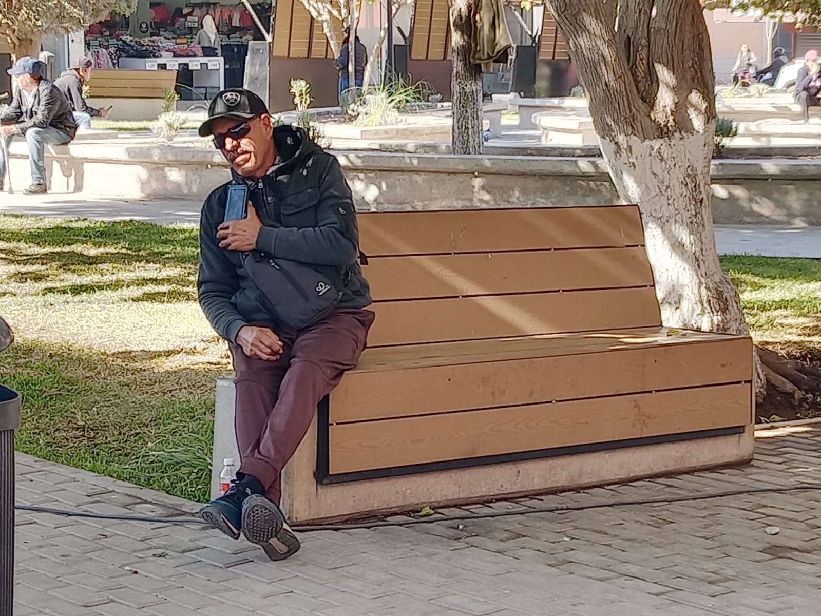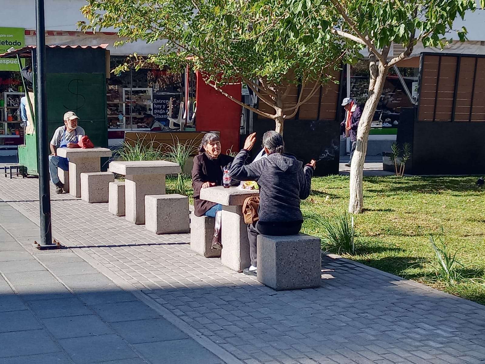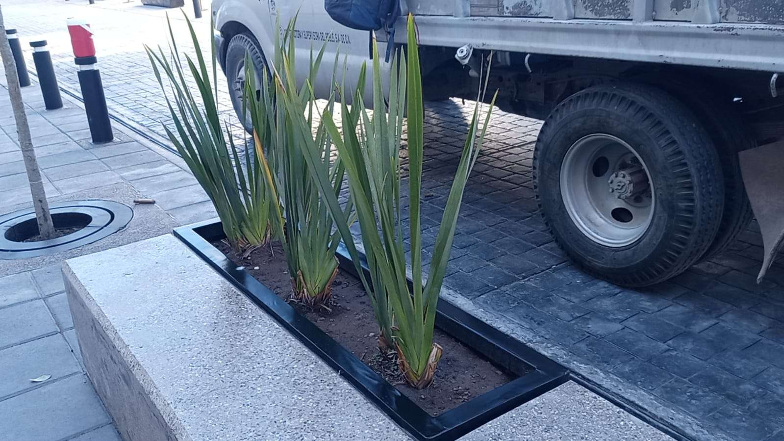 En la plaza merino se colocaron jardineras nuevas con plantas de ornamento y pasto en todo su alrededor, así como los módulos de los boleros que ya se rehabilitaron y son ahora más grandes hechos de madera y acero.