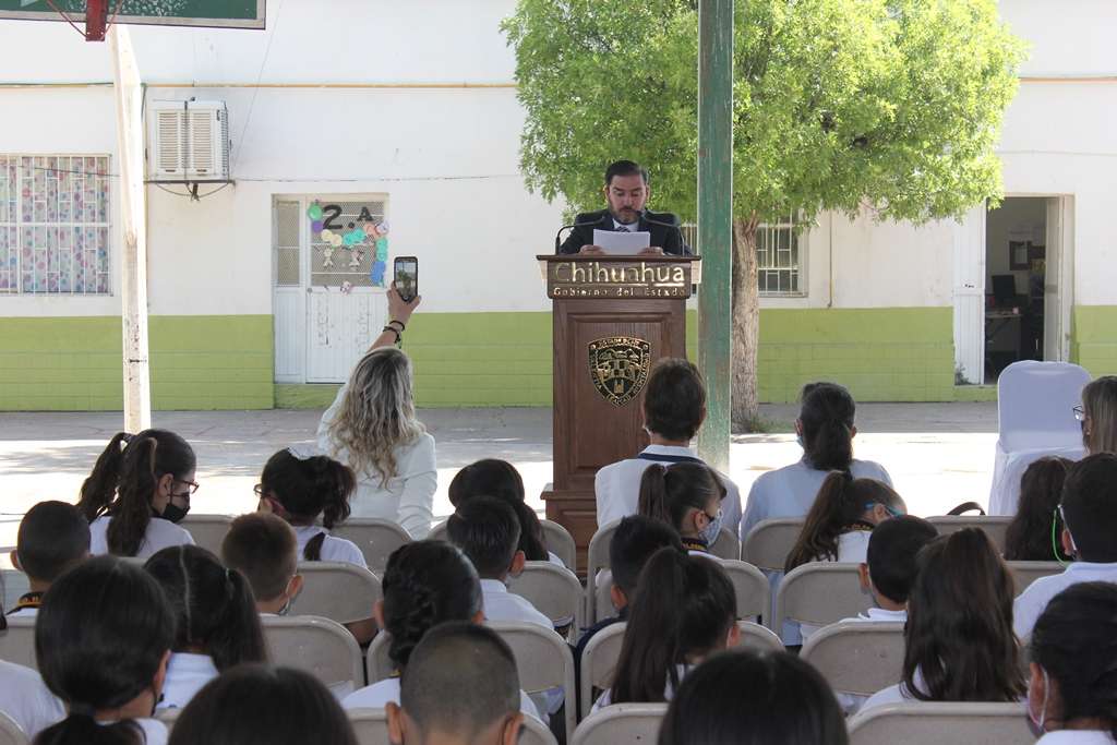 En representación de la Gobernadora Maru Campos, el jefe del Departamento de Educación Secundaria de la SEyD, Héctor Alejandro Navarro Barrón, destacó la enseñanza de Francisco R. Almada para las nuevas generaciones: es que no hay límites.