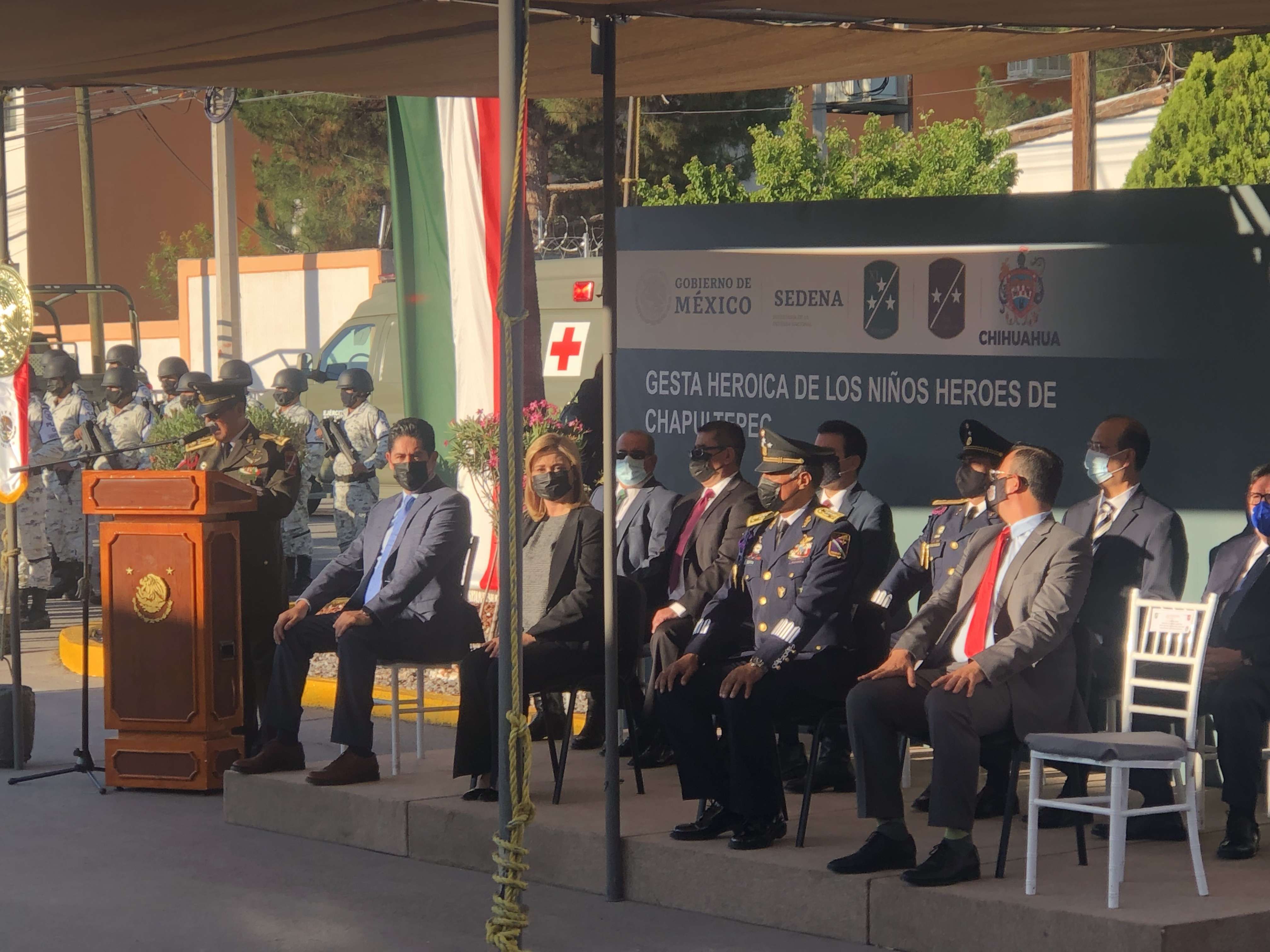 Chihuahua- La Quinta Zona Militar y la Gobernadora Maru Campos encabezaron la Ceremonia de Gesta Heroica de los Niños Héroes, en el marco de la conmemoración de los festejos patrios.