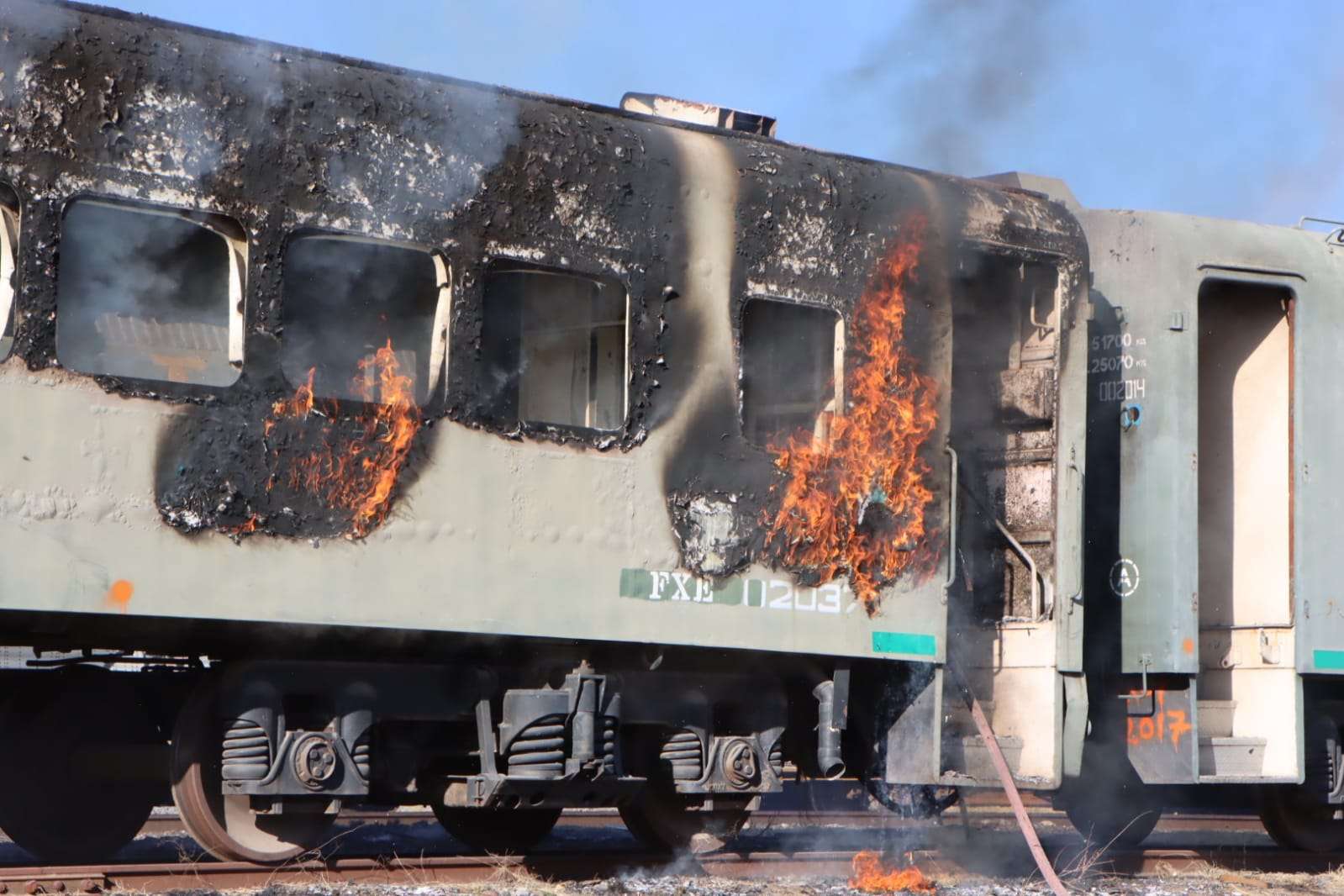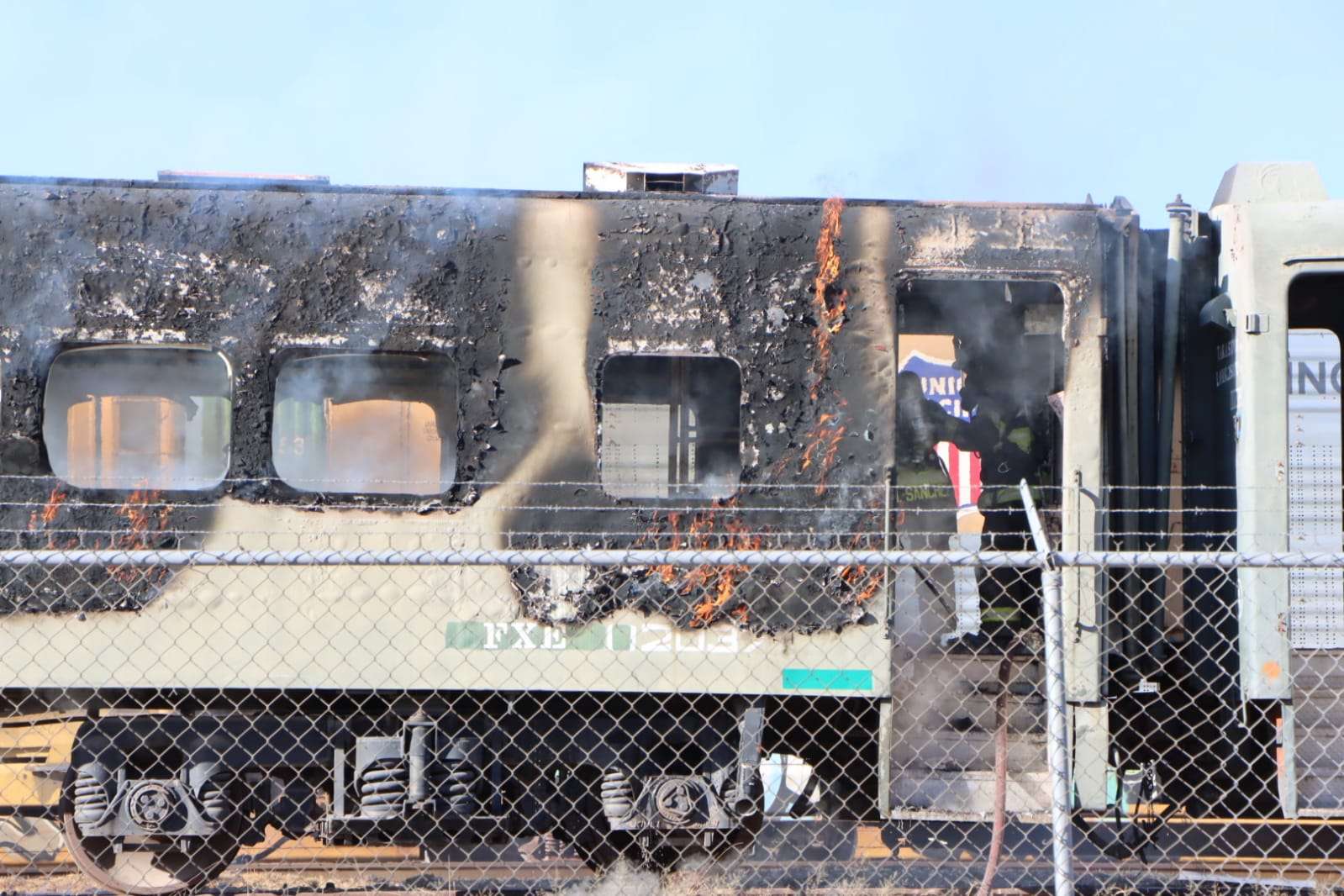 Elementos del cuerpo de bomberos acudieron rápidamente y sofocaron el incendio que consumió el interior y parte del exterior del vagón