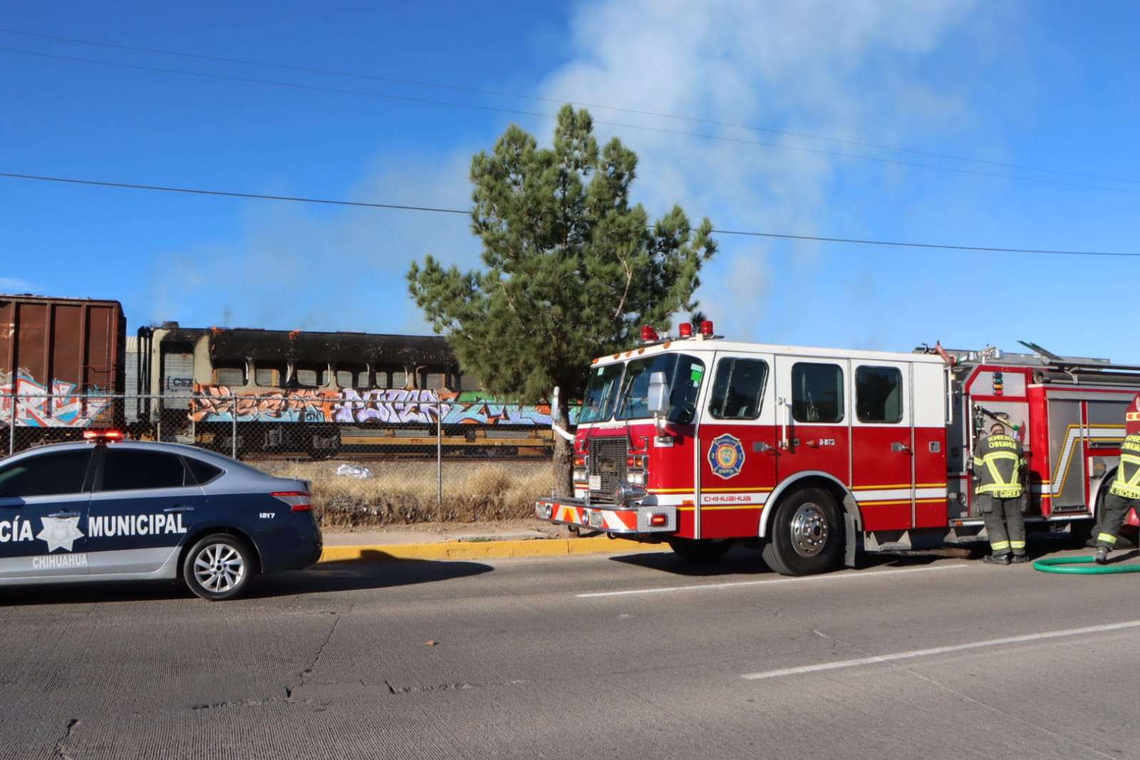 Chihuahua, Chih.- Un incendio en un vagón alertó a las autoridades en los patios de Ferromex, ubicados a un costado del Centro de Convenciones de Chihuahua sobre la Avenida de las Industrias, durante la mañana de este domingo.