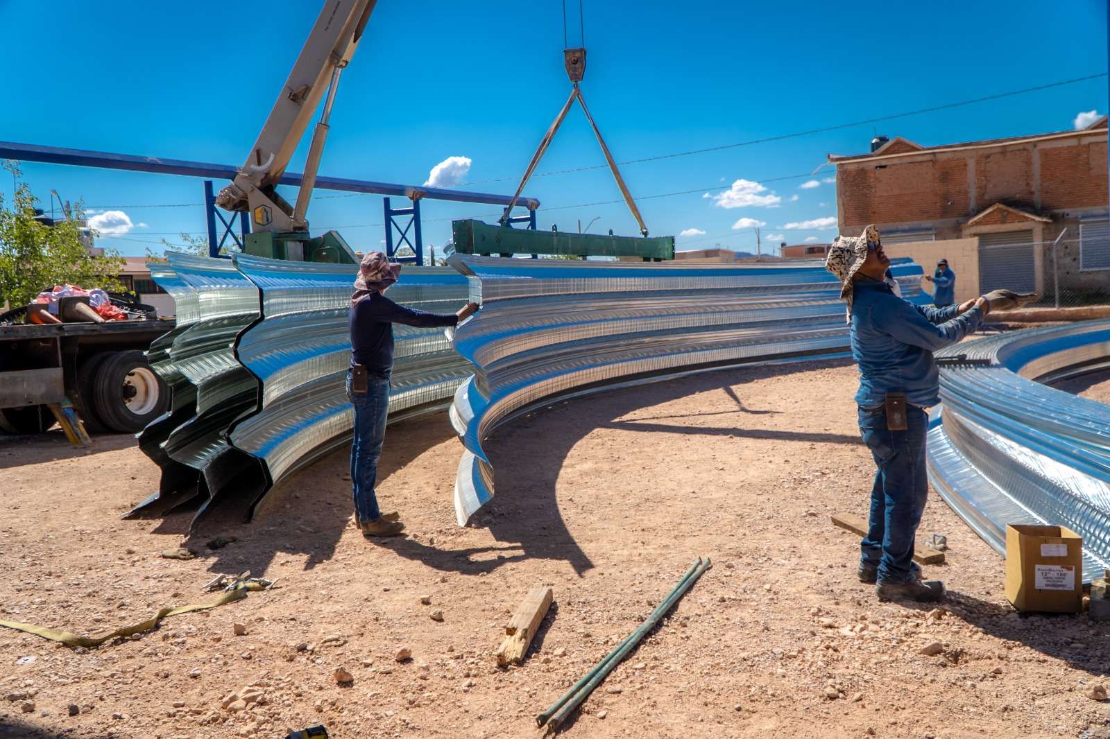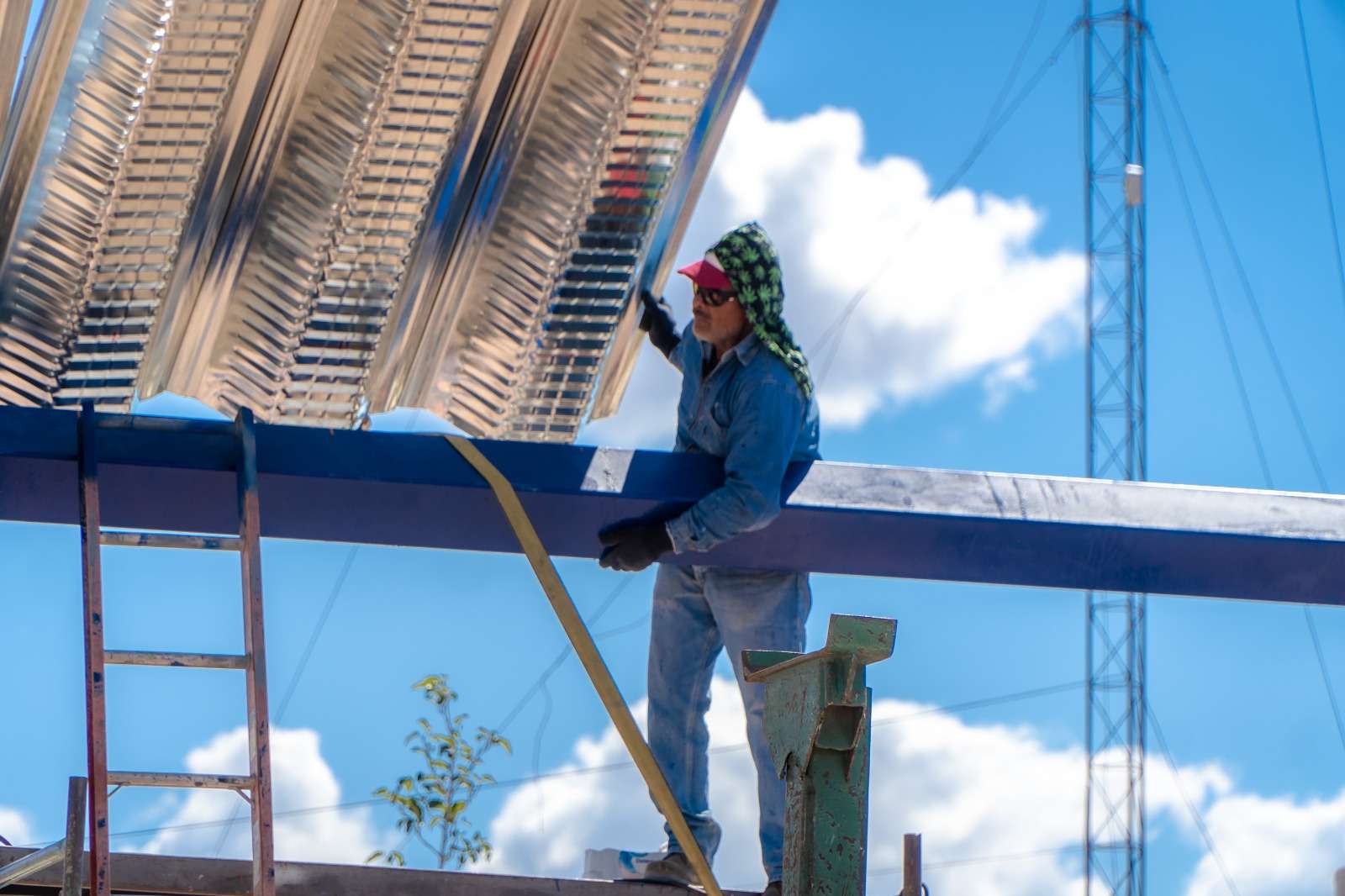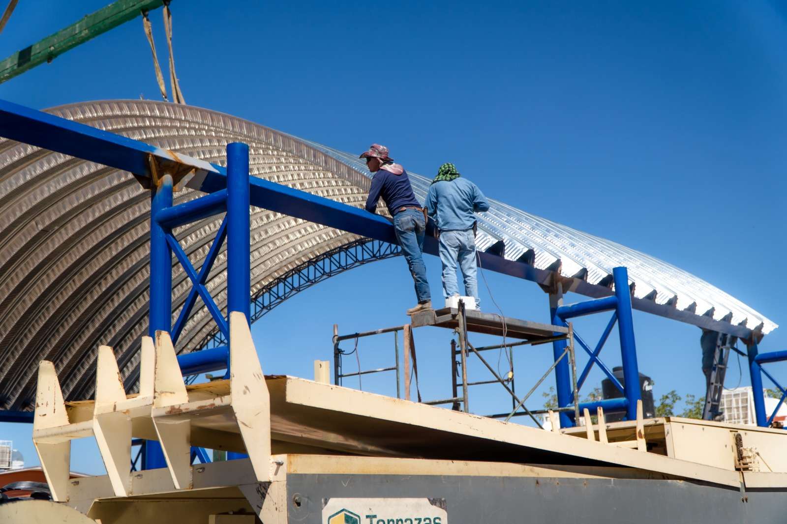 Hasta la fecha se realizaron trabajos de excavaciones, construcción de zapatas y dados, colocación de columnas, vigas y armaduras para domo metálico en un área de 480 metros cuadrados, así como también la instalación de lámina galvanizada.