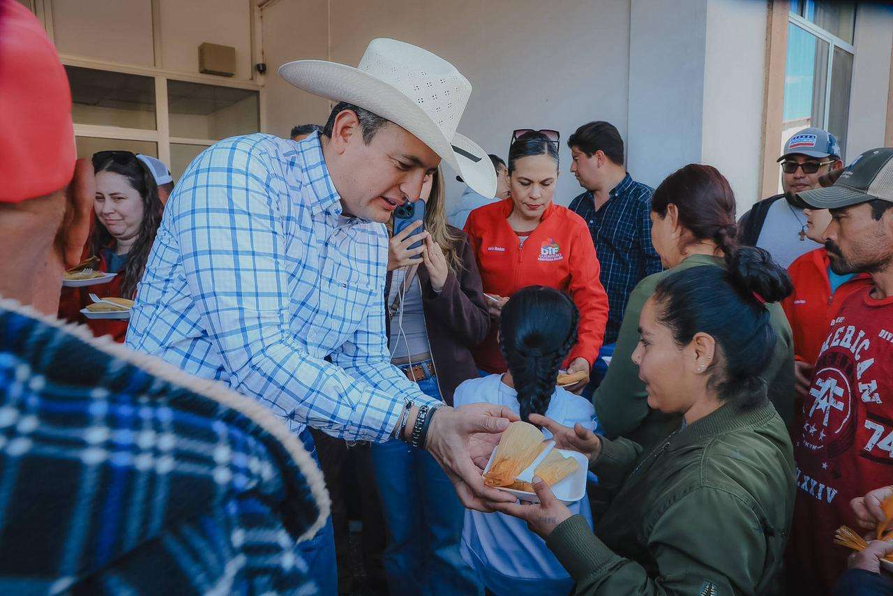 Guerrero, Chih.- El alcalde de Chihuahua, Marco Bonilla, acompañado del presidente municipal de Guerrero, Salvador Villa, convivió con familias de distintas comunidades del municipio para entregar tamales y champurrado con motivo del Día de la Candelaria, cumpliendo el compromiso realizado durante la tradicional partida de rosca en el Día de Reyes.