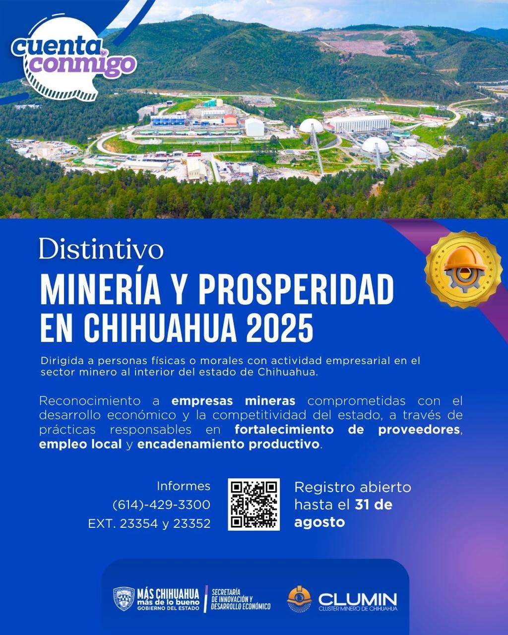 La convocatoria para inscripciones está abierta desde el 18 de julio hasta el 31 de agosto. Las inscripciones se pueden realizar a través de la página chihuahua.com.mx/mineria, donde se encuentra más información.