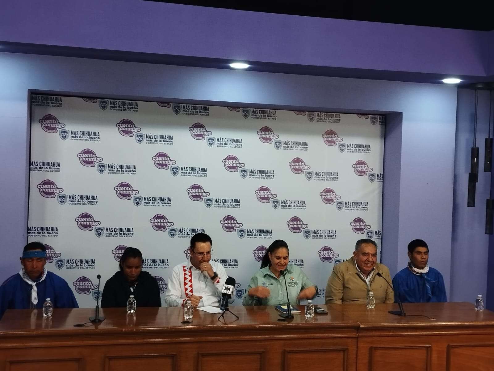 Chihuahua.- Esta mañana se llevó a cabo la rueda de prensa que presentó a los tres corredores de origen rarámuri que participarán en la próxima carrera Ultra-Trail de Mont-Blanc (UTMB) en Francia.