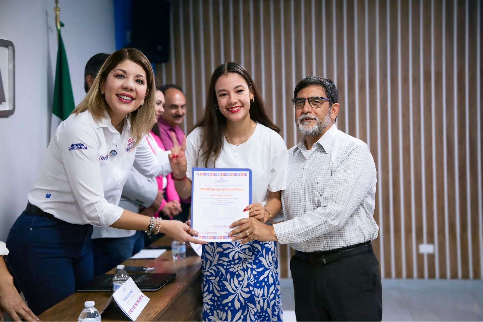 Acompañada por las y los integrantes de la Comisión Estatal de Procesos Electorales, Daniela Álvarez entregó personalmente las constancias de mayoría y precisó que las y los nuevos dirigentes entrarán en funciones una vez que la Comisión Permanente Nacional apruebe el paquete de elección del Estado de Chihuahua.