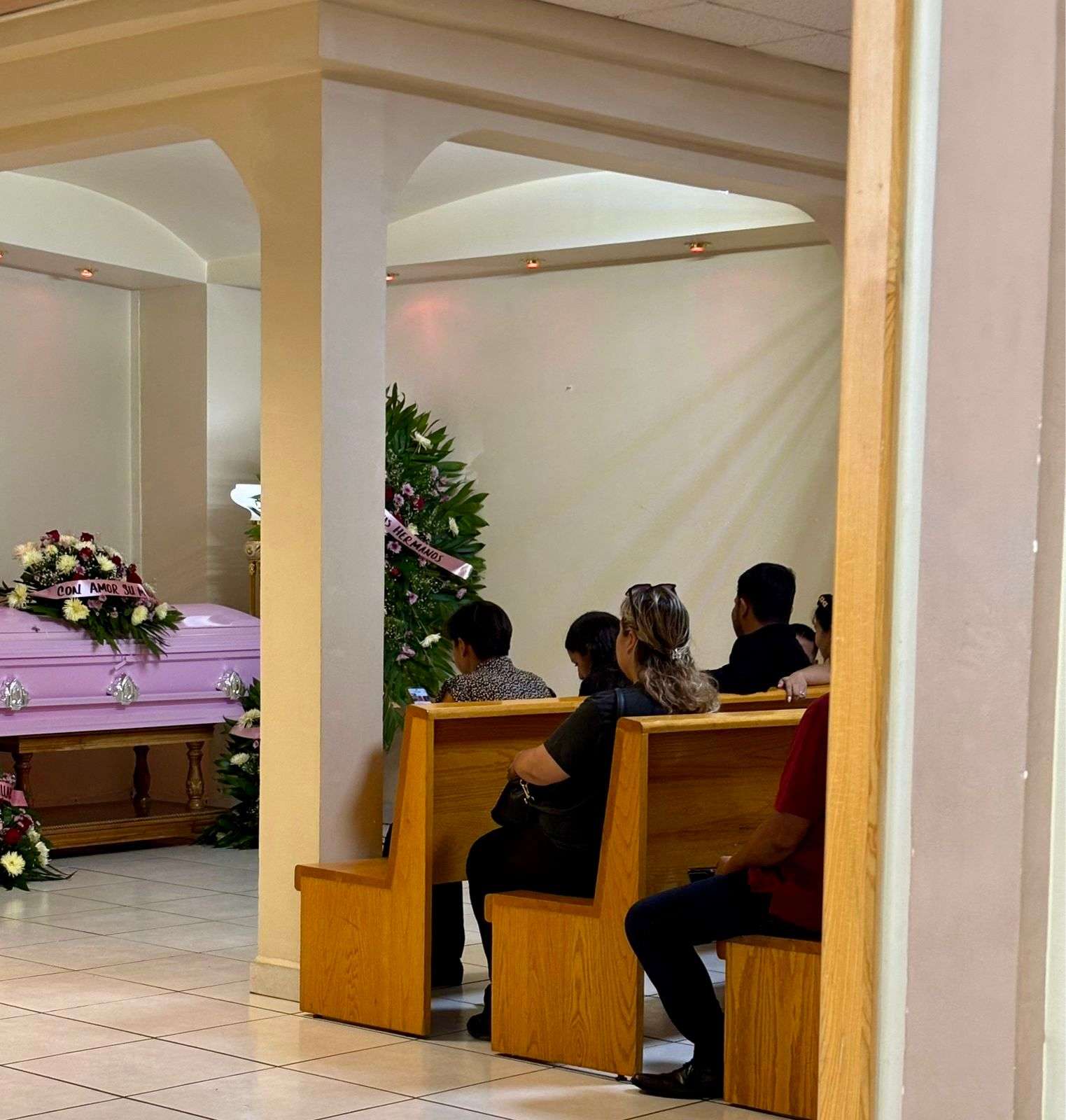Chihuahua.- Los restos de Danna Angelina Muñoz Rayón de 21 años, fueron velados en la funeraria Miranda de la Tecnológico en un ataúd completamente cerrado.