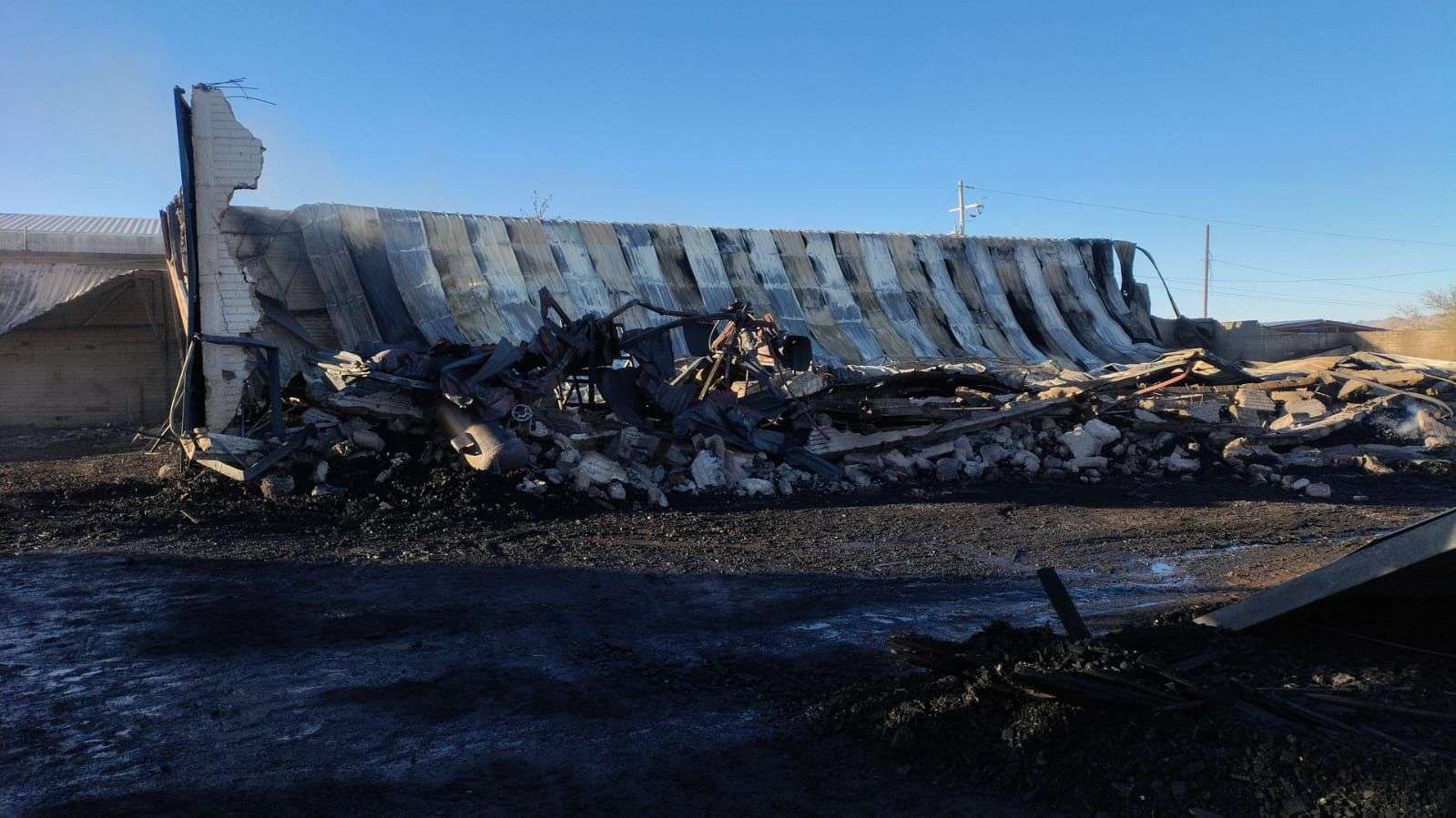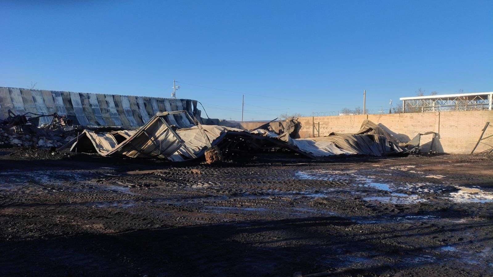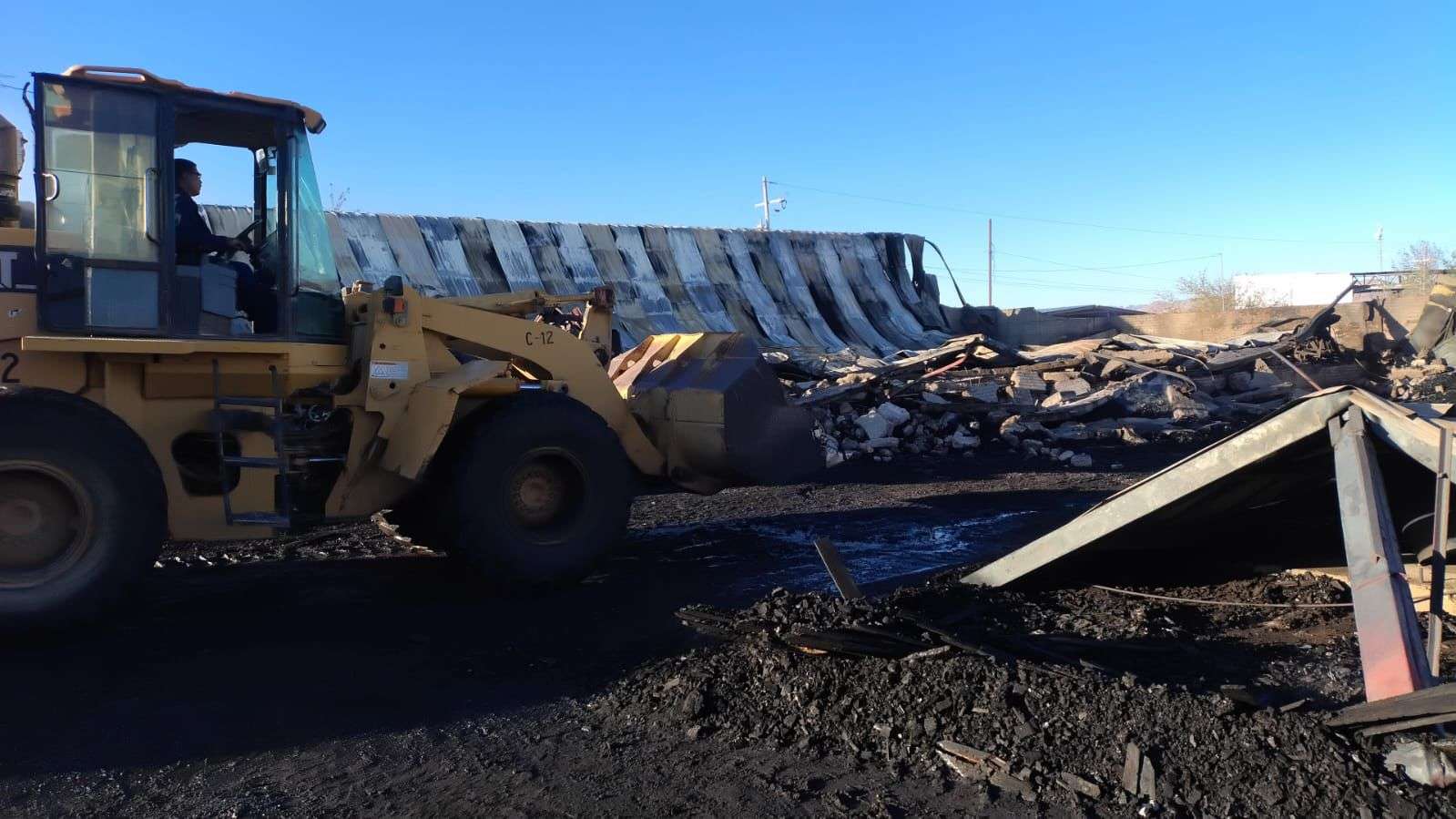 Chihuahua. - Elementos del H. Cuerpo de Bomberos, realizaron labores de remoción y retiro de material al interior de una tarimera, donde la noche del viernes se registró un incendio al norte de la ciudad.