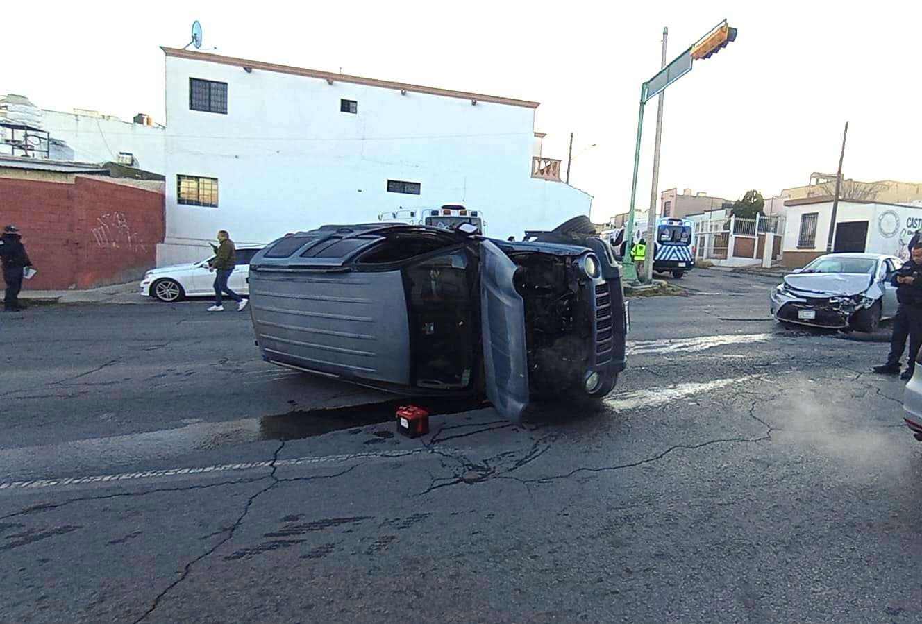 Chihuahua.– Dos mujeres resultaron lesionadas tras un aparatoso choque con volcadura registrado sobre la avenida José María Iglesias, en el cruce con Antonio Labastida, en la colonia Lomas Vallarta.
