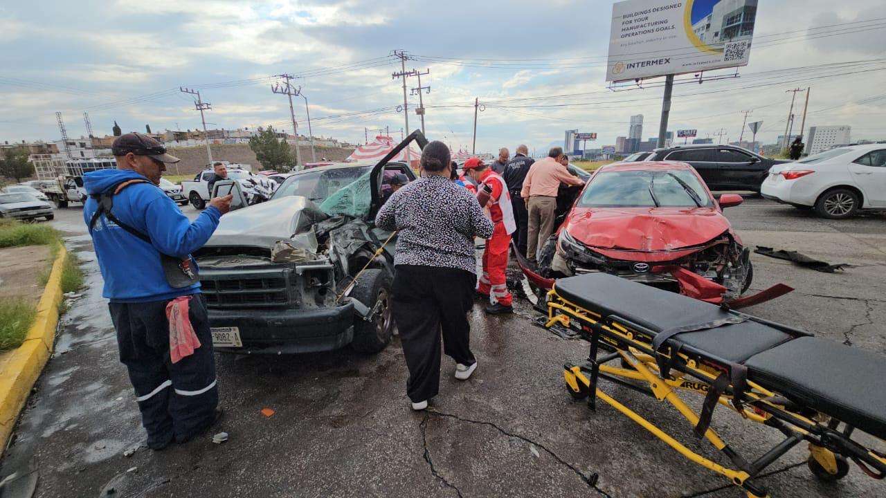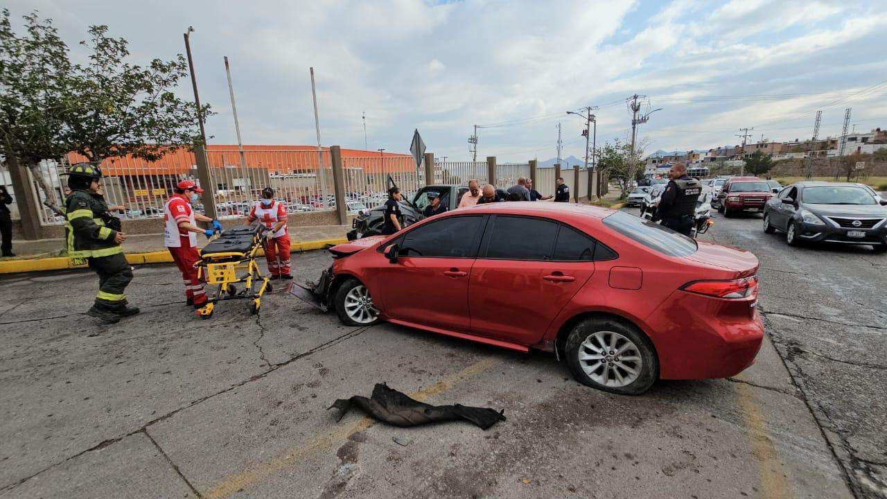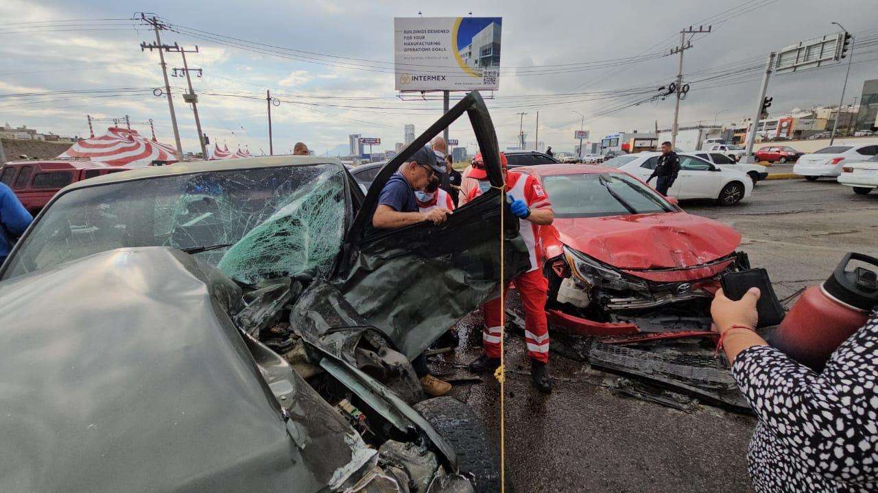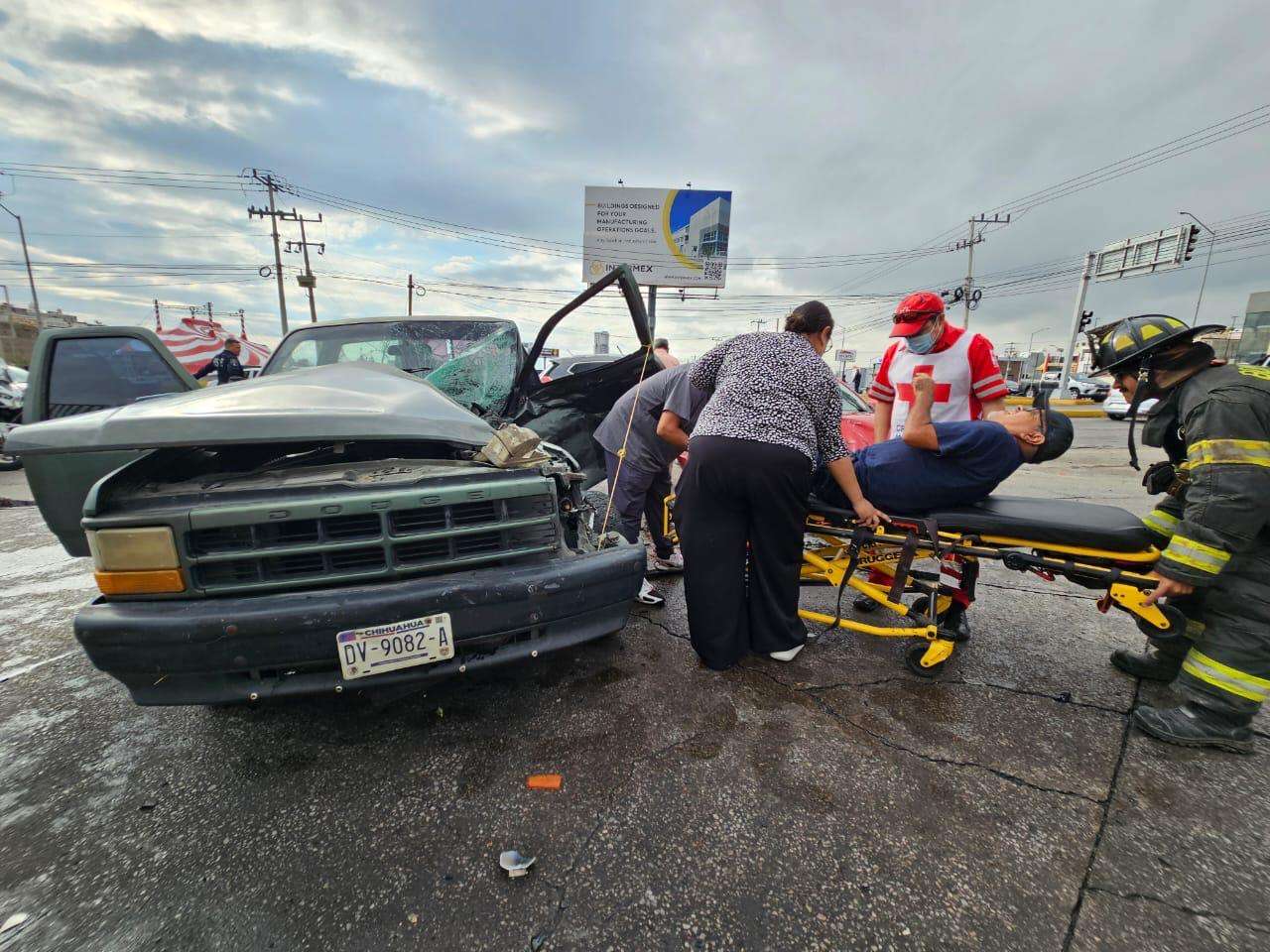 Chihuahua.- Un conductor de la tercera edad resultó lesionado de consideración luego de que su camioneta, una Dodge Dakota, fuera impactada violentamente por un automóvil Toyota Corolla en el cruce de la avenida Juan Escutia con la lateral del Periférico de la Juventud.