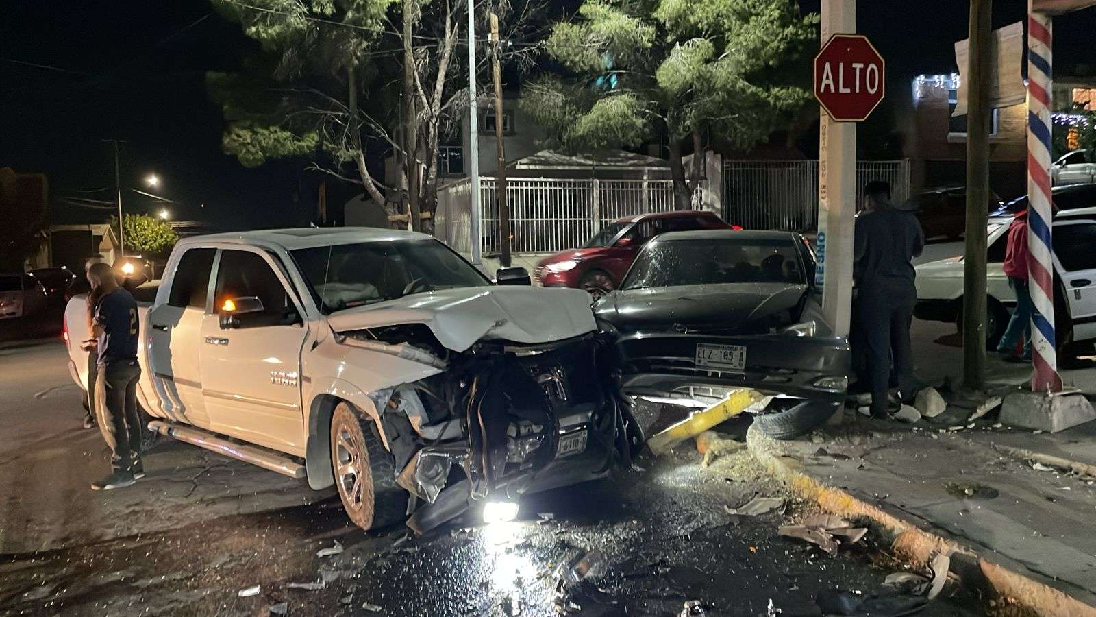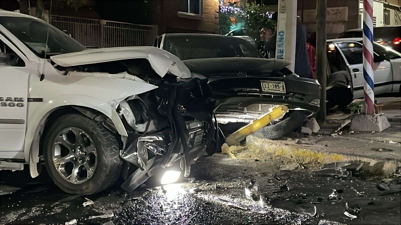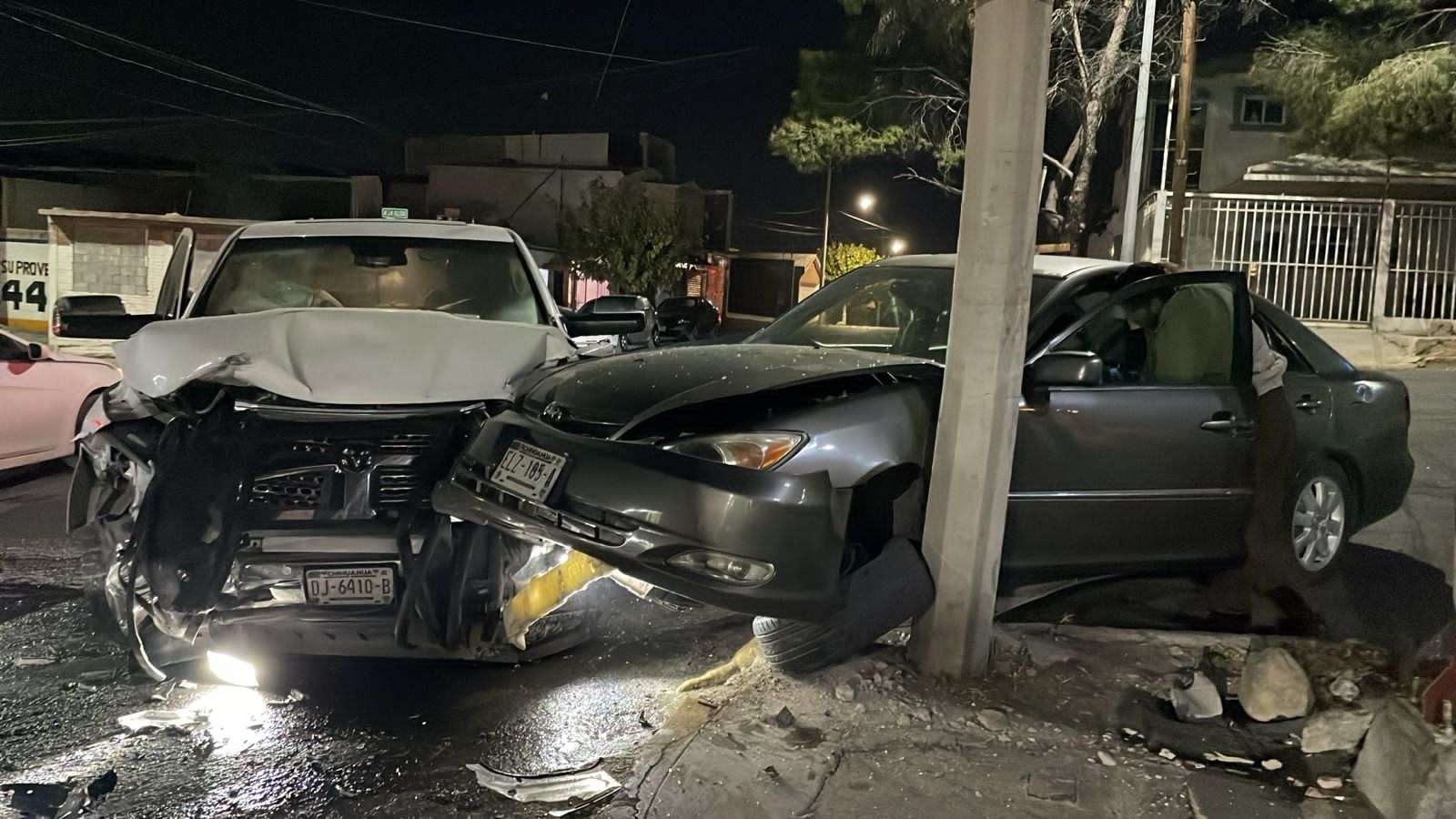 Tras la colisión, el Toyota Camry salió proyectado y terminó estrellándose contra un poste. La conductora del sedán resultó lesionada, al igual que un hombre que viajaba como pasajero en la pickup RAM.