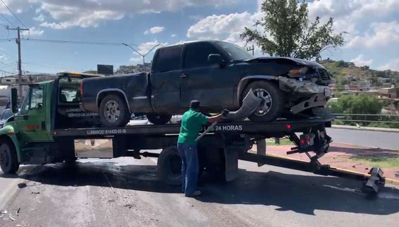 El incidente ocurrió cuando el conductor de una camioneta GMC Sierra de color verde, que circulaba de norte a sur, perdió el control de la unidad a la altura de la calle Justiniani, provocando una carambola que involucró a tres vehículos y dejó a una mujer lesionada.
