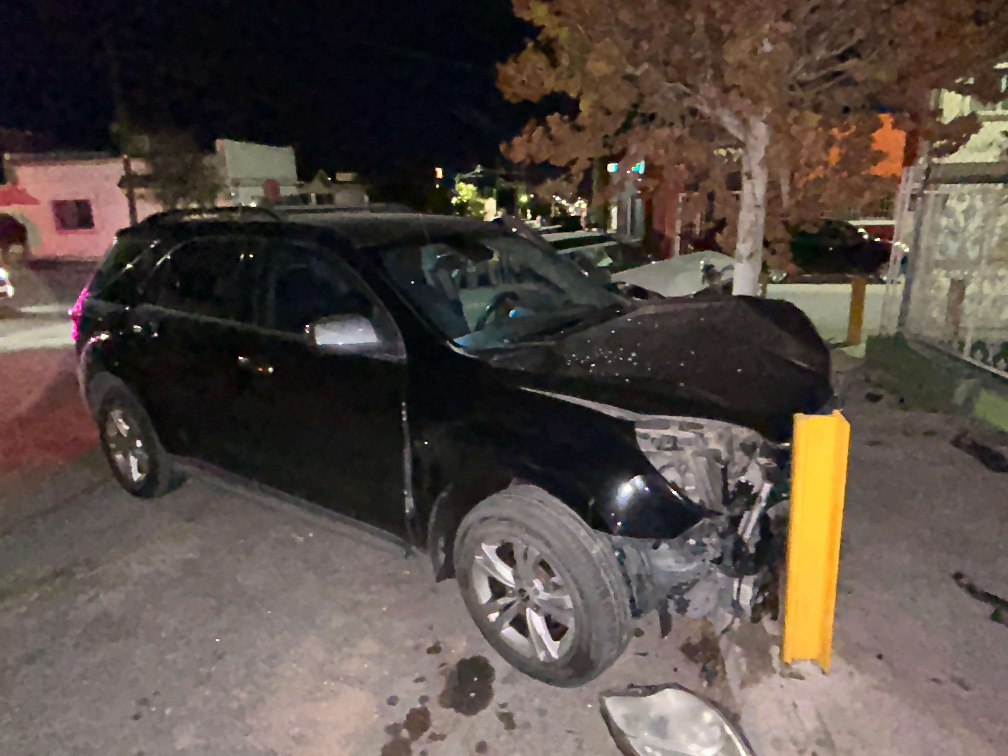 Esta maniobra provocó que fuera impactado en un costado por el conductor de una camioneta Chevrolet Equinox de color negro, que transitaba con preferencia de paso sobre la calle González Cosío.