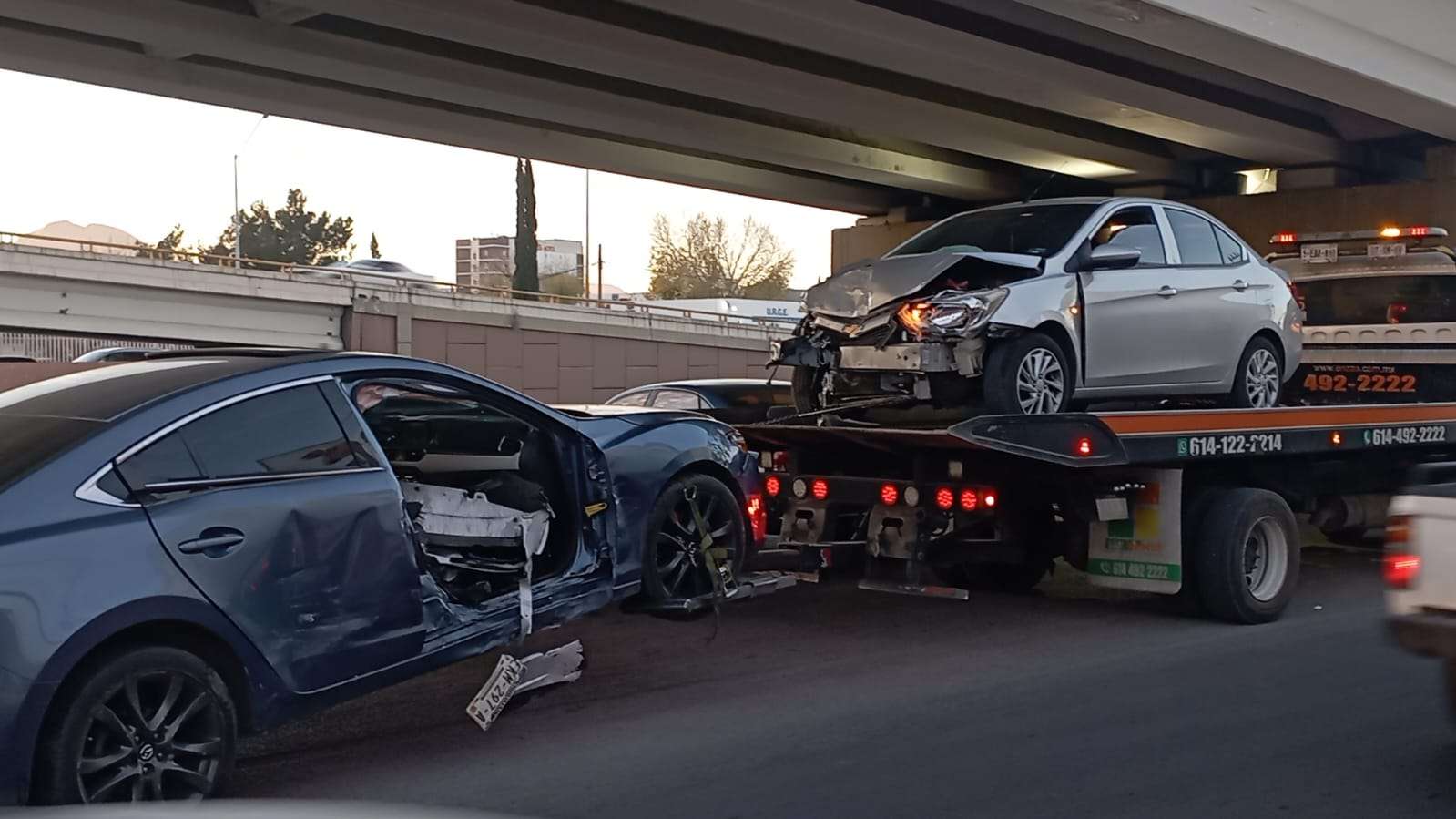 Chihuahua.- Un accidente vial se registró sobre la avenida Pacheco, cuando un vehículo Mazda 6, que circulaba de sur a norte, omitió su alto al llegar al Canal Teófilo Borunda para dar vuelta a la izquierda.