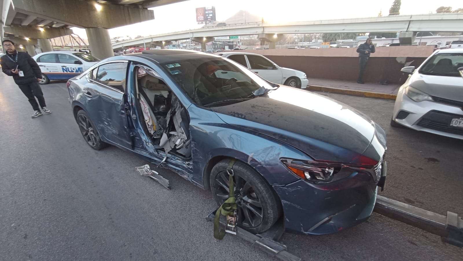 El fuerte choque dejó al acompañante del Mazda 6 atrapado dentro del vehículo, por lo que fue rescatado por Bomberos y paramédicos, quienes posteriormente lo trasladaron a un hospital para recibir atención médica.