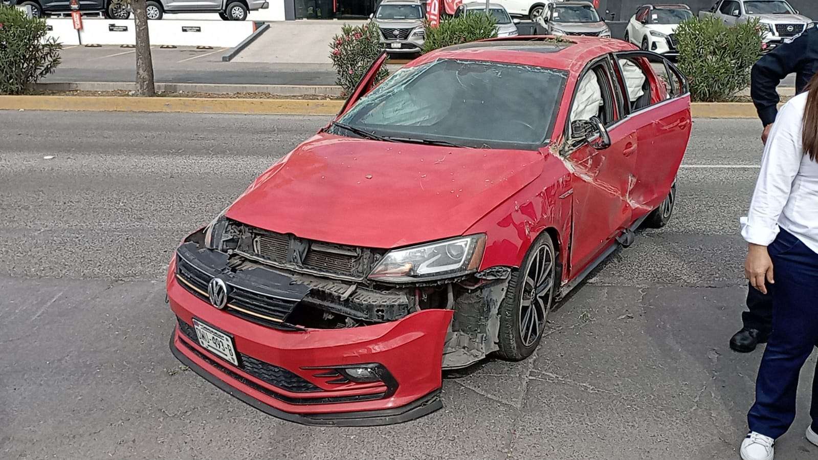 Tras el fuerte impacto, el automóvil Volkswagen salió proyectado hacia el camellón central, donde chocó contra varios arbustos y terminó en sentido contrario, mientras que la camioneta involucrada registró daños de consideración.