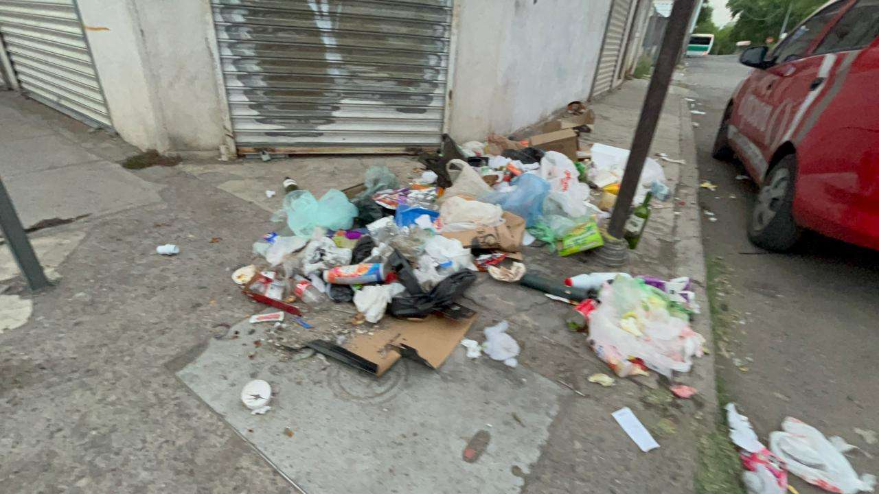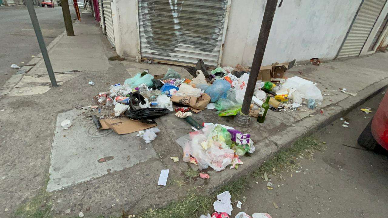 Uno de estos días hasta una lavadora repleta de desechos se encontraba donde esta mañana, se encontraba un montón de basura regada por toda la banqueta en el cruce de las calles Angel Trias y calle 5a en el centro de la ciudad.