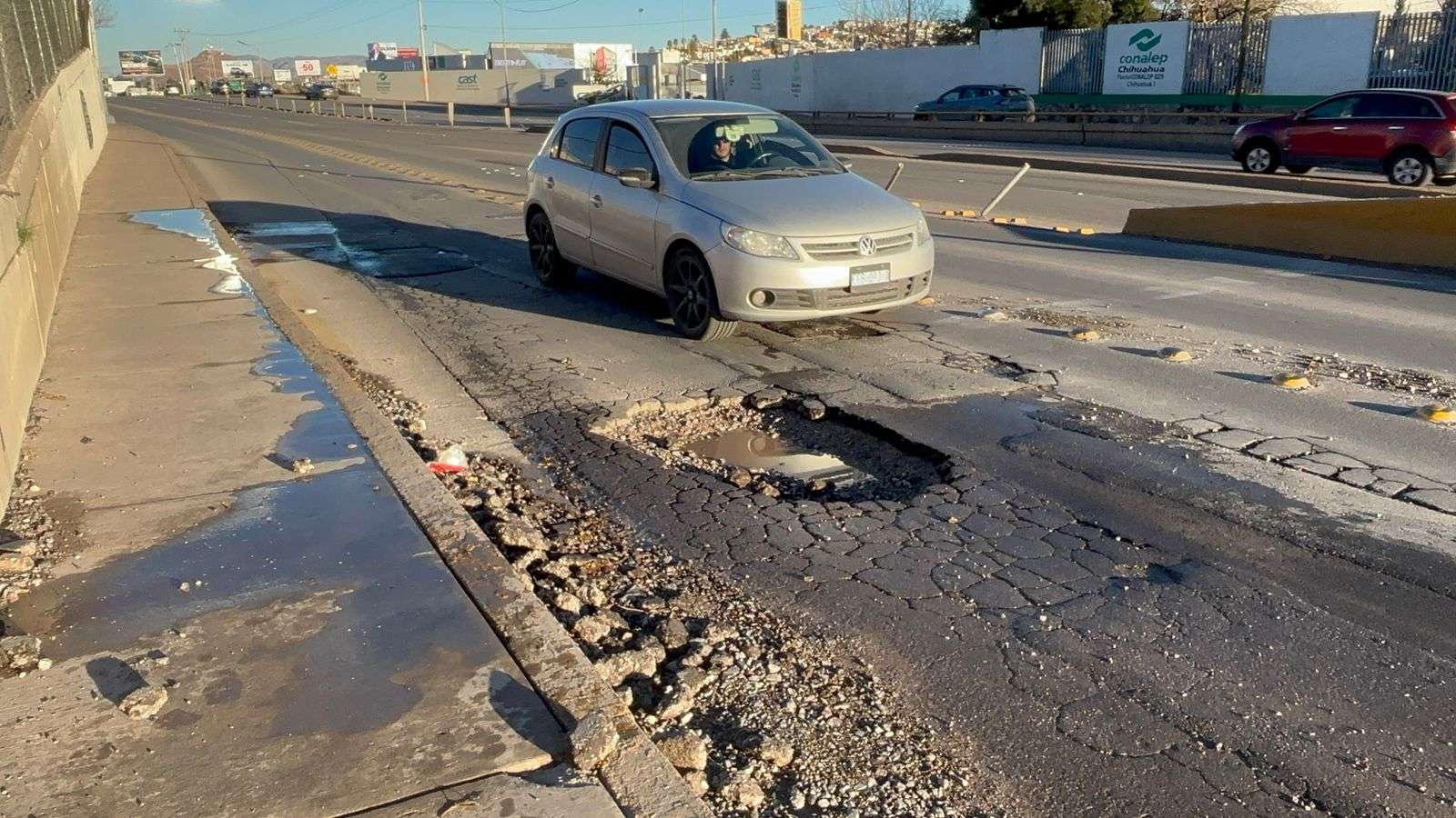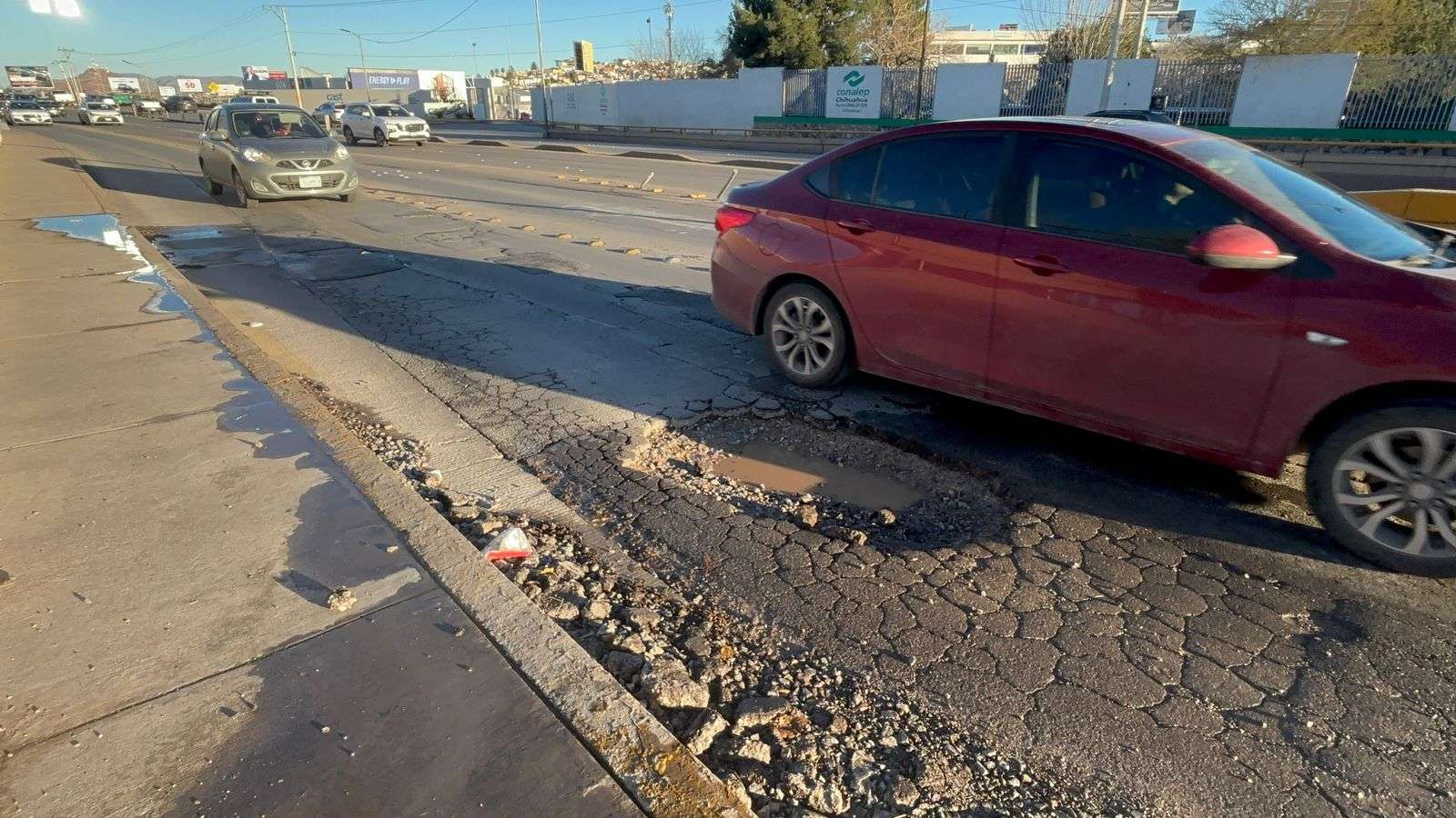 Chihuahua, Chih.– Conductores reportaron un enorme bache en la avenida La Cantera, en sentido de este a oeste, antes de llegar al periférico de la Juventud, justo frente a las instalaciones del Conalep II, pues señalan que representa un riesgo latente.