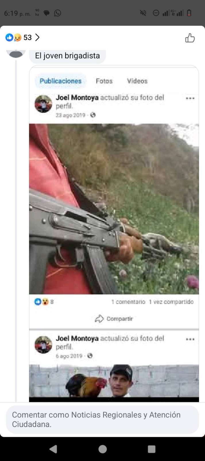 Mientras el señalado como Joel Montoya Palma., " El brigadista" ahora apodado sigue protegido por el Ejército y Guardia Nacional., quién recibió más de 10 impactos de proyectil de arma de fuego .. solo fue”(sic).