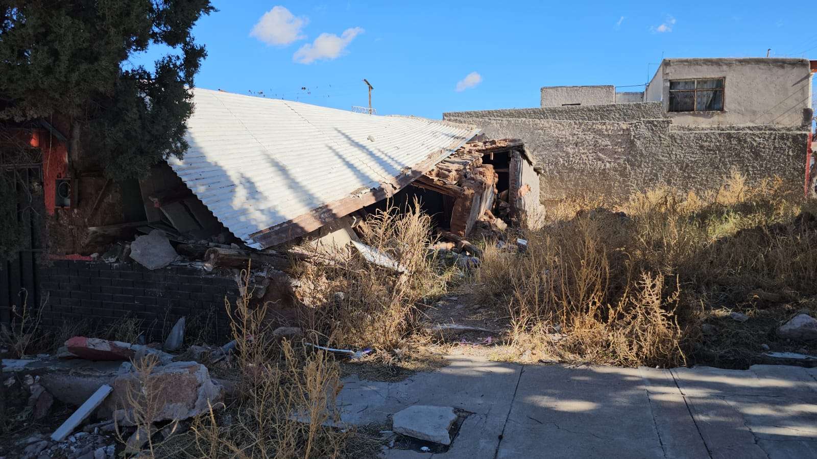 El terreno donde se ubica la propiedad está en litigio. Según los vecinos, el propietario anterior derribó la casa con la intención de reconstruirla, pero tras excavar para los cimientos, las lluvias provocaron el colapso de la barda del domicilio contiguo, atrapando a una mujer adulta mayor. Desde entonces, el caso permanece en disputa legal sin que se haya determinado responsabilidad.