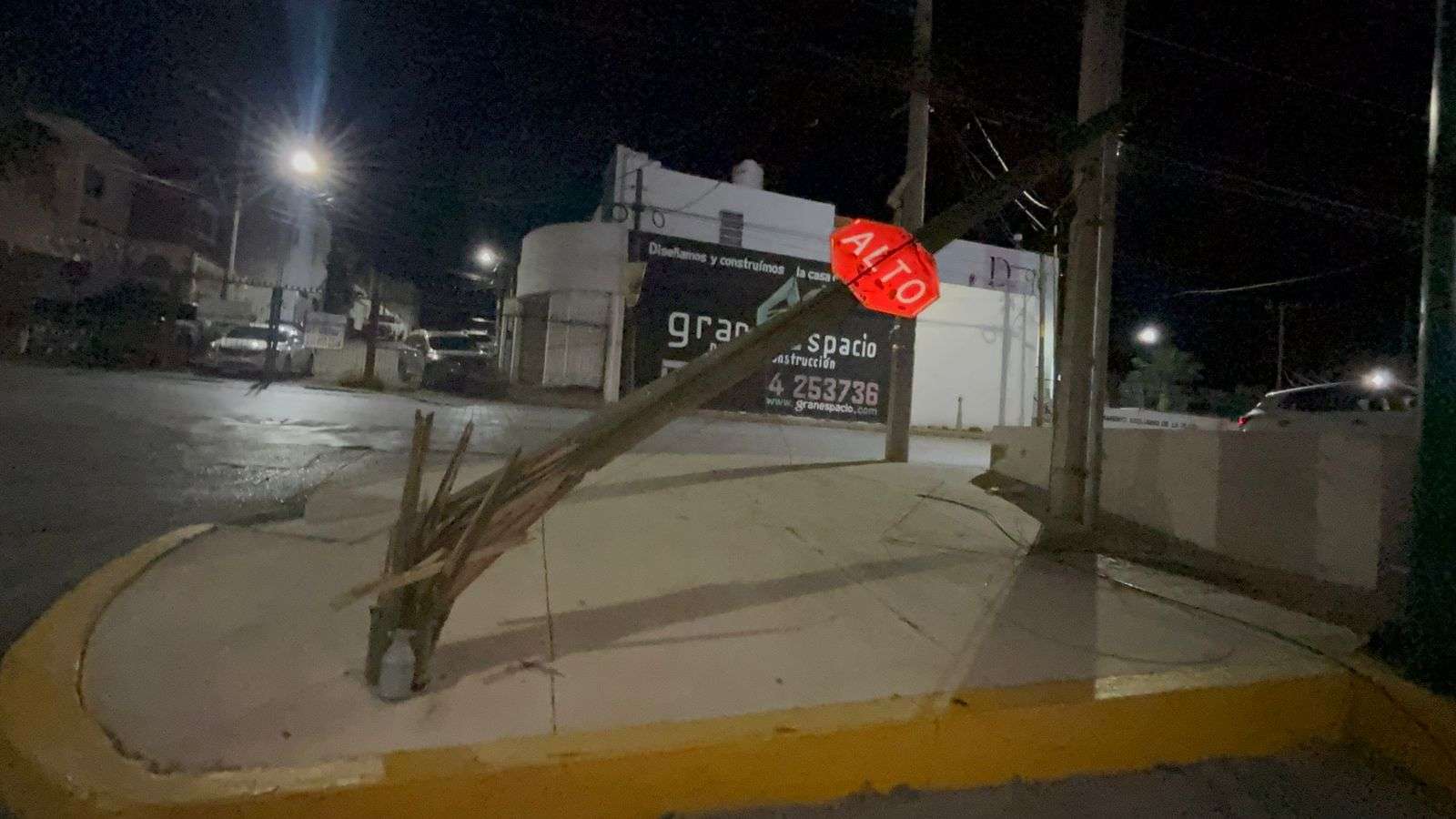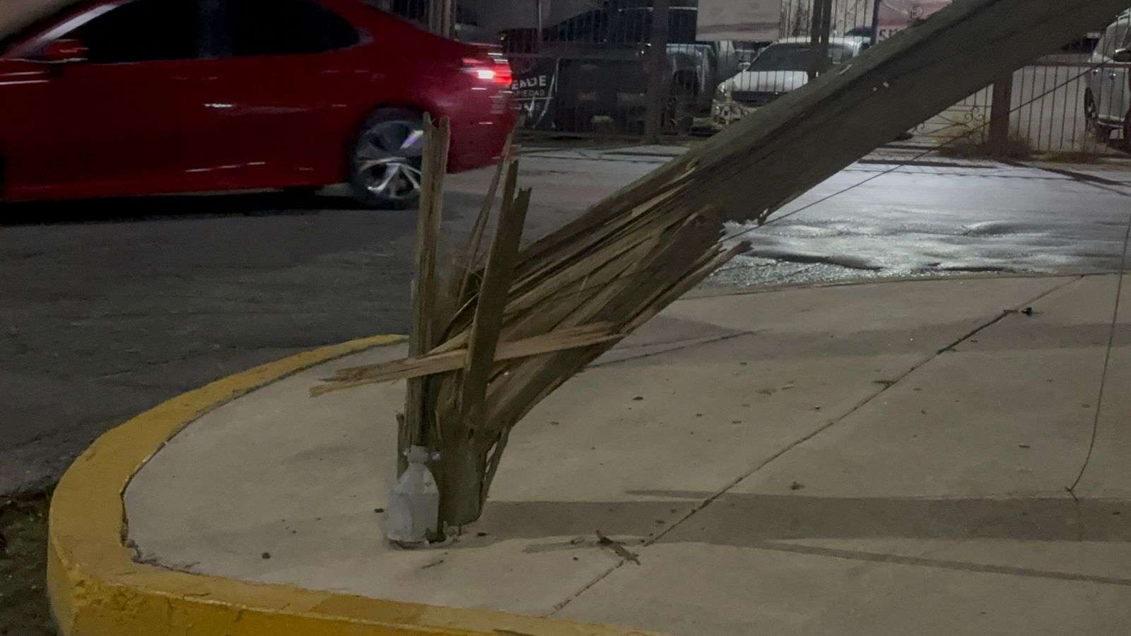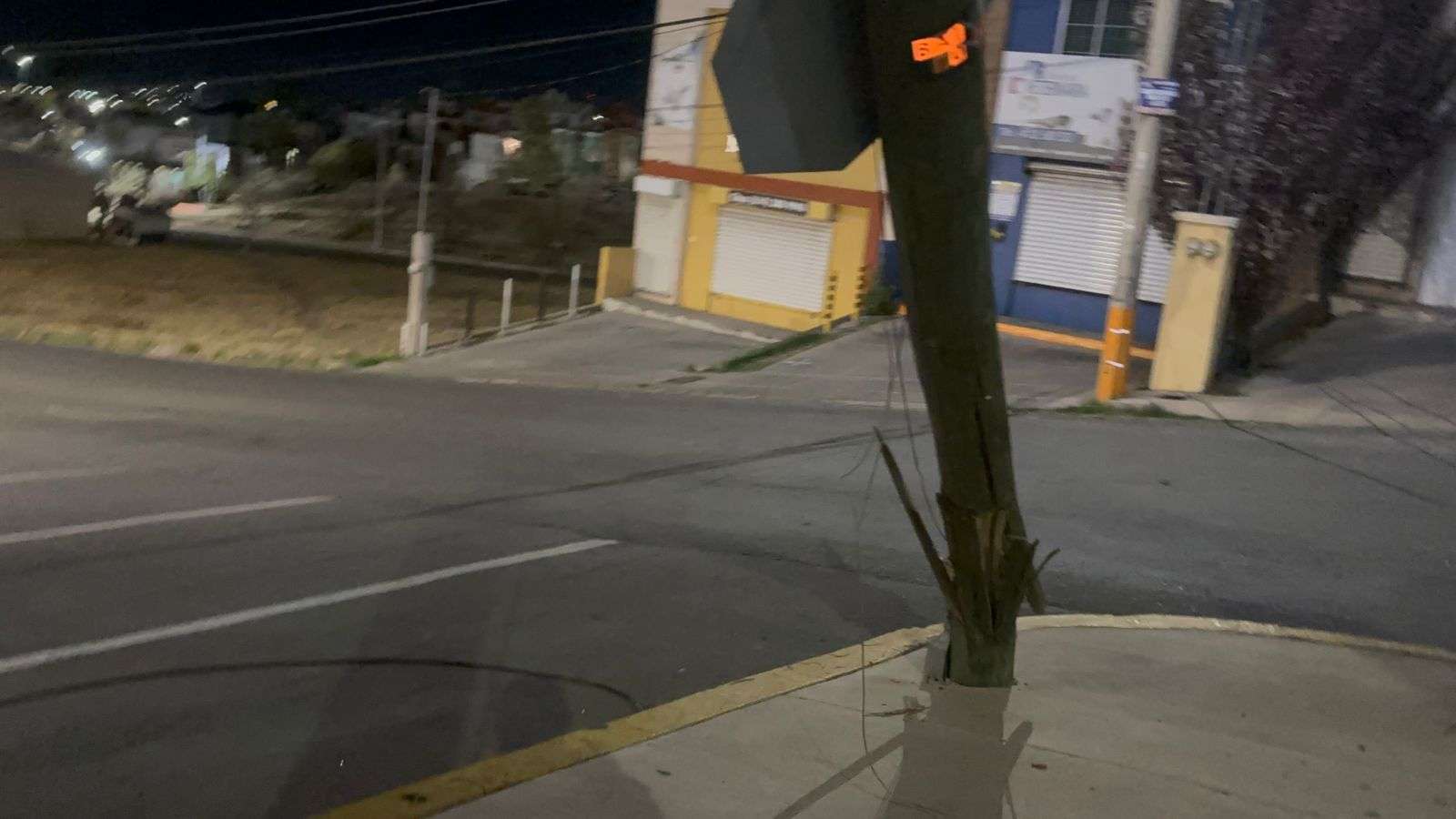 Chihuahua, Chih.- Un accidente vial dejó como saldo cuantiosos daños materiales y el derribo de un poste propiedad de la empresa Teléfonos de México (Telmex).