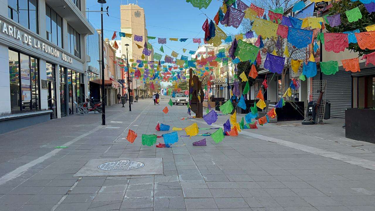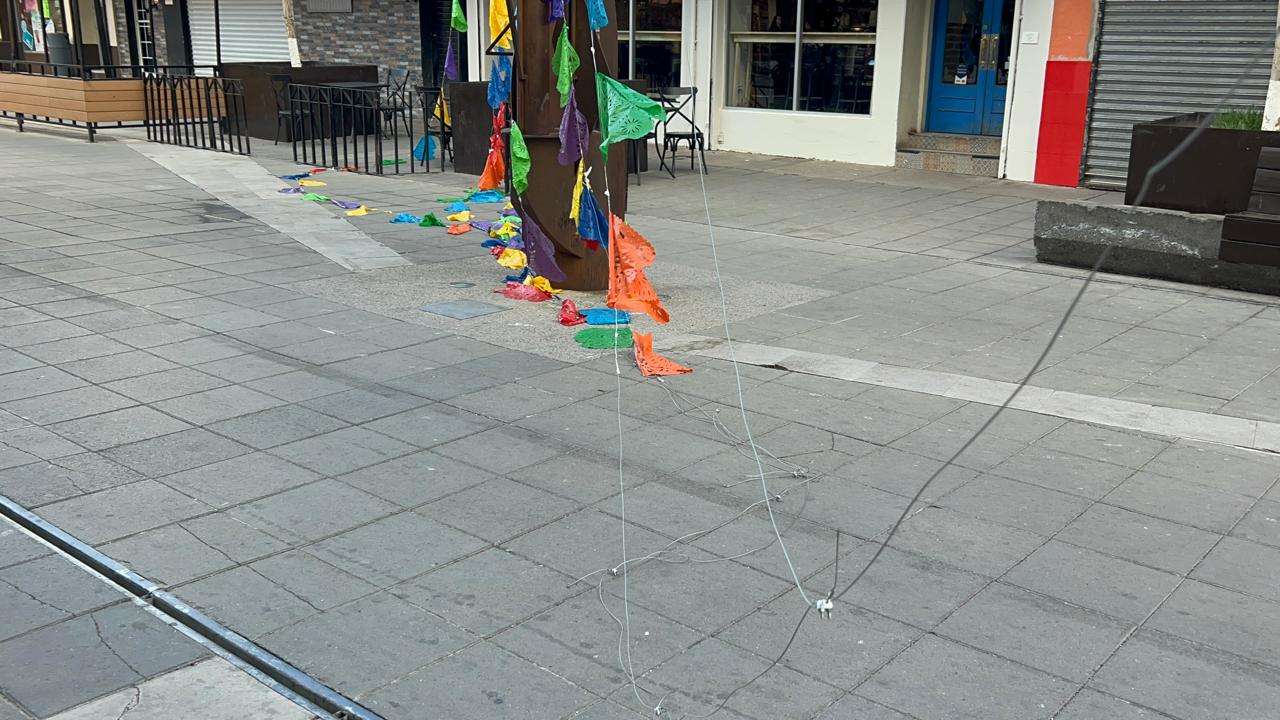 Fue alrededor del mediodía de ayer cuando iniciaron los fuertes vientos, los cuales derribaron los adornos instalados en la calle Victoria.
