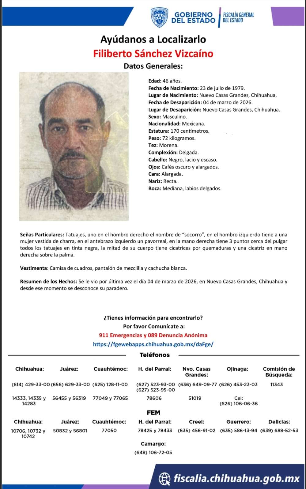 Chihuahua. – Tres hombres y una mujer fueron reportados desaparecidos ayer en Nuevo Casas Grandes, reportó la Fiscalía General del Estado (FGE).