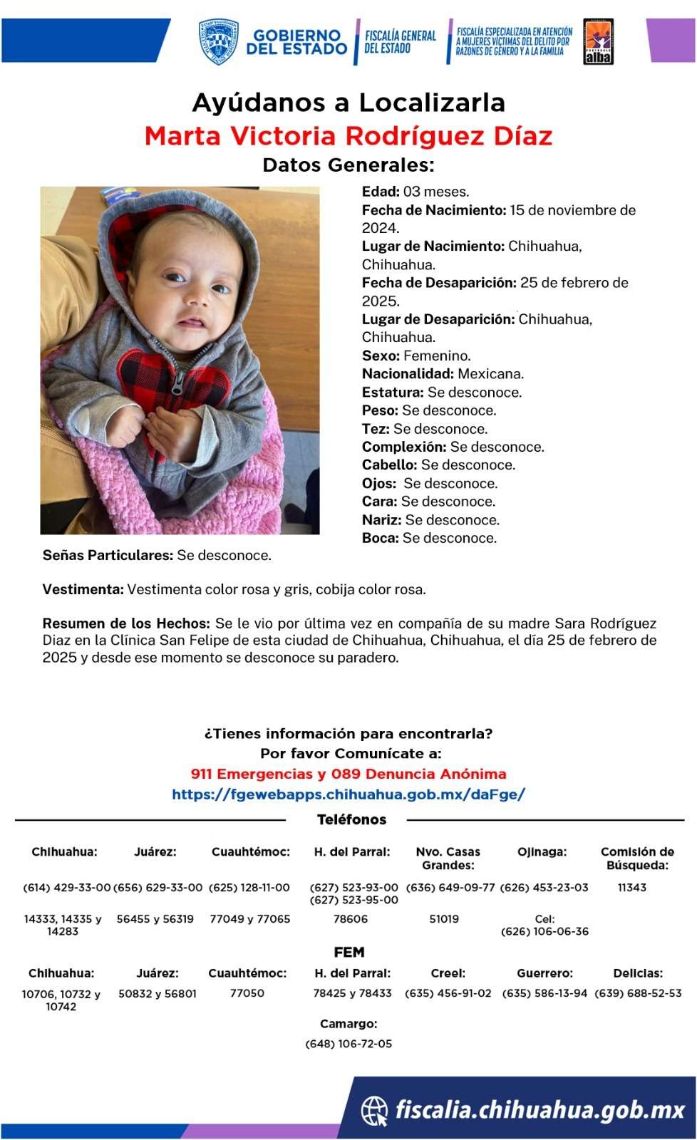 Las desaparecidas son la adolescente Sara Rodríguez Díaz, nacida en el estado de Chiapas y su bebé de nombre Marta Victoria Rodríguez Díaz, nacida en esta ciudad.