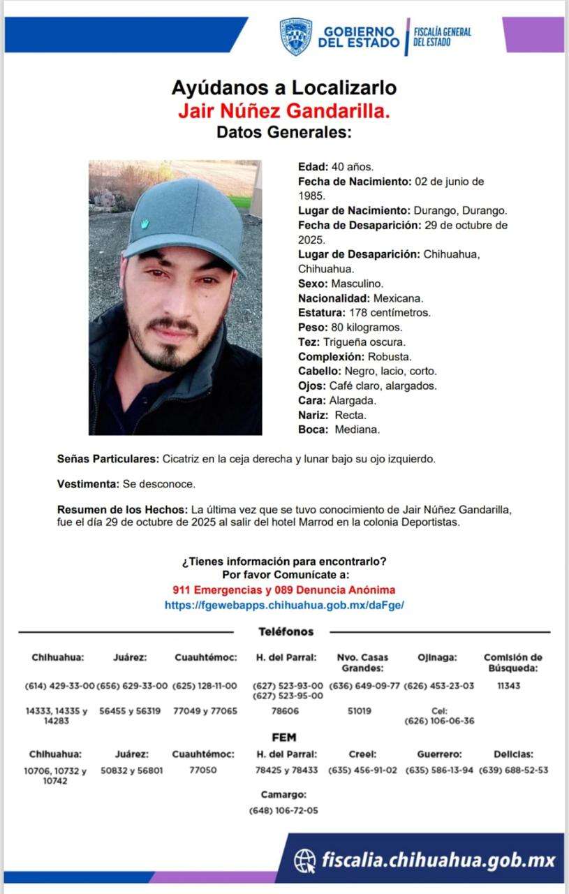 Chihuahua, Chih. – Tres hombres originarios de Durango desaparecieron luego de salir del Hotel Marrod, informó la Fiscalía del Estado.