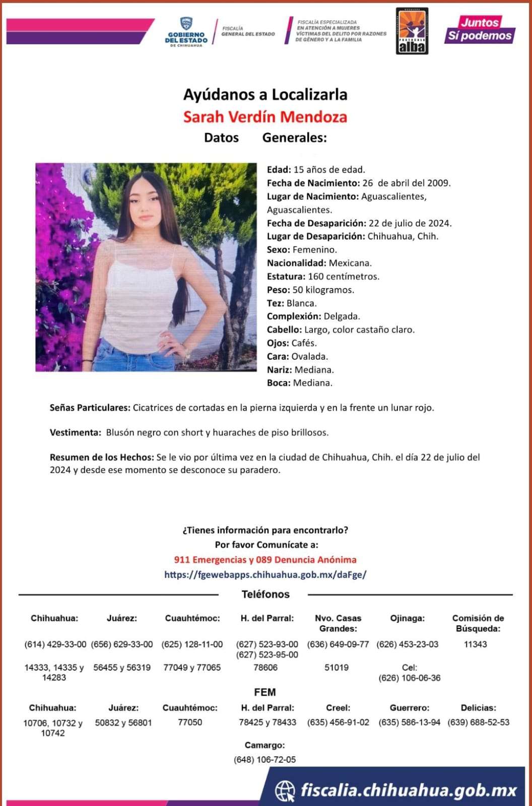 Los familiares han presentado la denuncia correspondiente en la Fiscalía de la Mujer y solicitan la colaboración de la ciudadanía para cualquier información que pueda ayudar a dar con su paradero. Para más información o para reportar pistas, se pueden contactar a los números: 614 272 64 88, 614 510 87 73 o al 614 151 71 20.