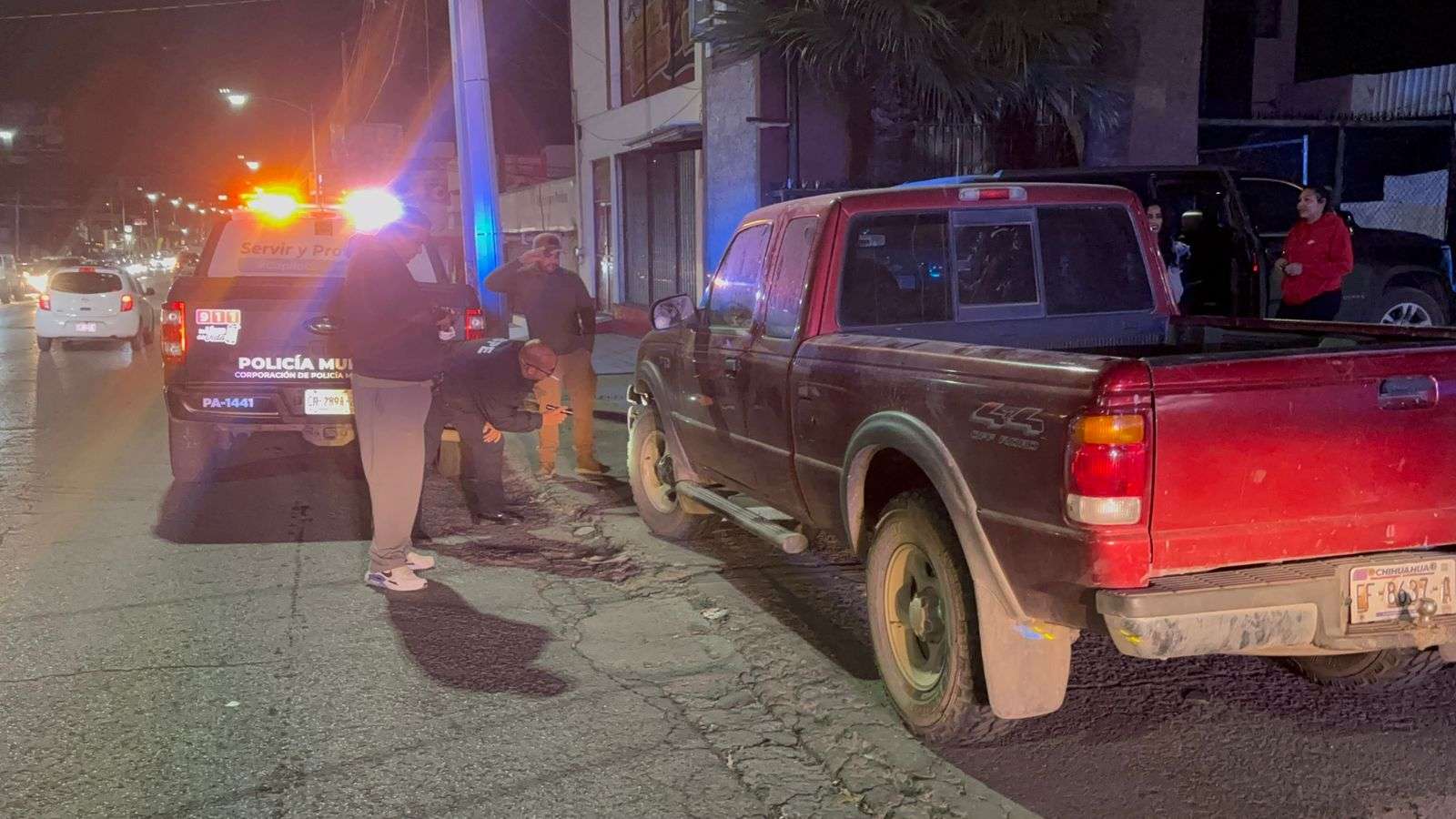 Al lugar acudieron elementos de la Policía Municipal como primeros respondientes. Durante la atención del accidente, dos individuos comenzaron a amenazar al conductor de la Ford Ranger, señalando que eran “malandros”, además de tomar fotografías del vehículo y empujarlo.