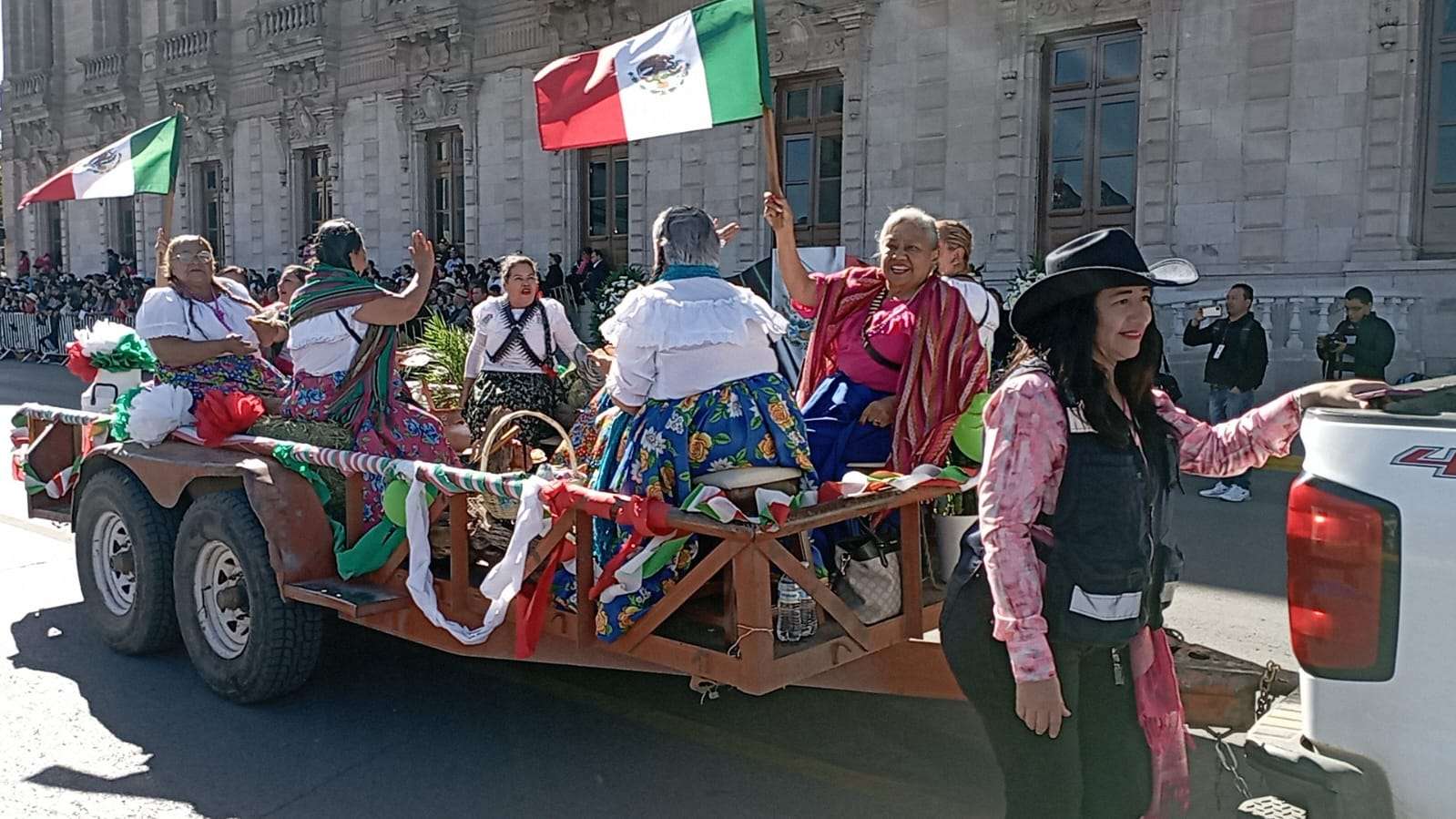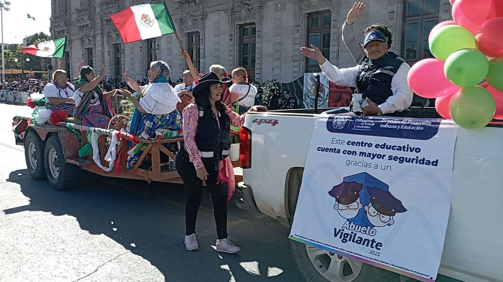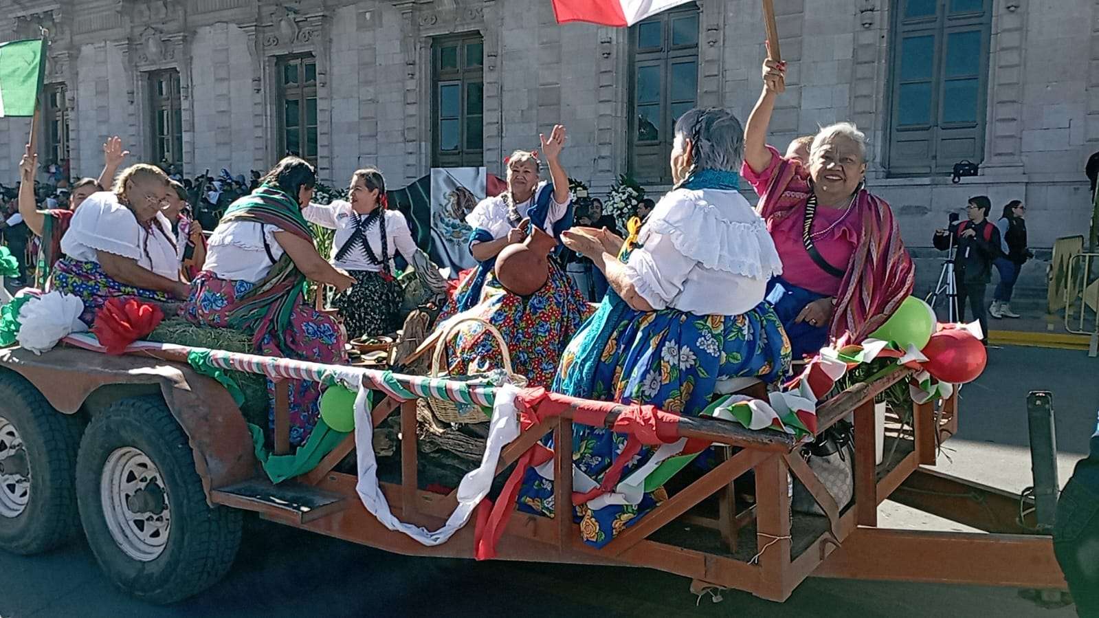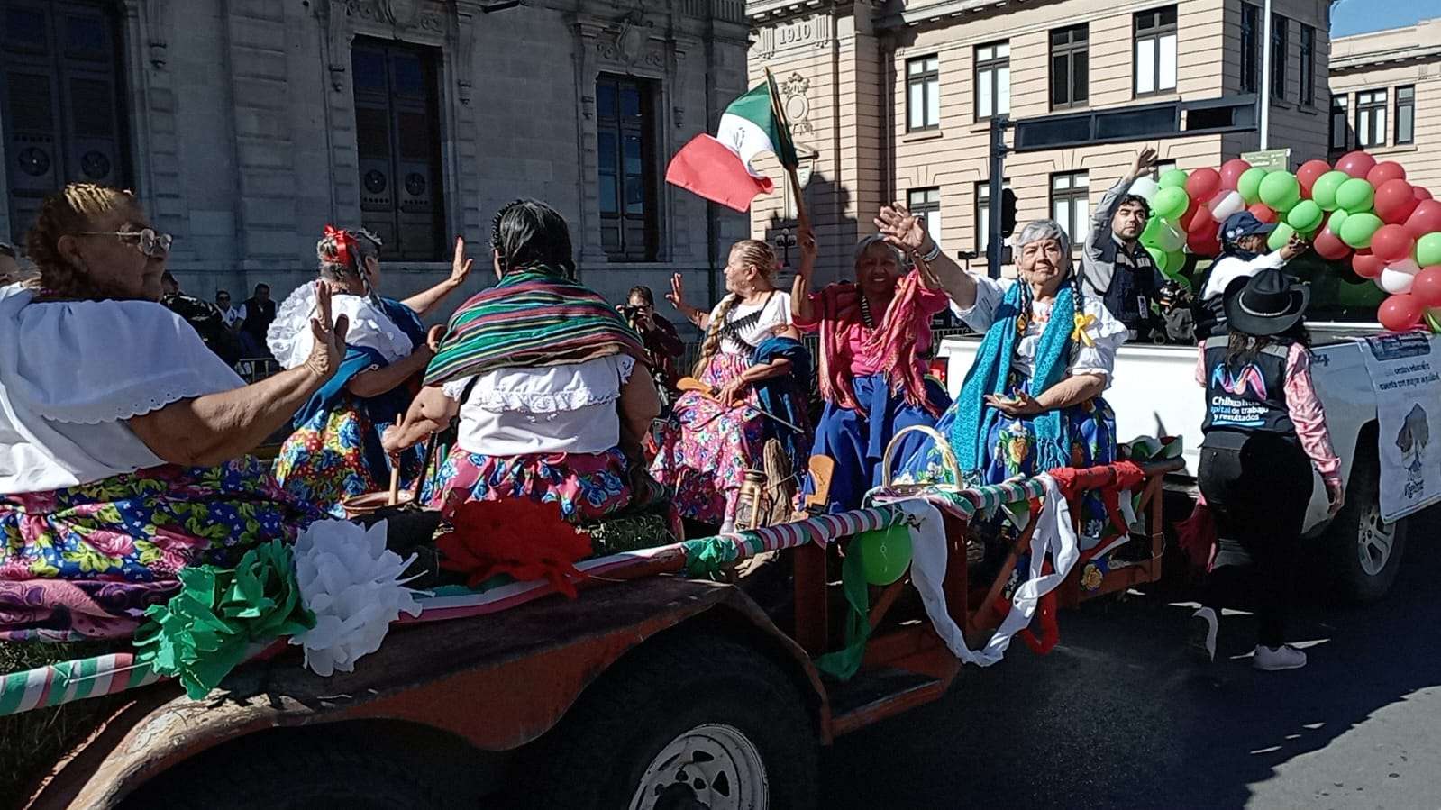 A bordo de su carro alegórico, los abuelitos desfilaron por el centro de la ciudad, capturando la atención y el cariño de la ciudadanía que se congregó para ser parte de este evento histórico.
