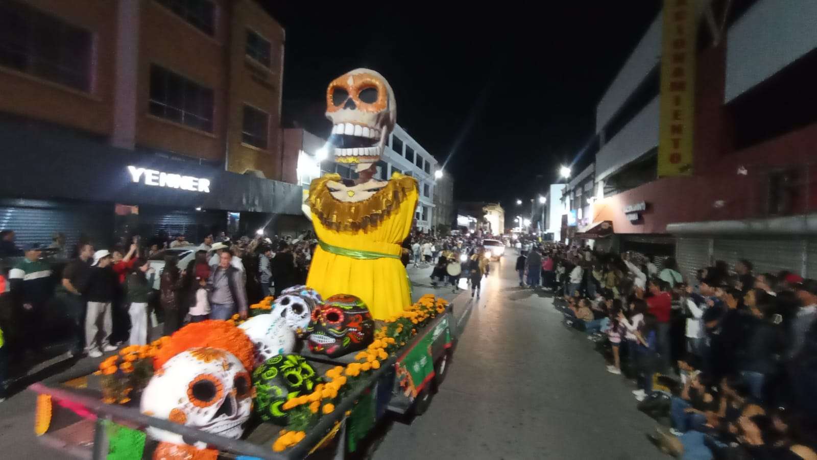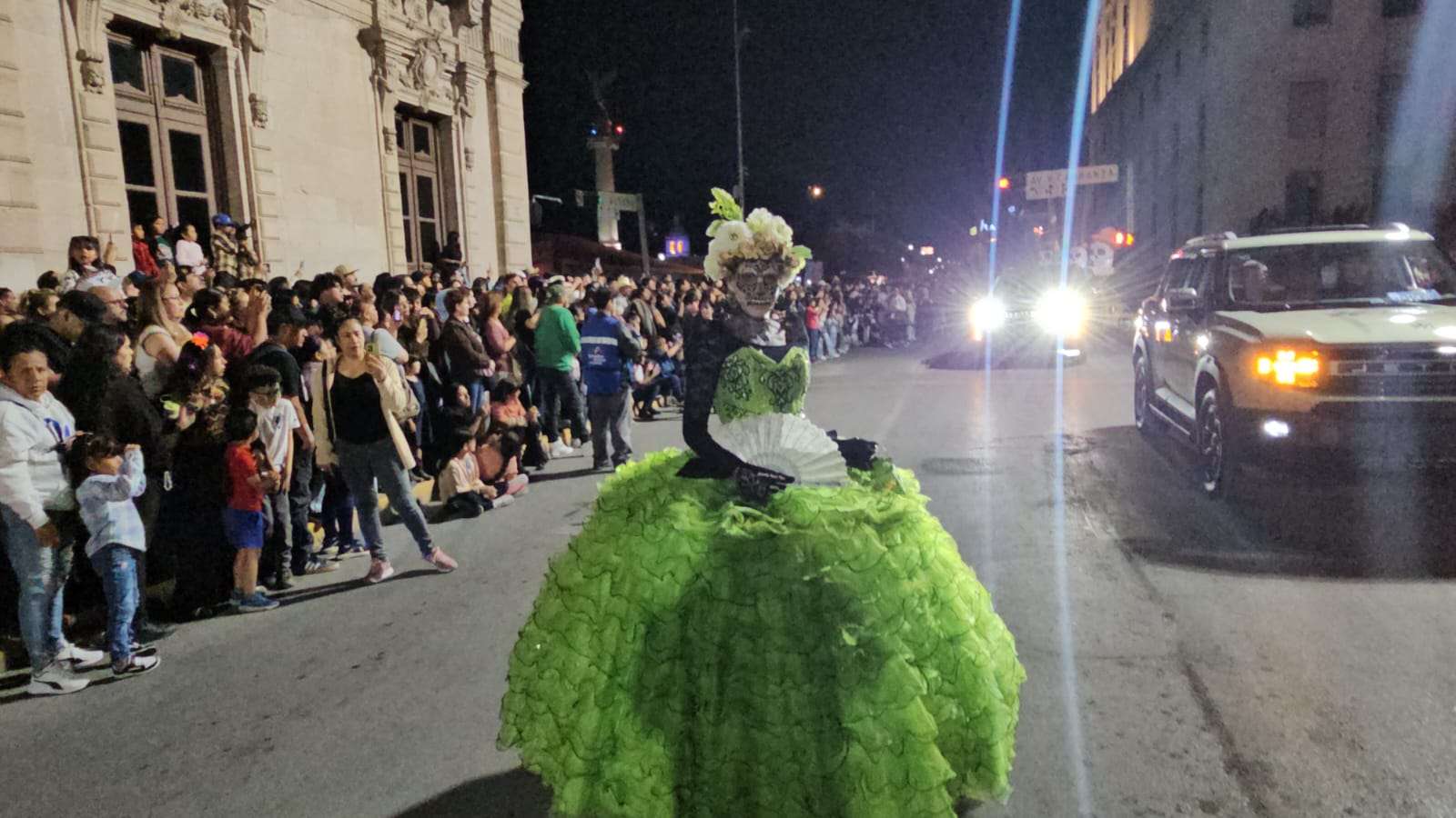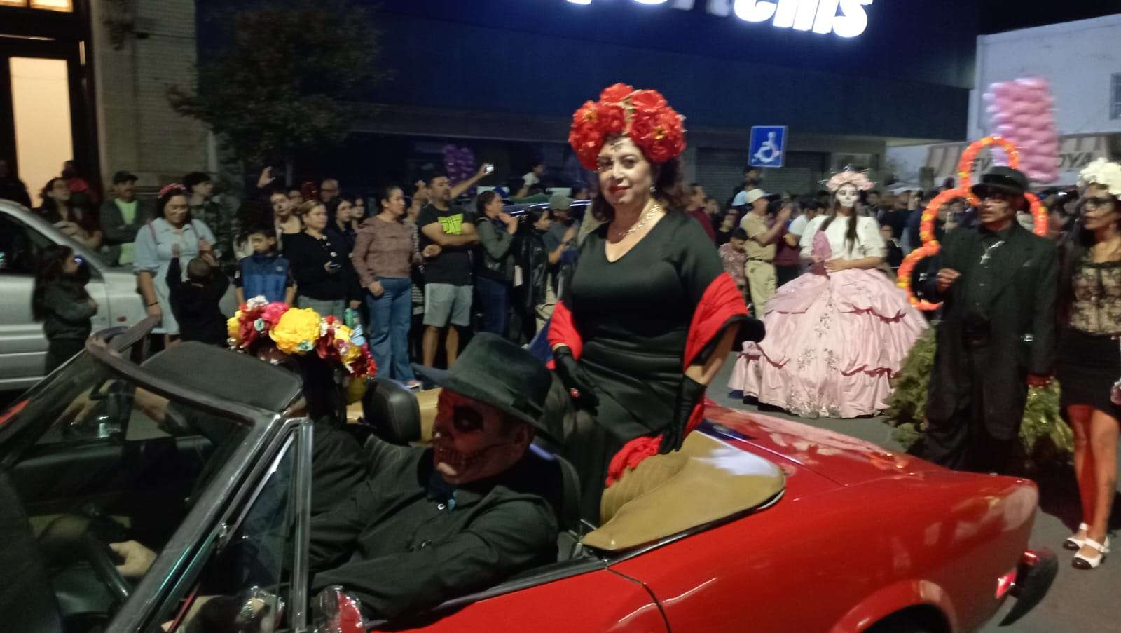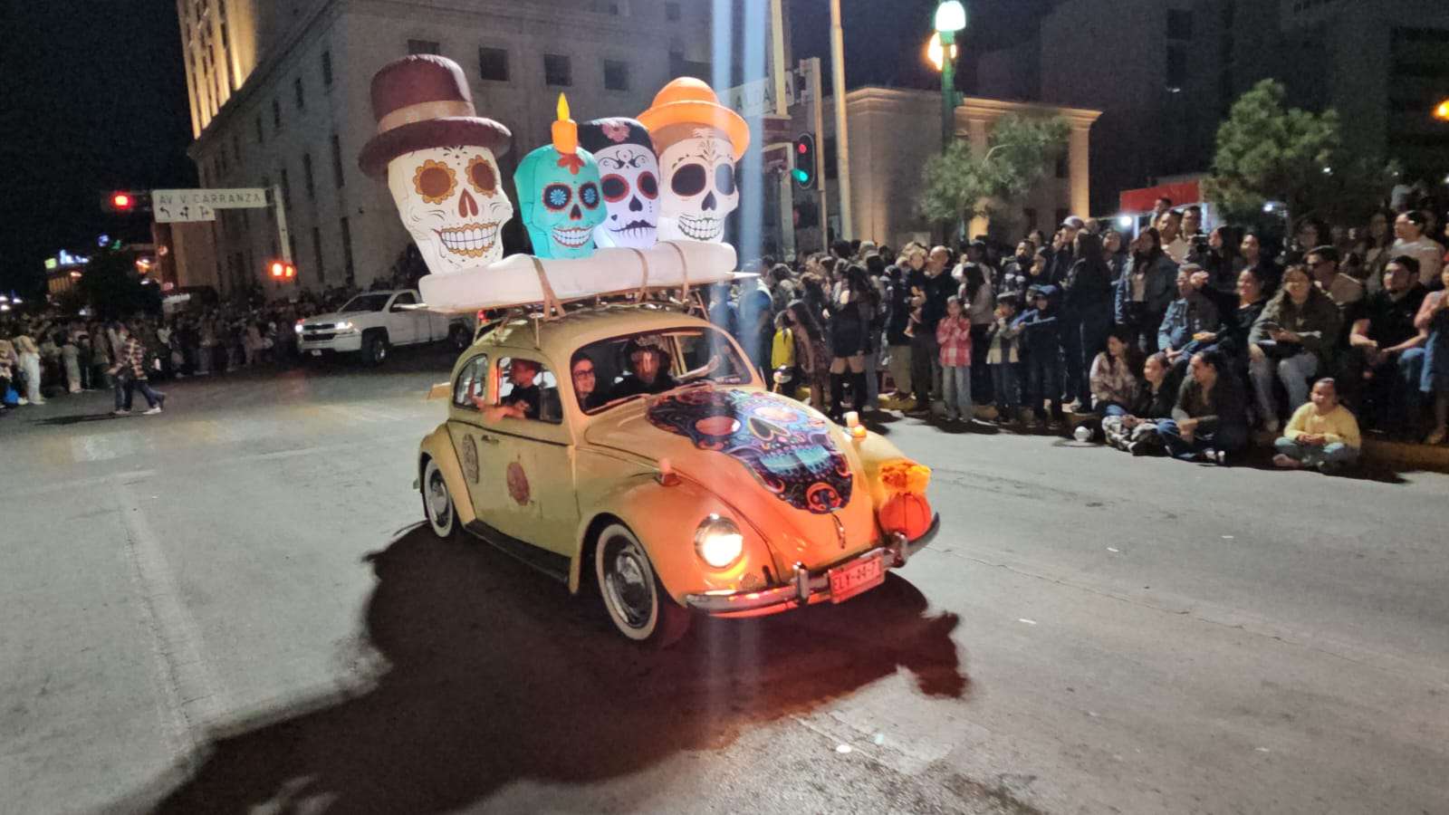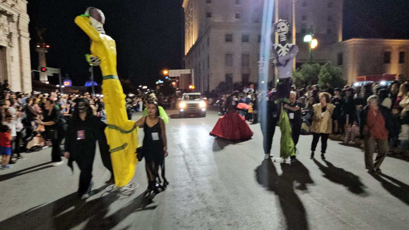 El contingente era acompañado de carros alegóricos, motos y vehículos clásicos adornados por el Día de Muertos.