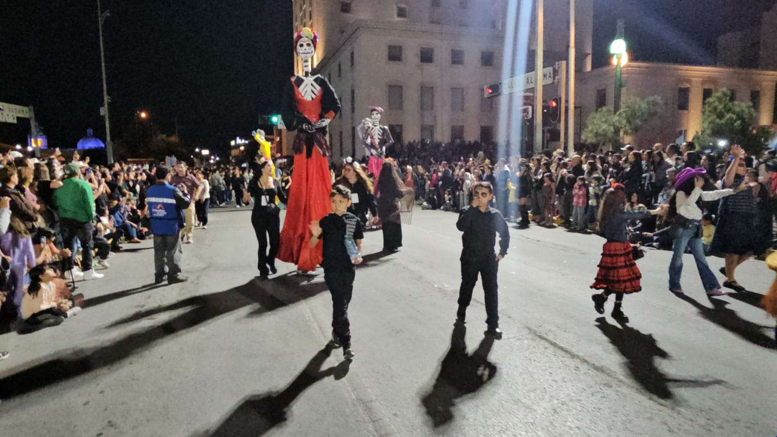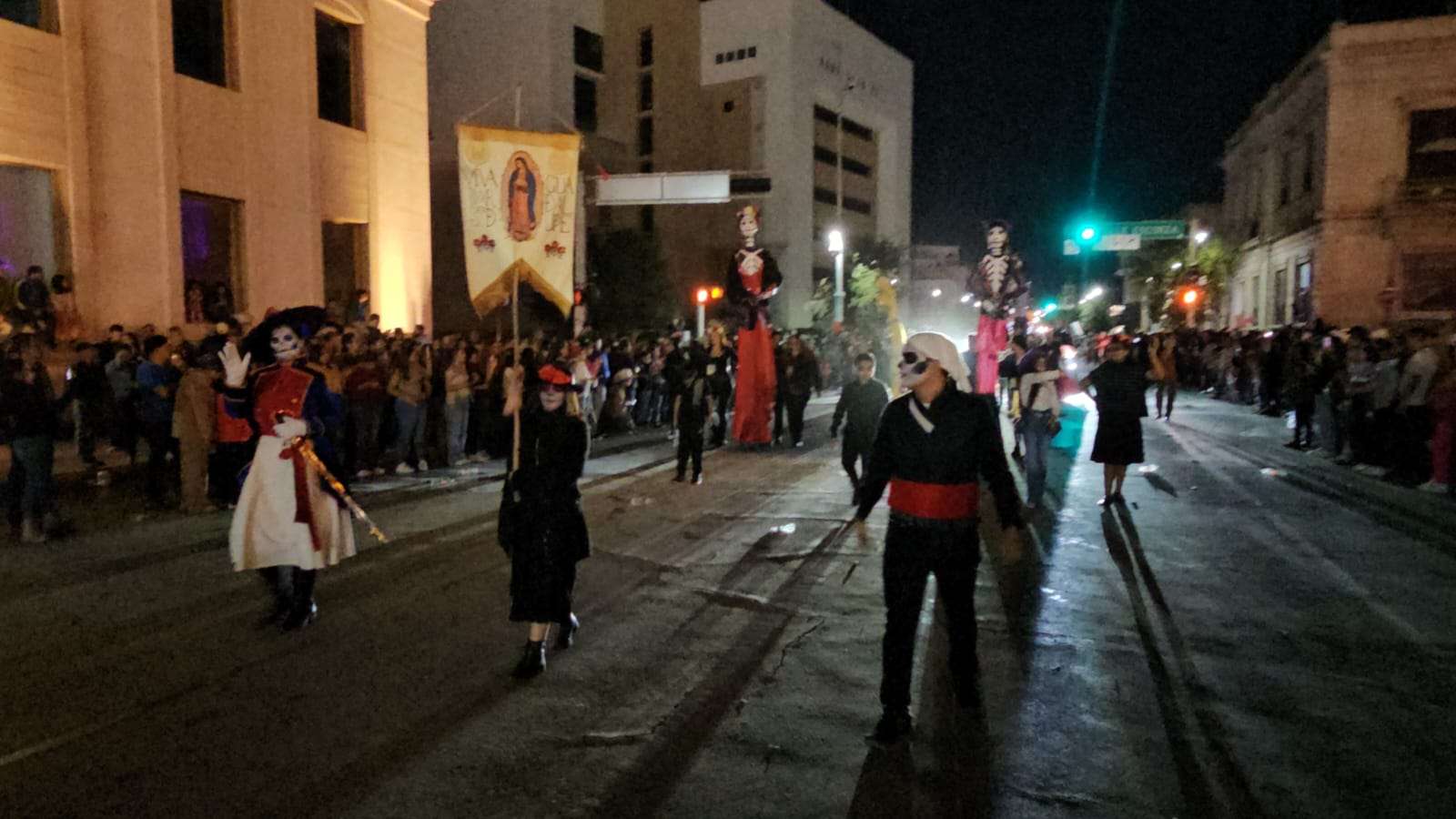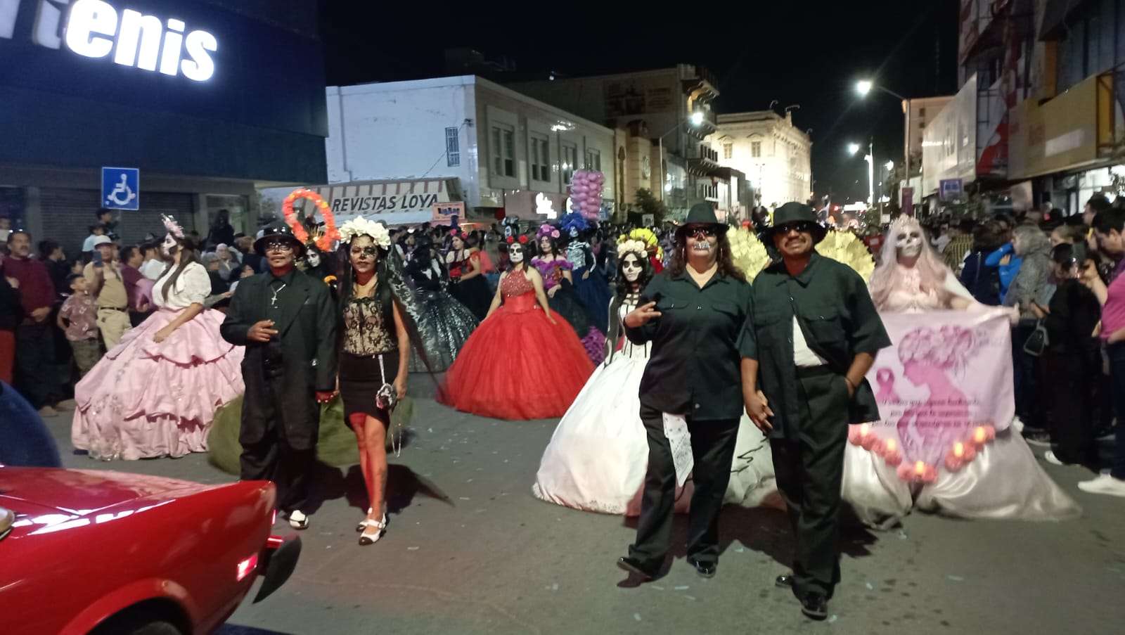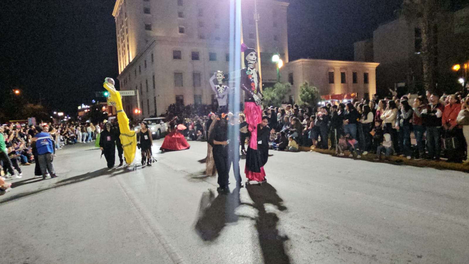 Chihuahua.- Decenas de catrinas y catrines desfilaron esta noche por calles del Centro de la Ciudad rumbo a la Plaza de Armas.