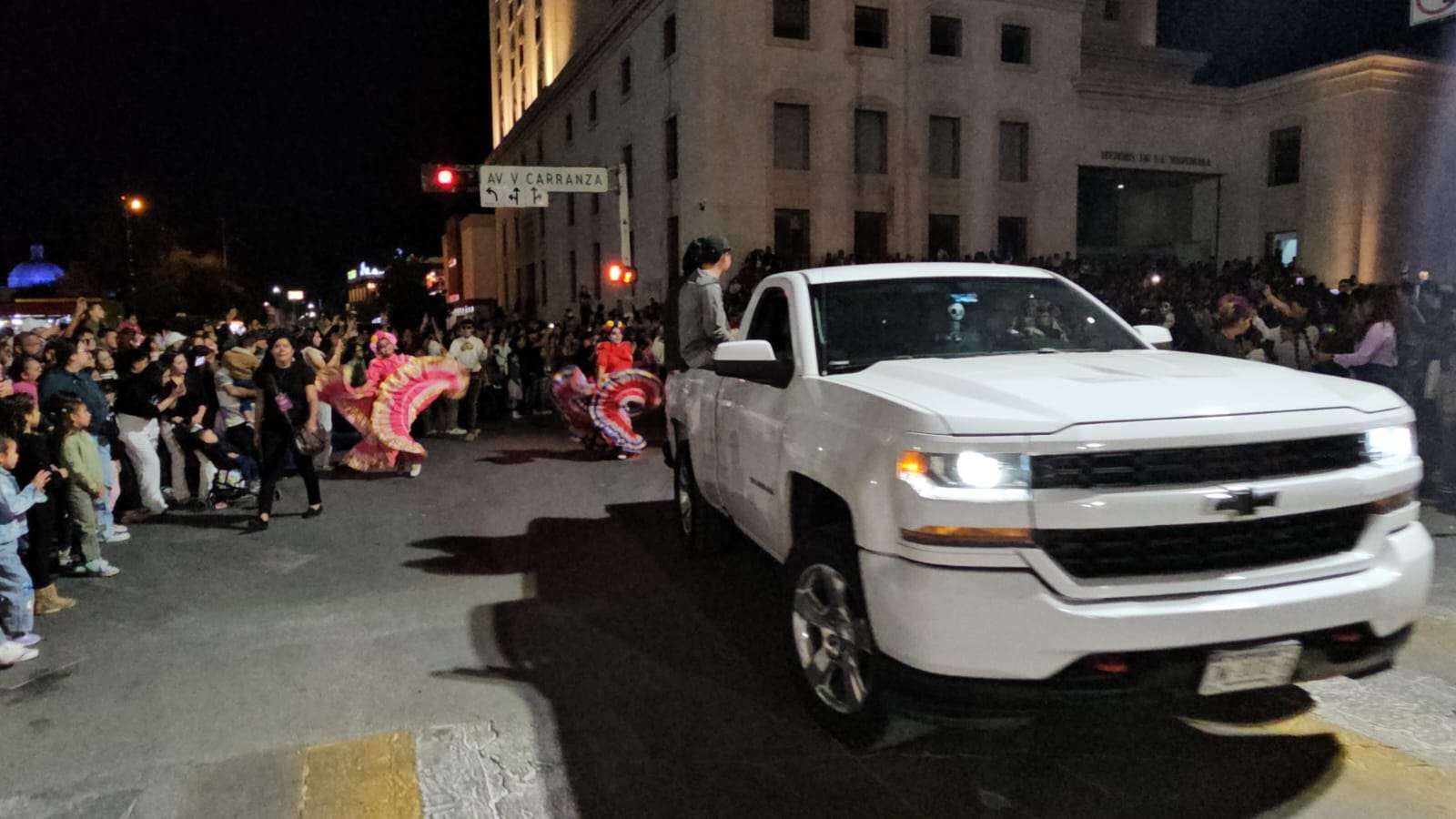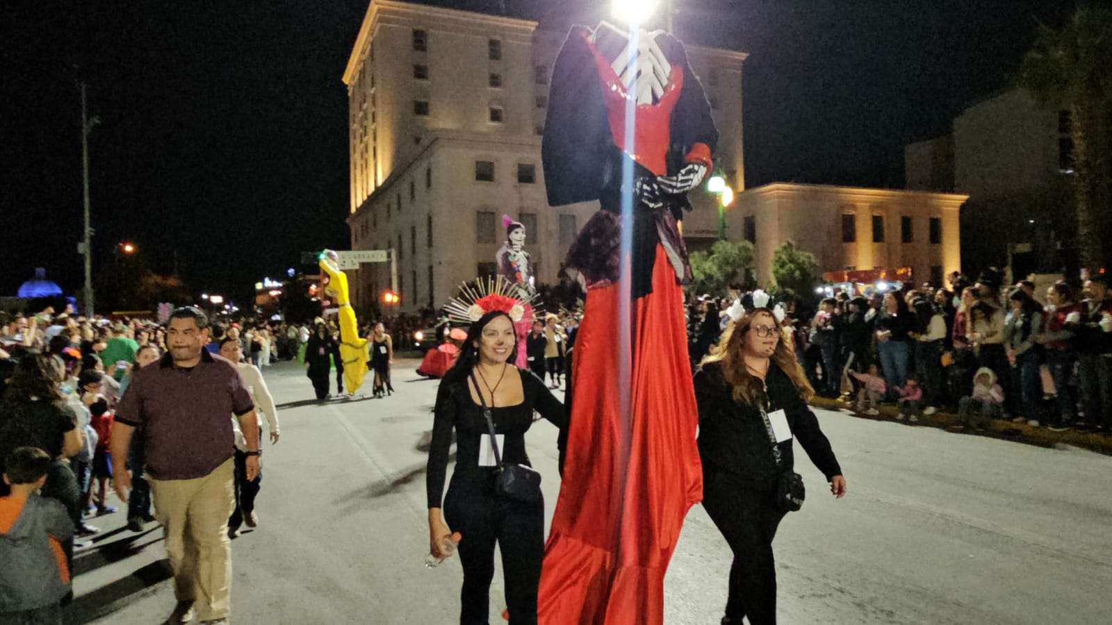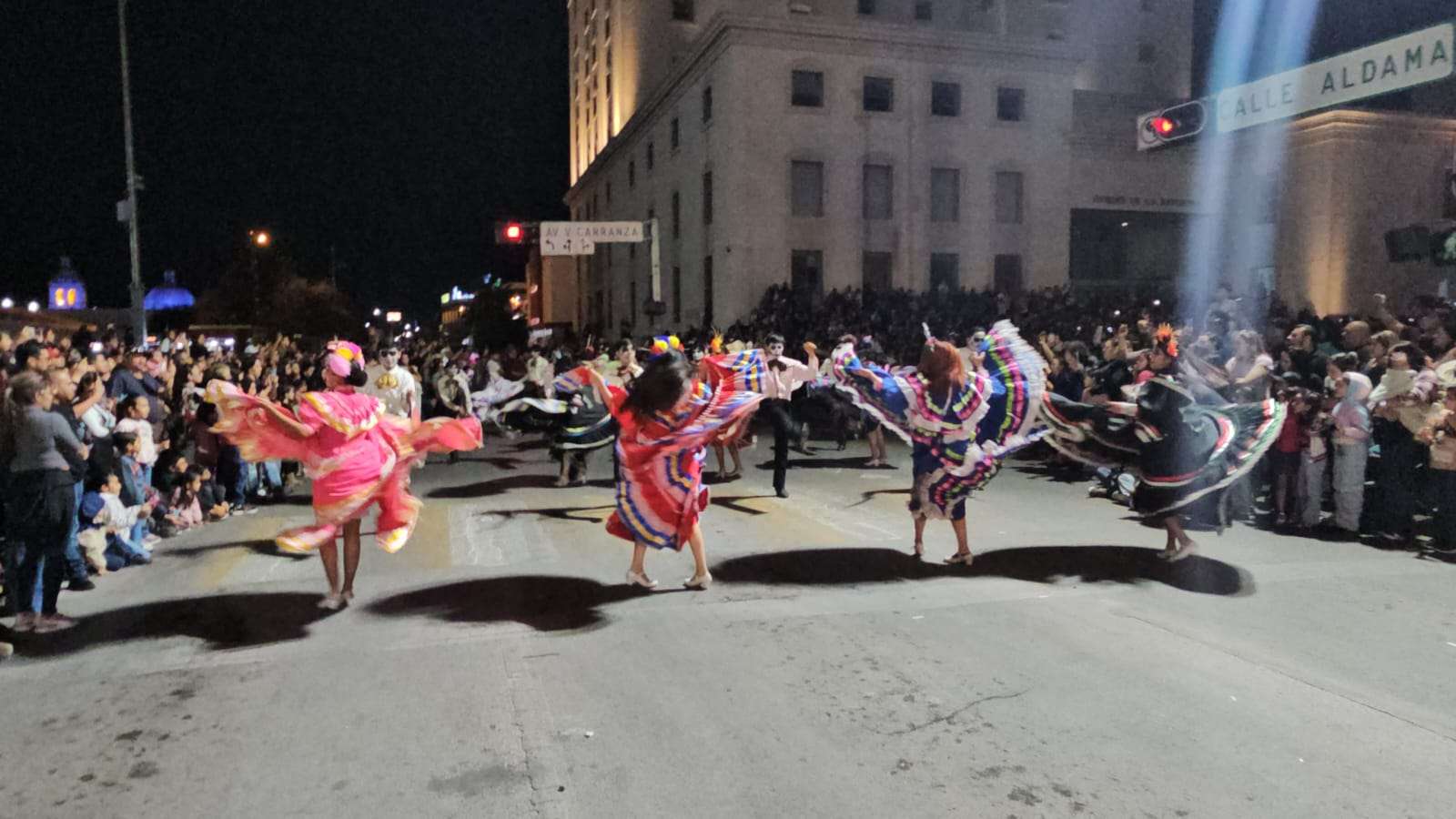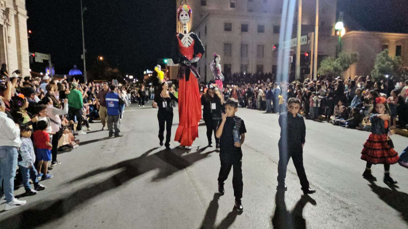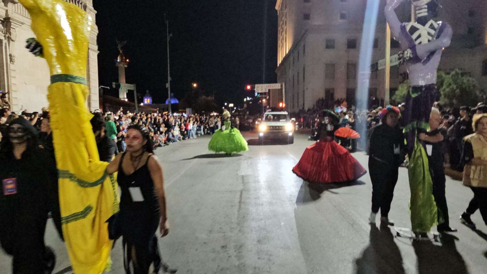 Chihuahua.- Decenas de catrinas y catrines desfilaron esta noche por calles del Centro de la Ciudad rumbo a la Plaza de Armas.