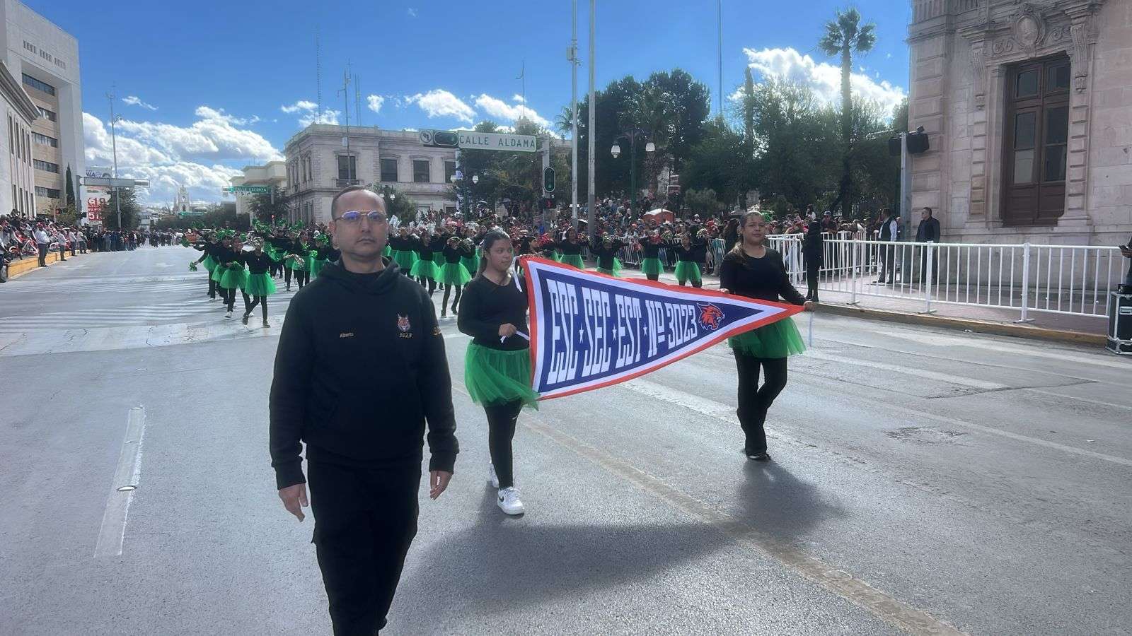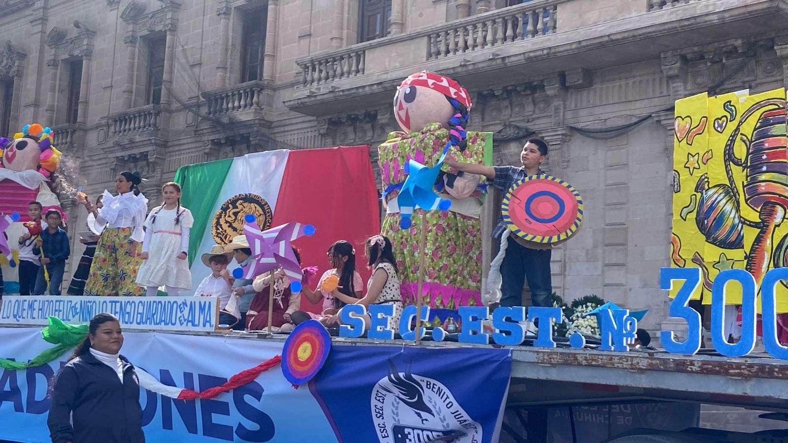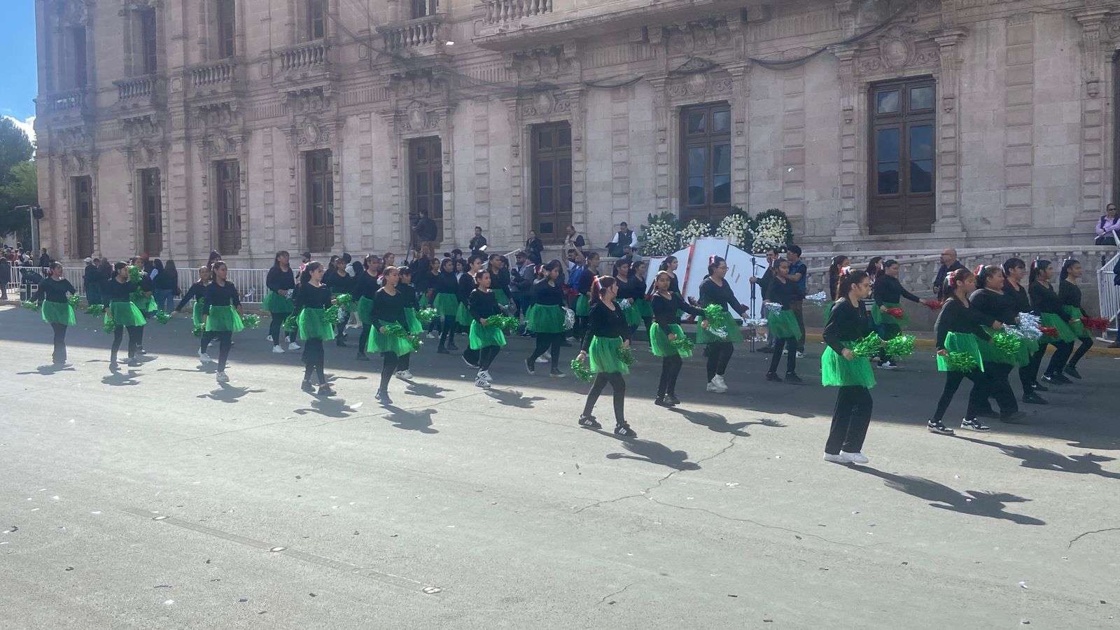 En educación básica desfilaron las secundarias Estatales 3005, 3008, 3049, 3023, 3060 y 3064, así como las secundarias técnicas 2 y 61, y la secundaria Federal 12, cuyos alumnos realizaron tablas rítmicas y muestras de danza.