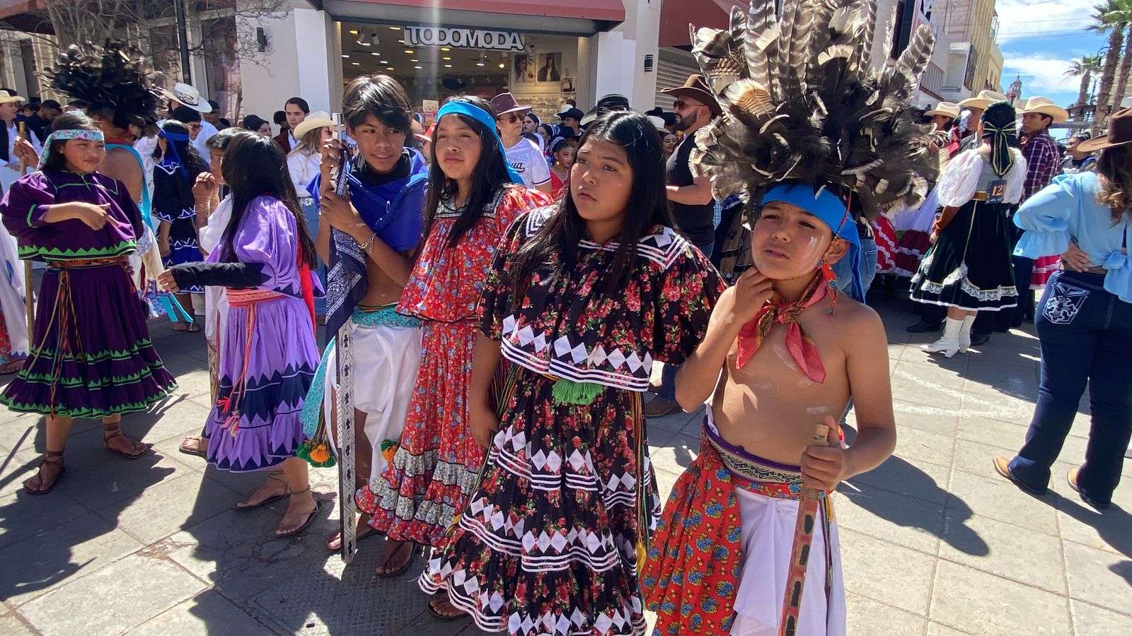 Niños y jóvenes portaron orgullosamente vestimentas típicas que reflejaron la diversidad cultural de México, desde los atuendos rarámuris y los vestidos de china poblana, hasta los trajes veracruzanos, chamarras con barbas de Monterrey, camisas a cuadros y bordados de Durango.
